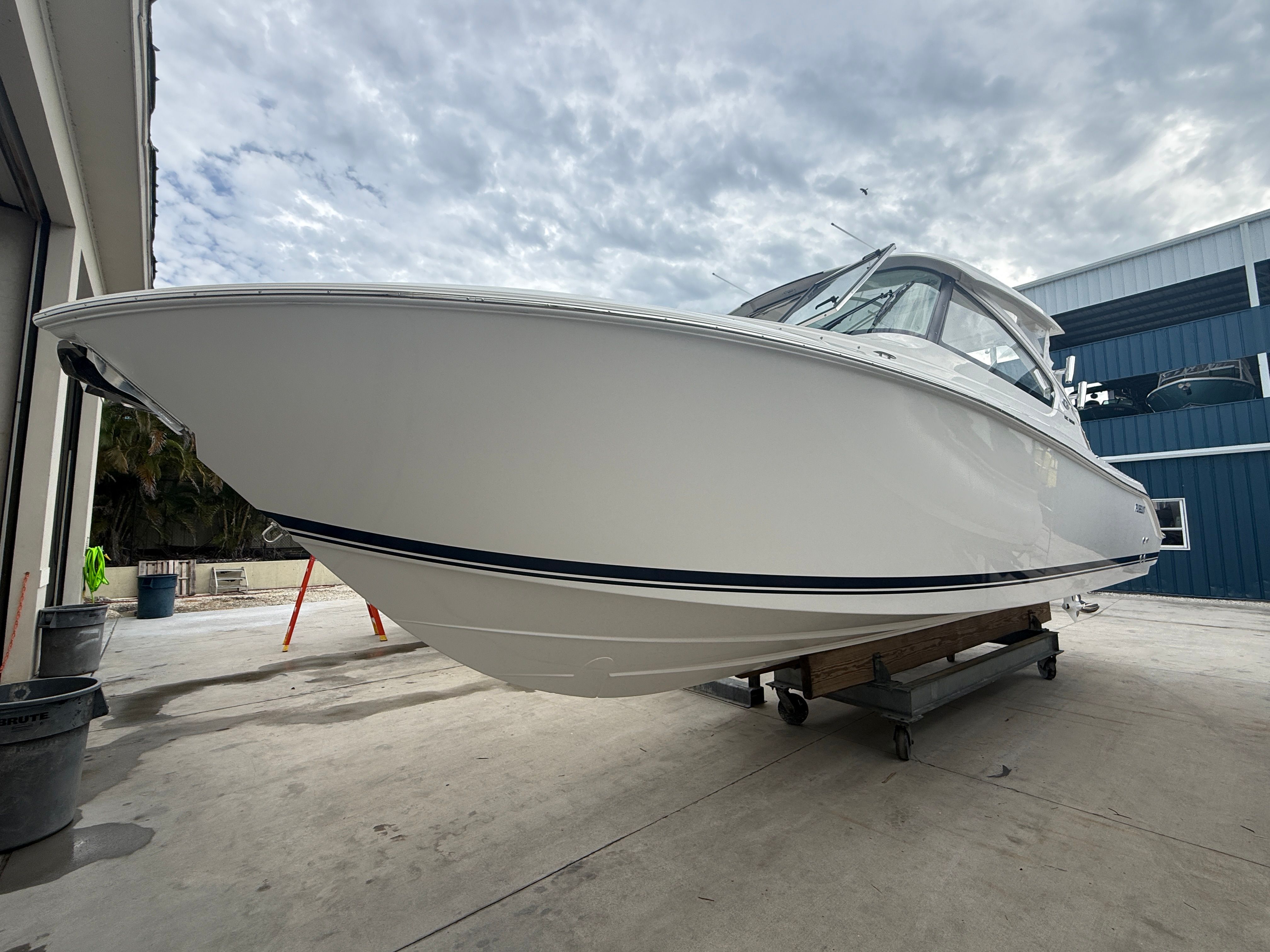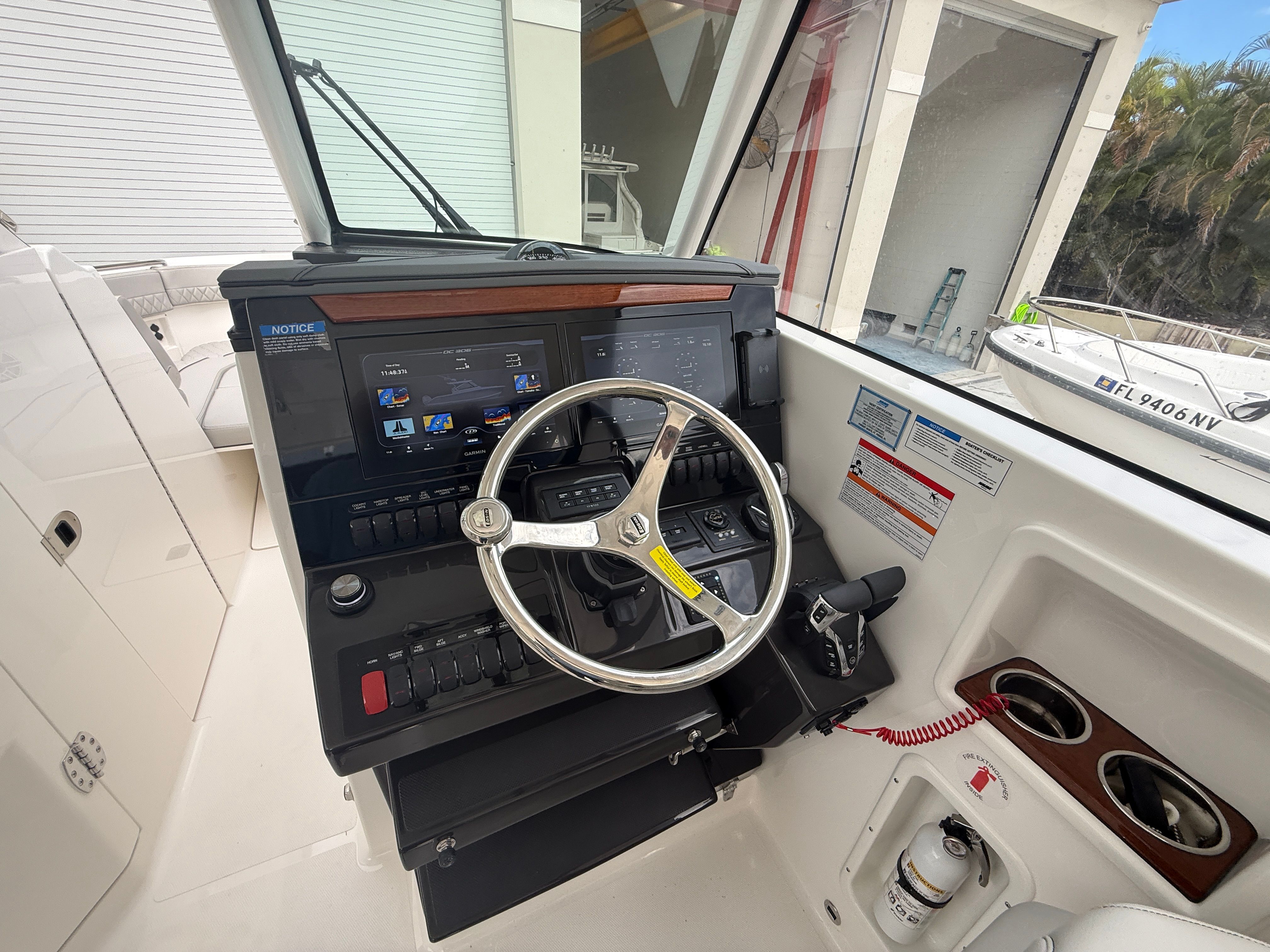 The 2026 Pursuit DC 306 is a new addition to the renowned Pursuit lineup, offering a generous length of nearly 32 feet. This dual console model is designed to deliver exceptional comfort and functionality, making it ideal for a wide range of boating adventures. With its sleek Fresh White hull accented by a sophisticated Navy bootstripe, the DC 306 exudes timeless elegance and modern appeal. The Carbon helm colors add a touch of contemporary style, ensuring that this Pursuit boat for sale turns heads at every marina and on every waterway.