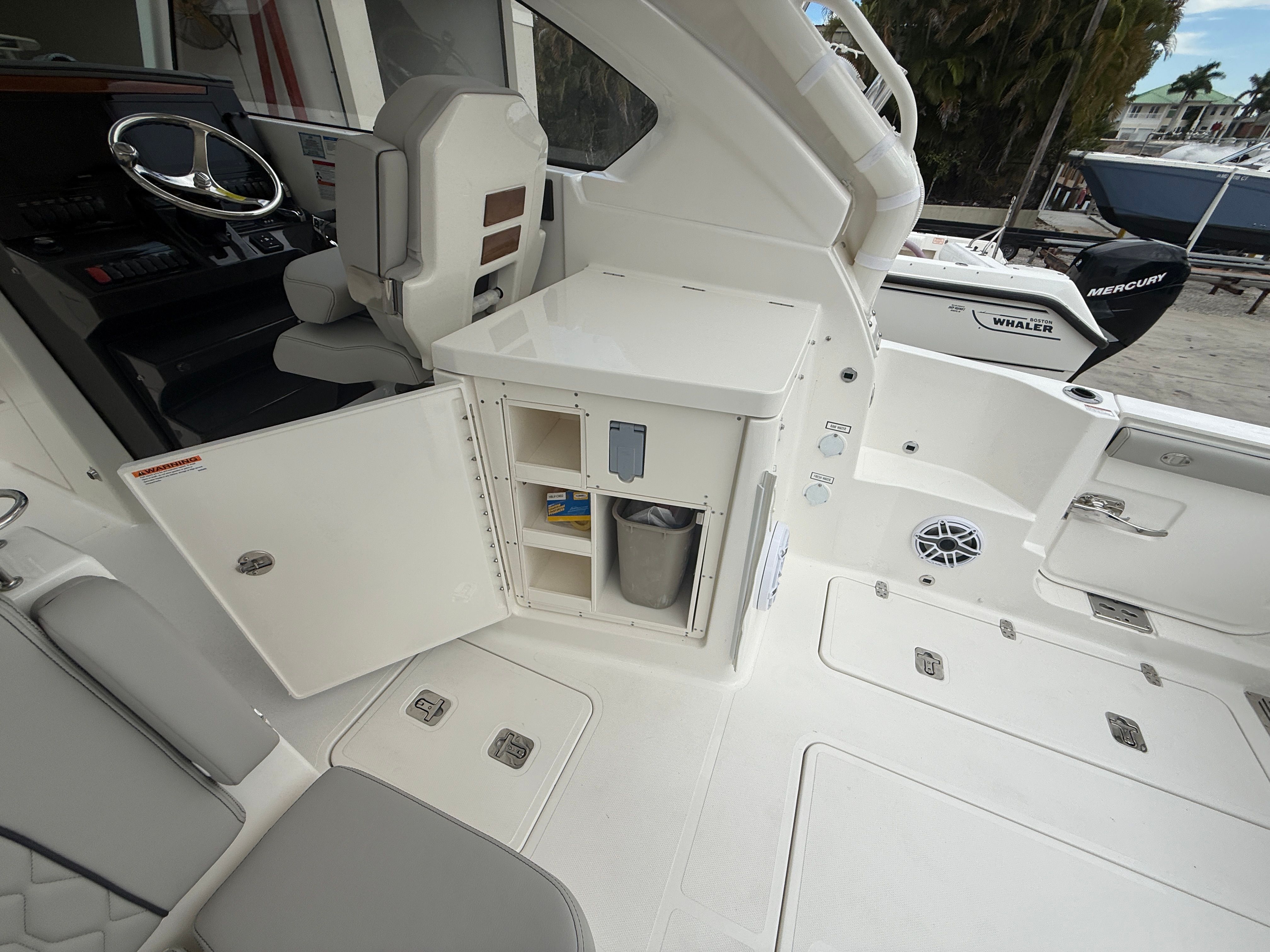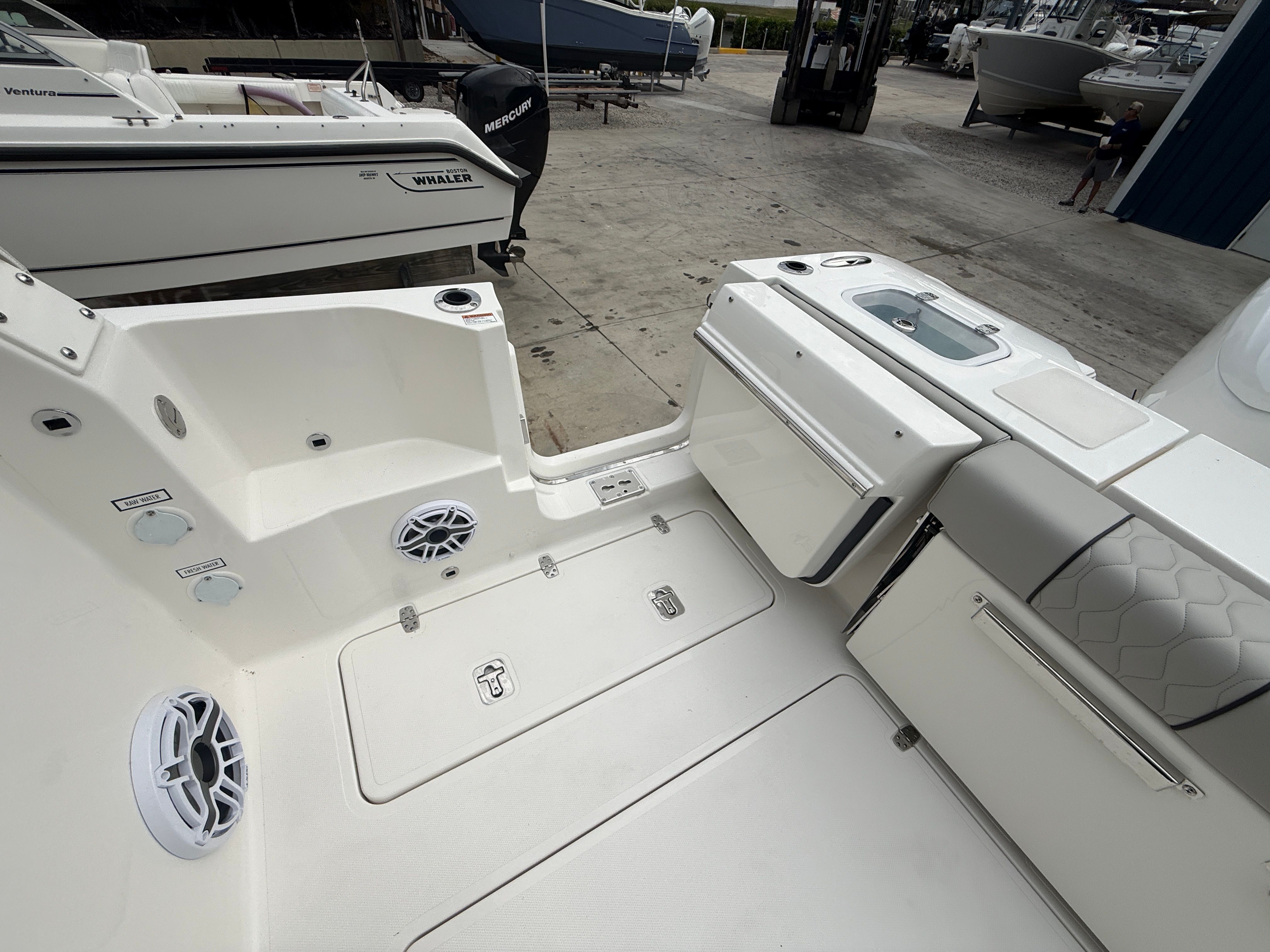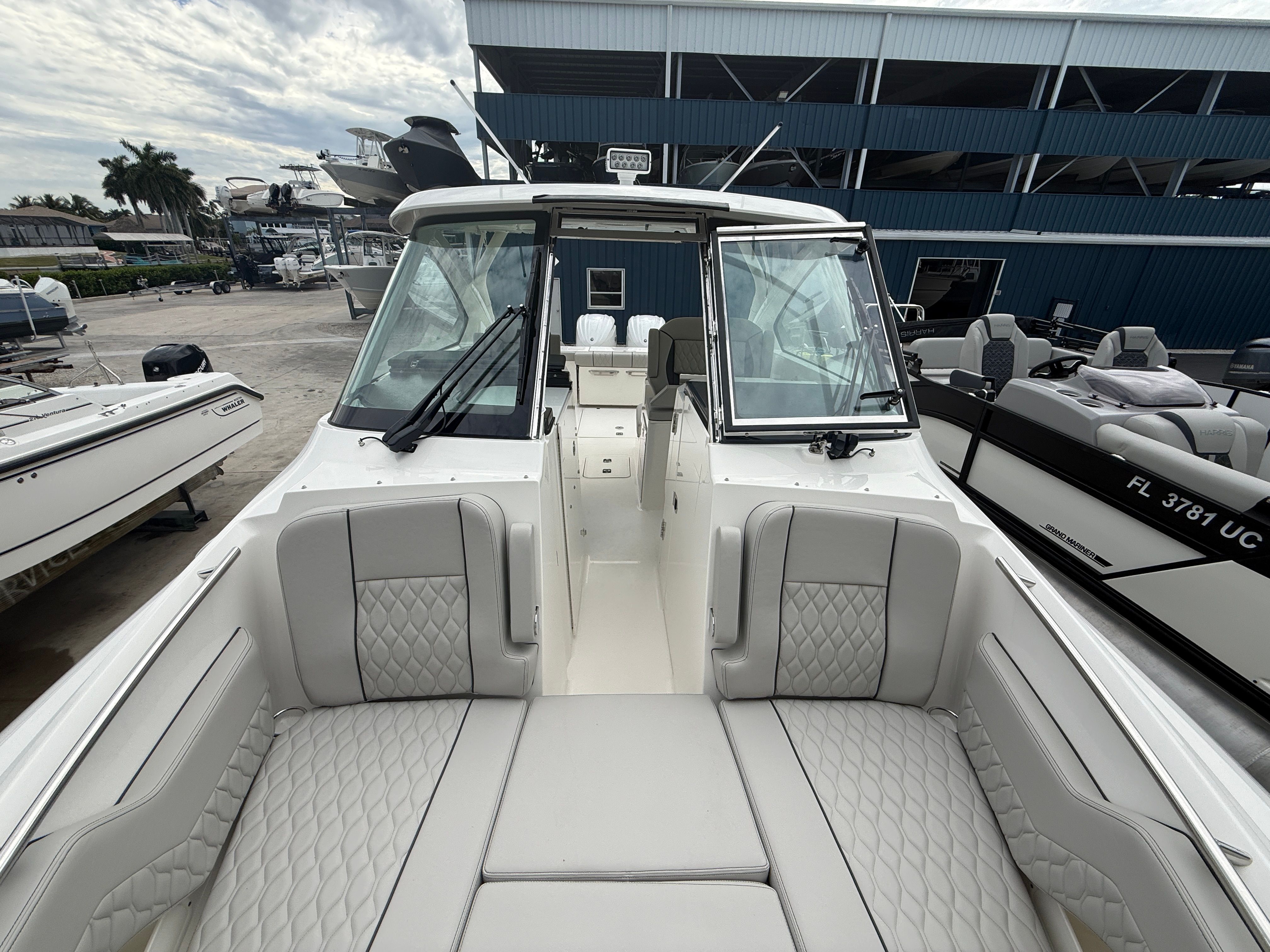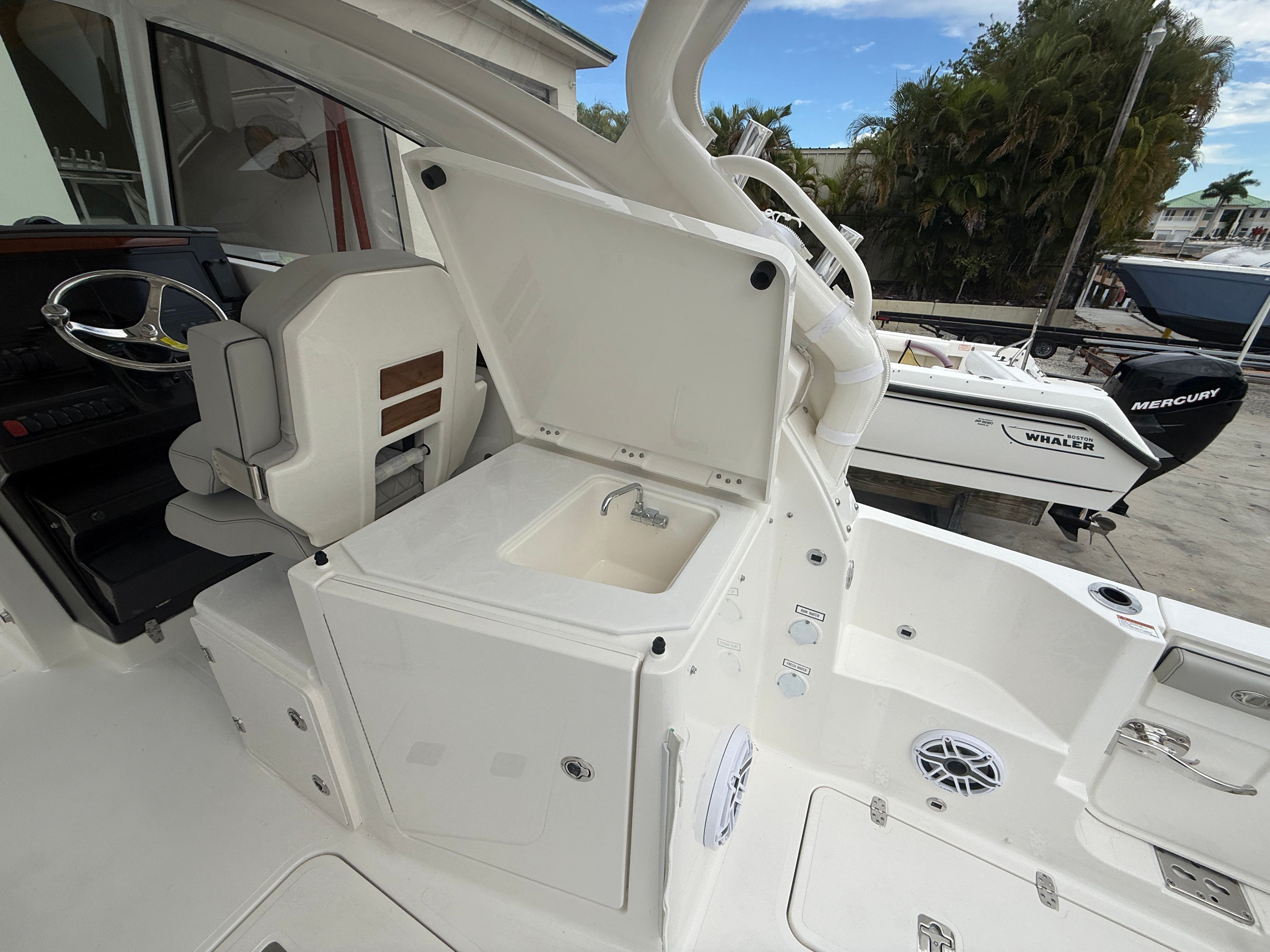 The Pursuit DC 306 is engineered for practical, everyday enjoyment. Its nearly 32-foot length strikes the perfect balance between spaciousness and maneuverability, making docking and storage straightforward even in busy marinas. The efficient twin Yamaha engines not only provide impressive power but also offer excellent fuel economy, allowing you to spend more time on the water and less time refueling.The inclusion of dockside power ensures that your onboard systems remain operational during overnight stays or extended trips, while the dedicated storage solutions keep your gear organized and your deck clutter-free. The stainless steel refrigerator/freezer is perfect for keeping snacks and beverages cold, making it easy to entertain guests or prepare for a day of fishing.