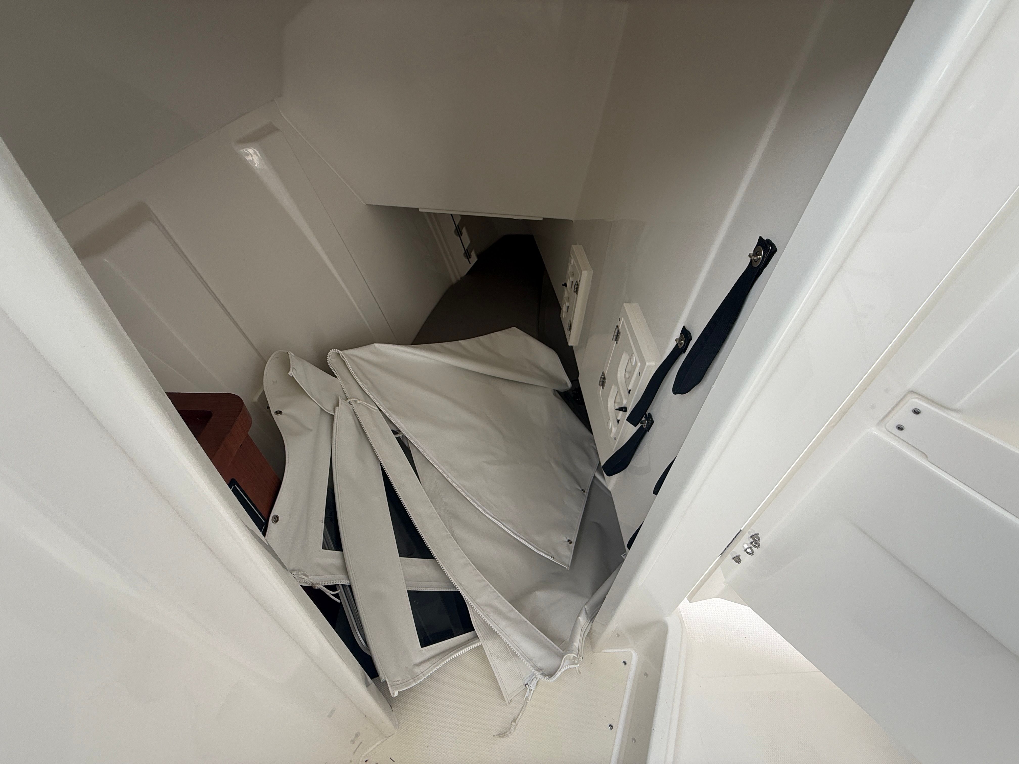 The 2026 Pursuit DC 306 is loaded with premium features that enhance both convenience and enjoyment on the water. The 120V/60Hz 30 Amp dockside power with cord provides reliable shore power access, making it easy to keep your onboard systems running smoothly during extended stays at the dock. The 12v 2.3 cubic ft refrigerator/freezer, crafted from stainless steel and replacing the standard tackle storage, offers ample space to keep your refreshments chilled and your catch fresh, especially when paired with the dockside power option.For those who love to entertain, the DC 306 features a versatile bow table that easily converts into a sun pad with a cushion, creating a comfortable lounging area for sunbathing or socializing. The fiberglass cockpit table, complete with dedicated storage, adds further convenience for dining or relaxing with friends and family. Hardtop Bomar hatches with screens on both port and starboard sides provide excellent ventilation and natural light, while the hardtop-mounted rod holders (six in total) cater to fishing enthusiasts looking to keep their gear organized and accessible.