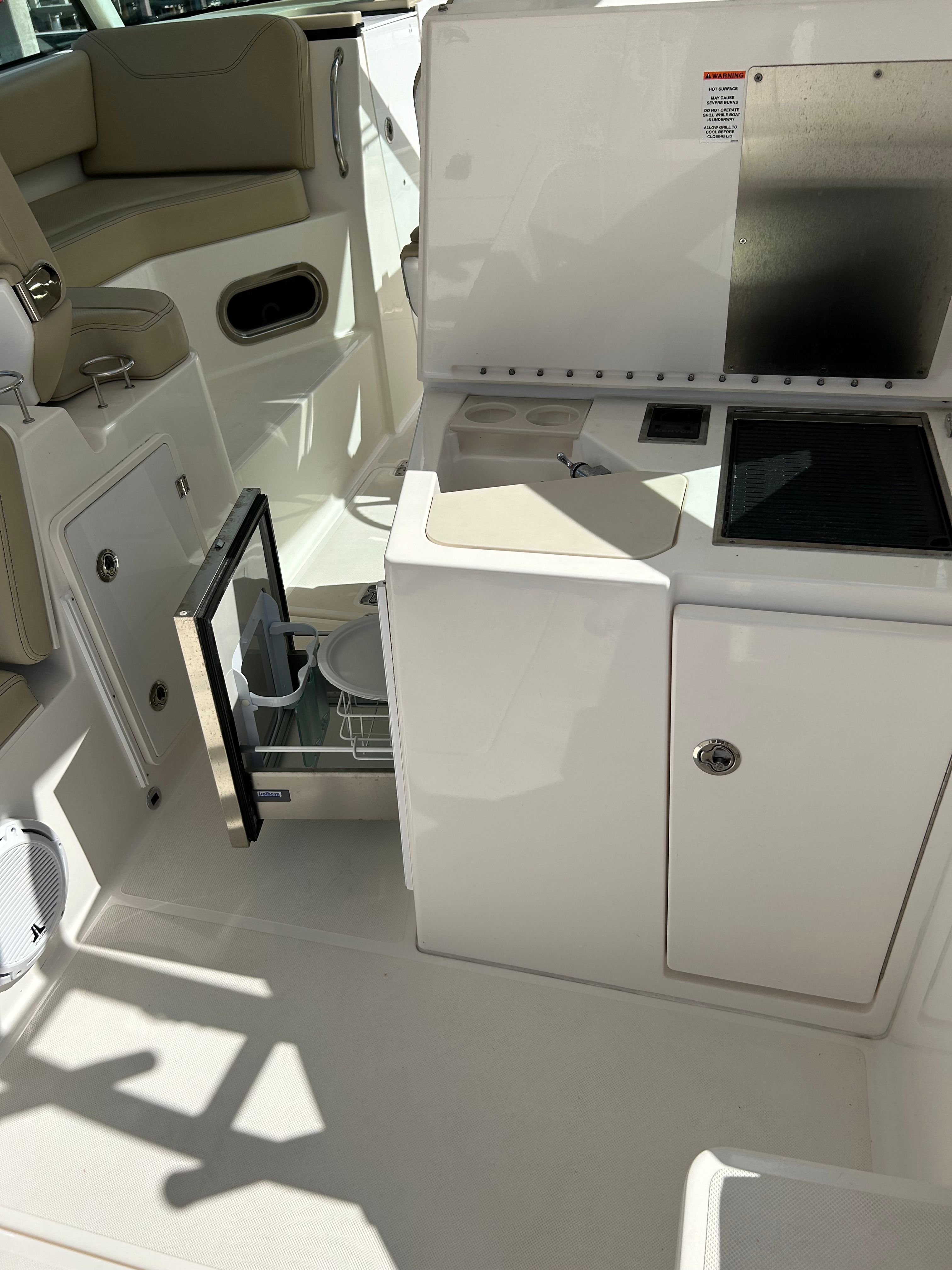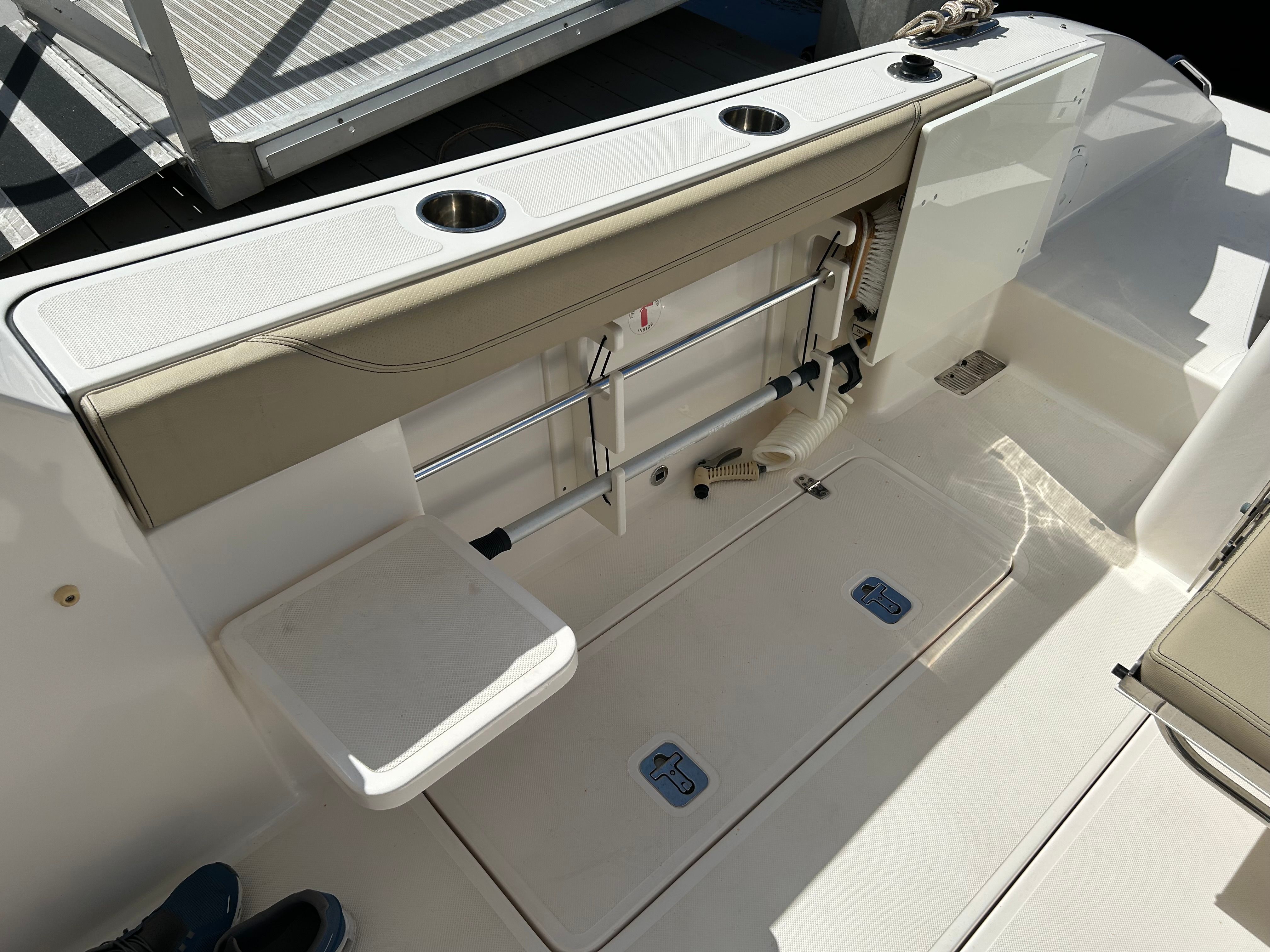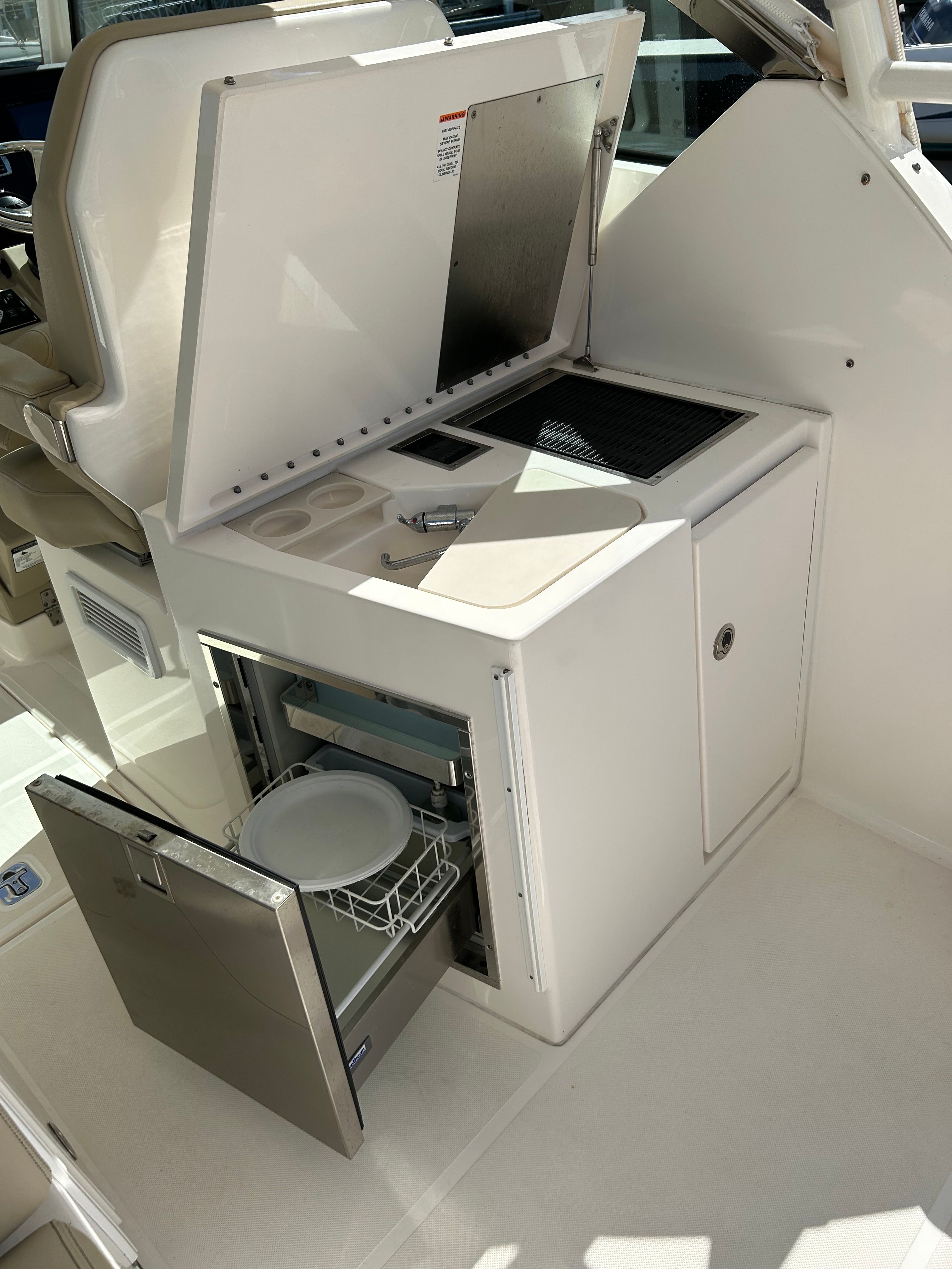 Powering this Pursuit DC 325 are twin engines, delivering a combined 600 horsepower for exhilarating performance and smooth cruising. Whether you’re navigating coastal waters or heading offshore for a day of adventure, the DC 325’s robust engine setup ensures you have the power and reliability you need. With only 237 engine hours, these engines offer plenty of life and dependable operation, giving you peace of mind as you explore new horizons. The dual engine configuration also enhances maneuverability and control, making docking and tight turns effortless.