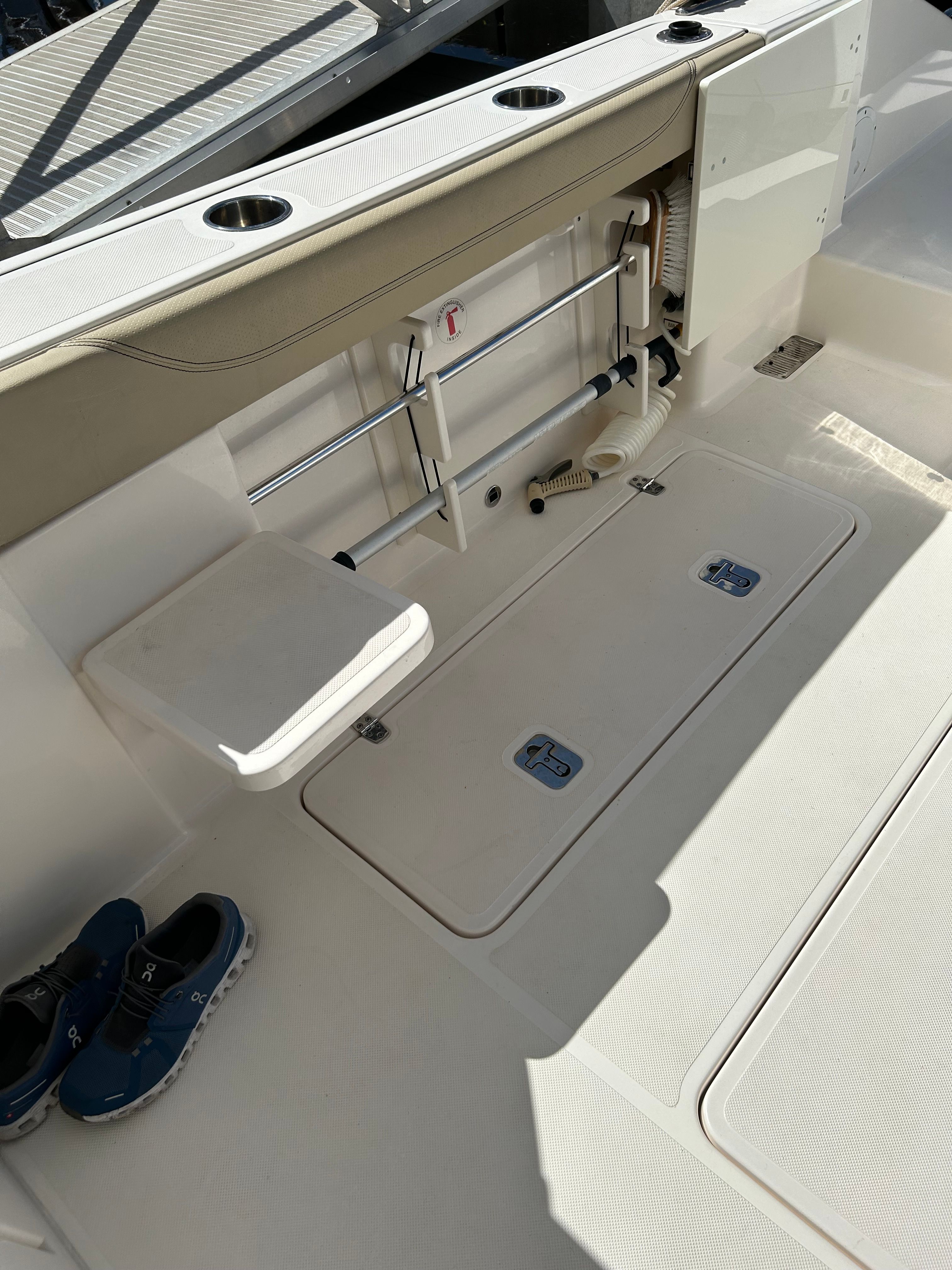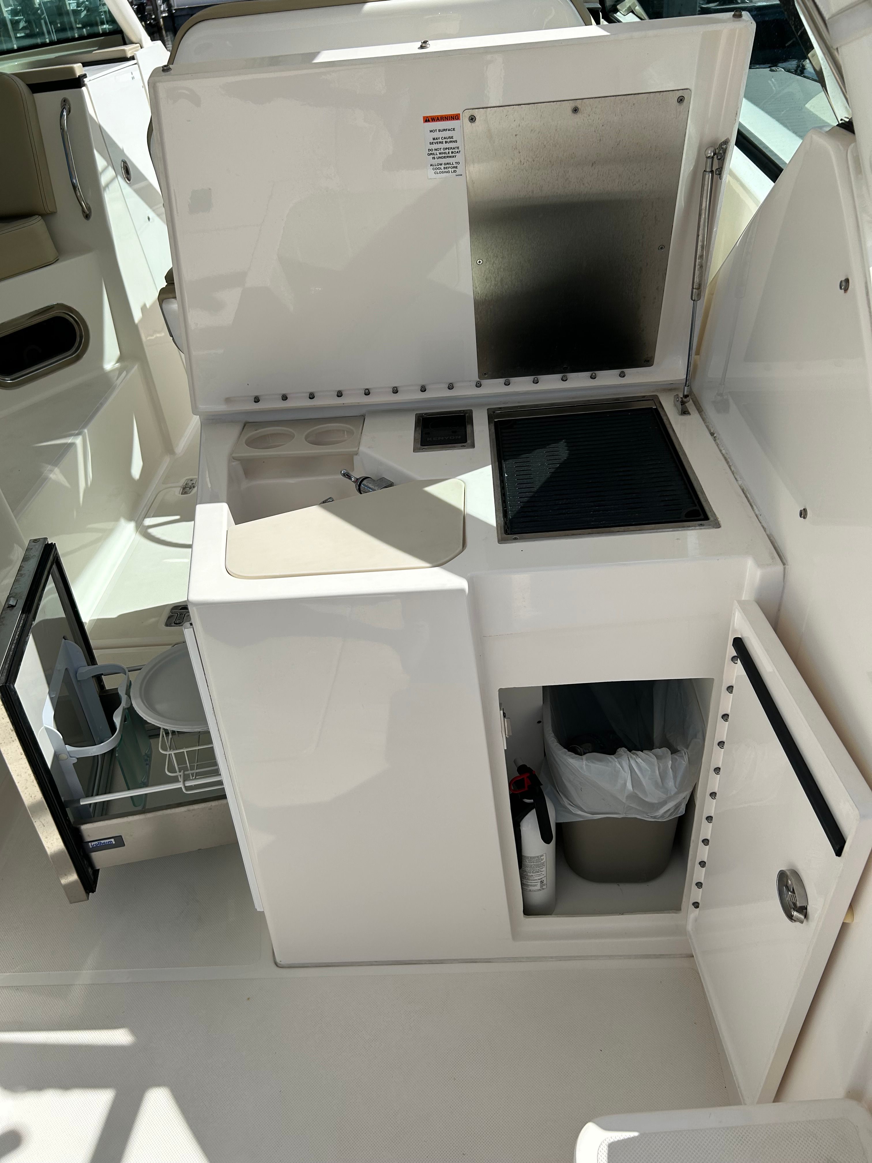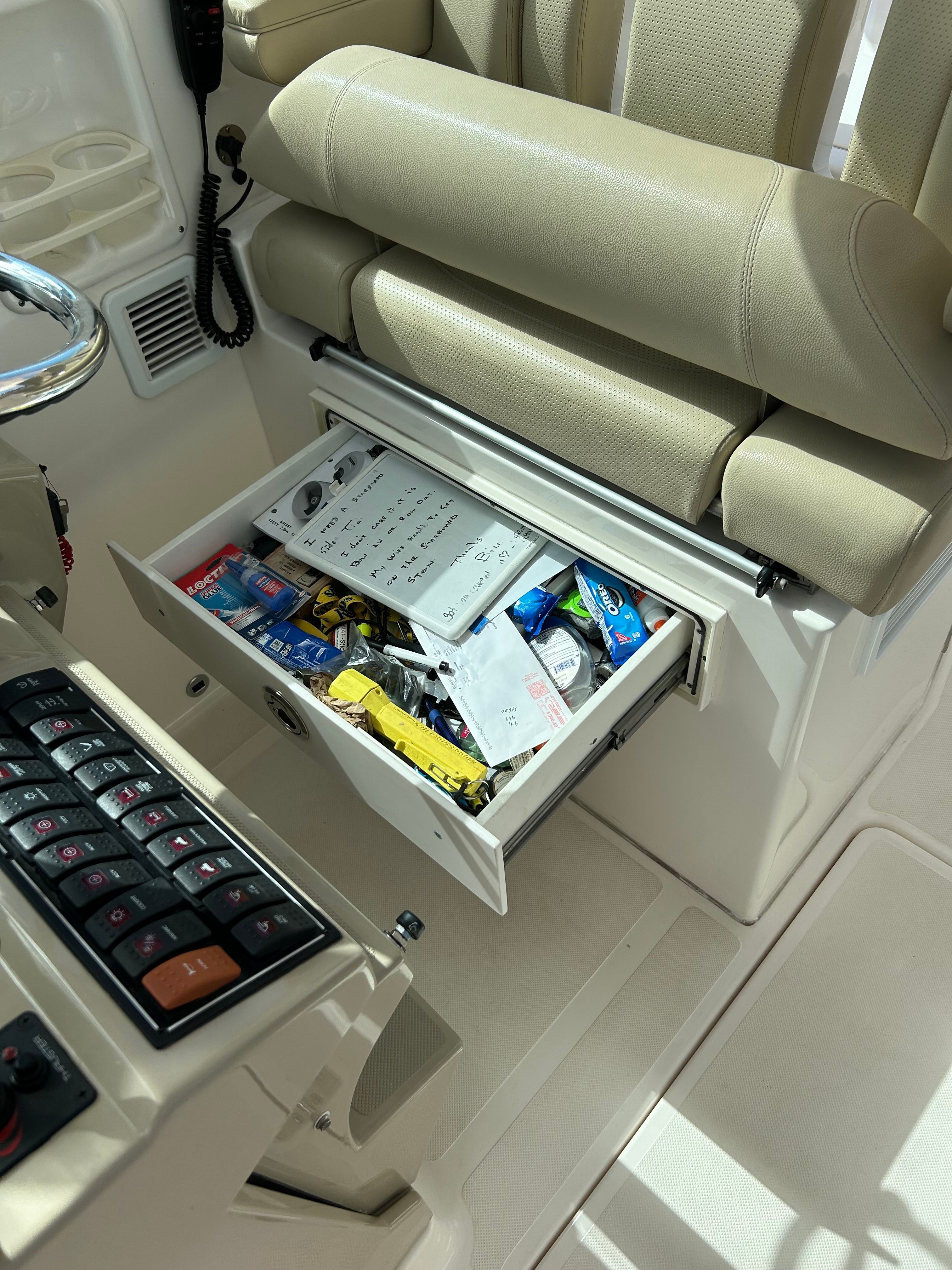Powering this Pursuit DC 325 are twin engines, delivering a combined 600 horsepower for exhilarating performance and smooth cruising. Whether you’re navigating coastal waters or heading offshore for a day of adventure, the DC 325’s robust engine setup ensures you have the power and reliability you need. With only 237 engine hours, these engines offer plenty of life and dependable operation, giving you peace of mind as you explore new horizons. The dual engine configuration also enhances maneuverability and control, making docking and tight turns effortless.