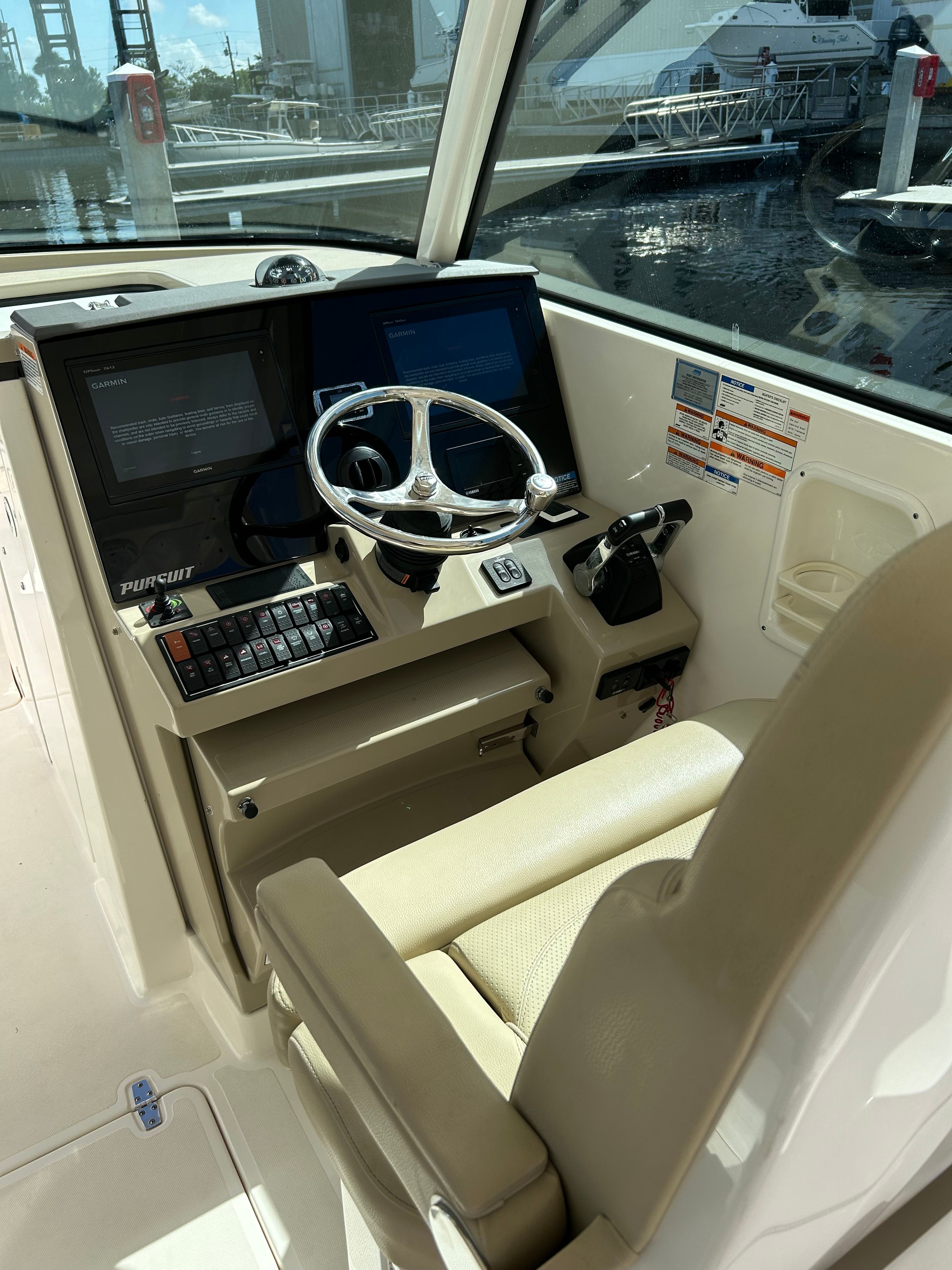 The Pursuit DC 325 is engineered for convenience and ease of ownership. Its dual engines not only provide impressive power but also contribute to fuel efficiency, allowing you to enjoy longer trips without frequent refueling stops. The boat’s generous storage compartments make it simple to stow fishing gear, picnic supplies, and personal items, ensuring everything you need is within reach. Docking is a breeze thanks to the responsive handling and intuitive controls, while the durable construction ensures your investment stands the test of time. Whether you’re a seasoned boater or new to the water, the DC 325’s user-friendly features make every outing enjoyable and stress-free.