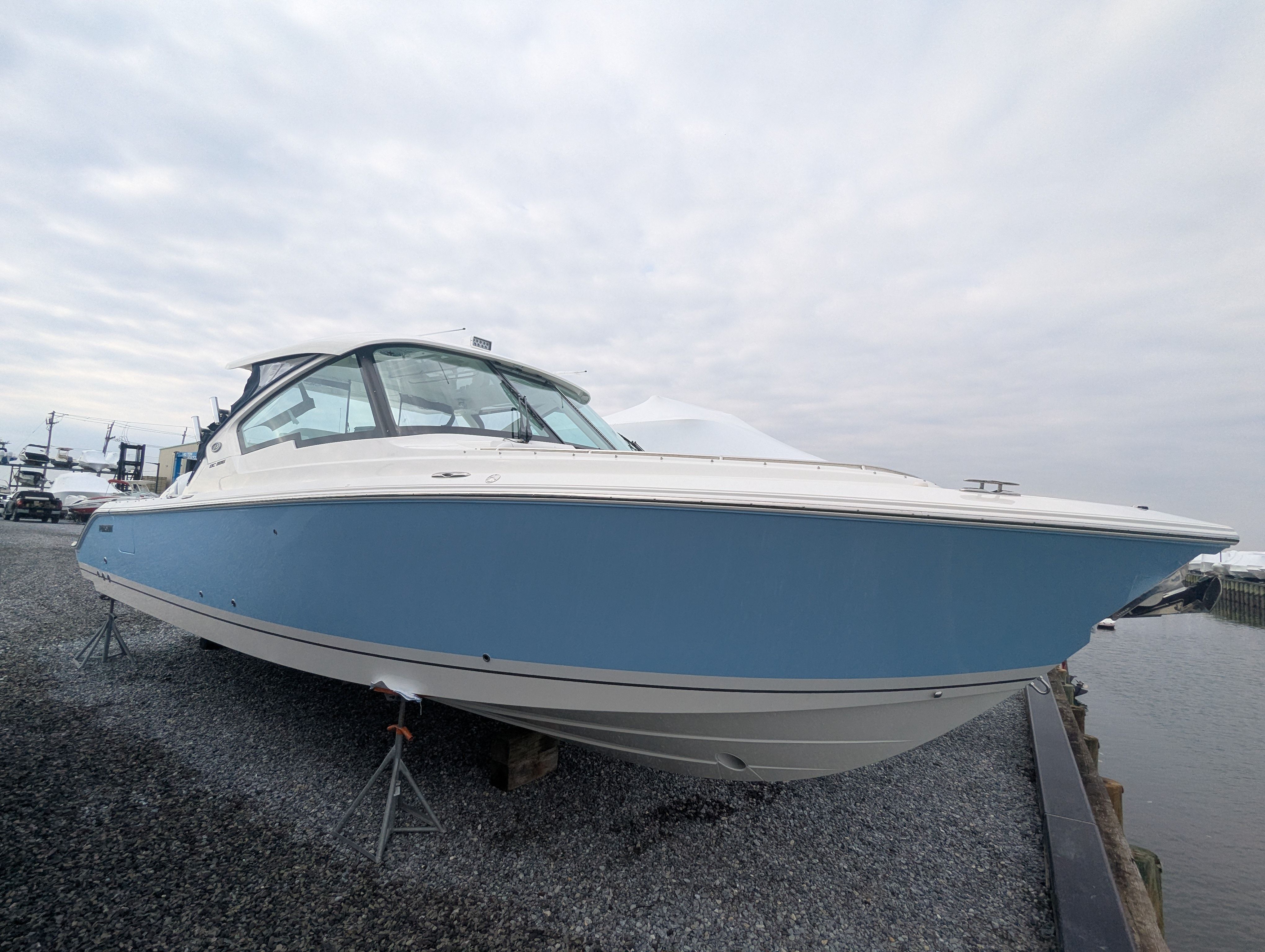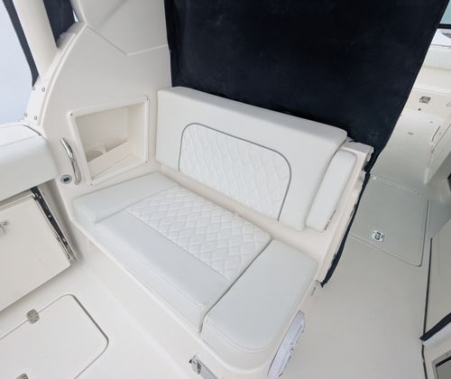 The Pursuit DC 326 is a 34.5-foot dual console boat that represents the pinnacle of modern marine engineering. Built for the 2026 season, this vessel is brand new and ready to deliver unforgettable adventures. The Arctic Blue hull, accented with an Arctic White and Quartz Gray bootstripe, gives the DC 326 a sleek, contemporary look that turns heads at every marina. Inside, the Tranquil Sea interior and upgraded white/gray upholstery create a relaxing and elegant atmosphere, making every outing feel like a luxury getaway.