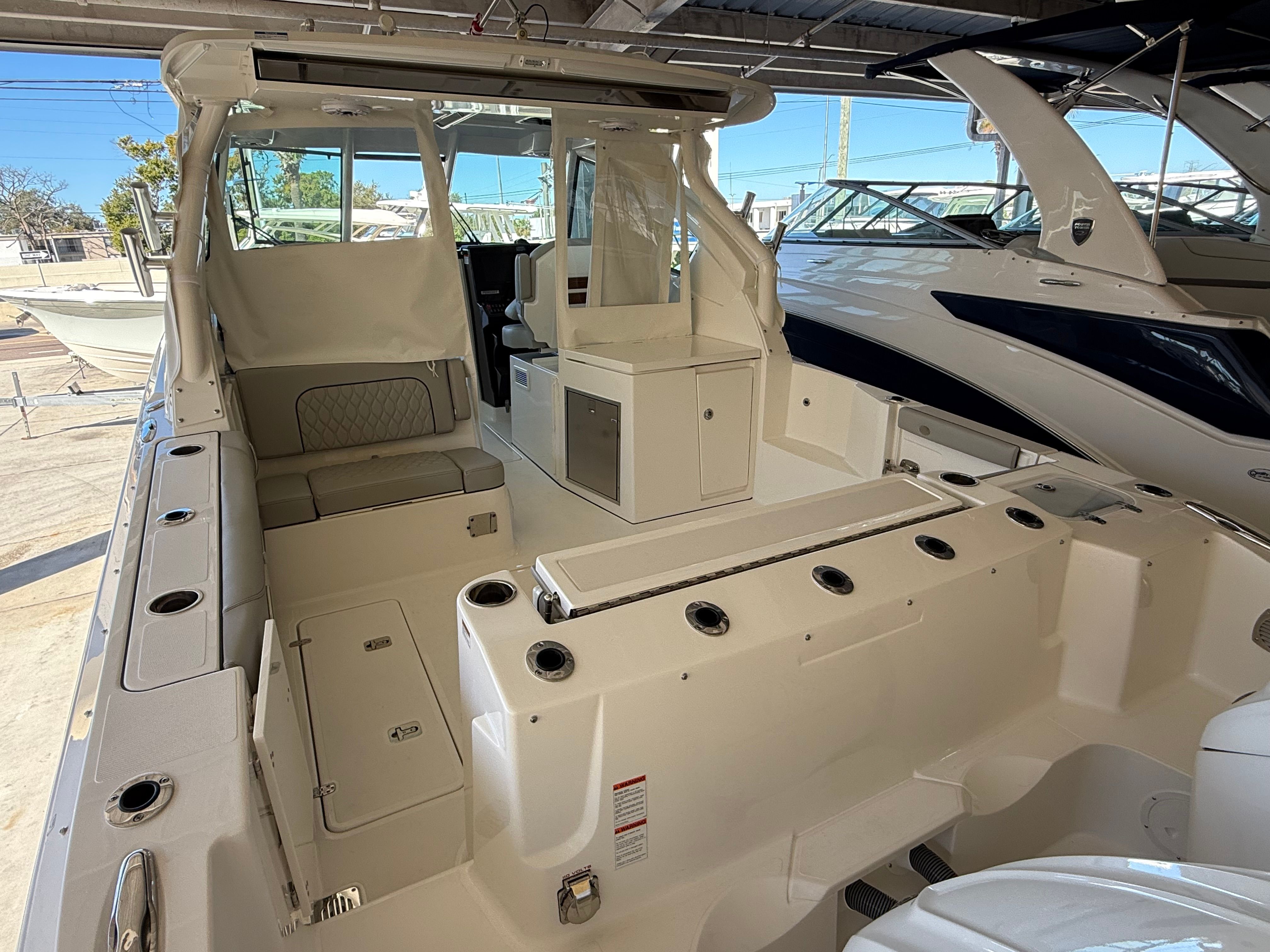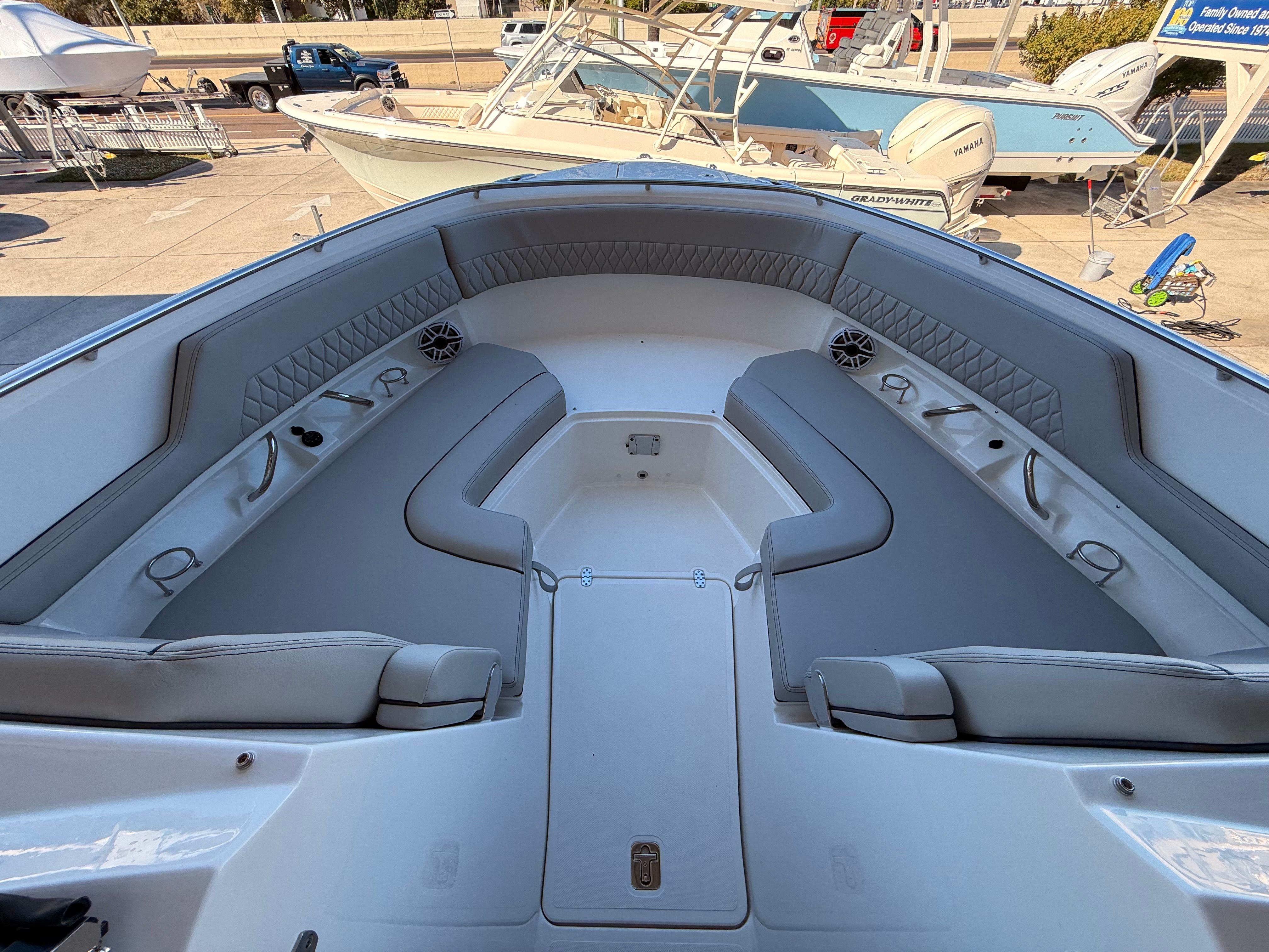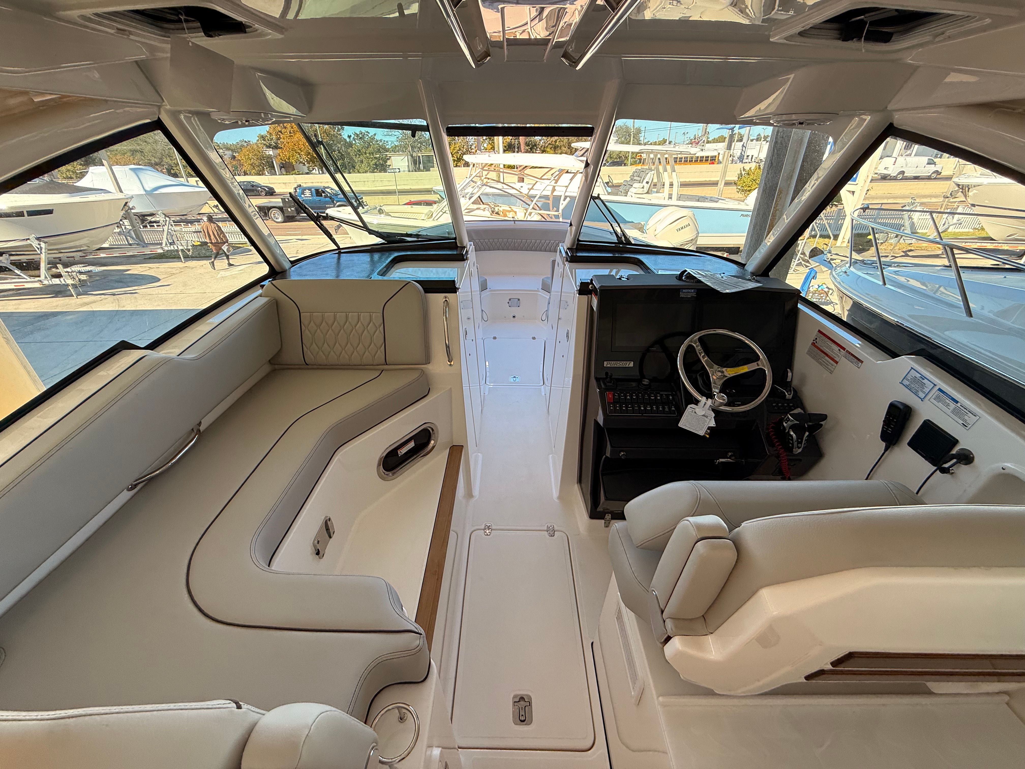 Owning a Pursuit DC 326 means embracing a lifestyle filled with excitement, relaxation, and memorable moments. The spacious layout of this Dual Console boat for sale ensures everyone on board has room to stretch out and enjoy the ride, whether you are sunbathing, fishing, or simply taking in the scenery. The combination of luxurious finishes and thoughtful amenities creates an inviting environment that encourages socializing and fun. With advanced climate control, you can extend your boating season and stay comfortable in any weather, while the cockpit grill and teak table make it easy to host gatherings and share meals on the water.