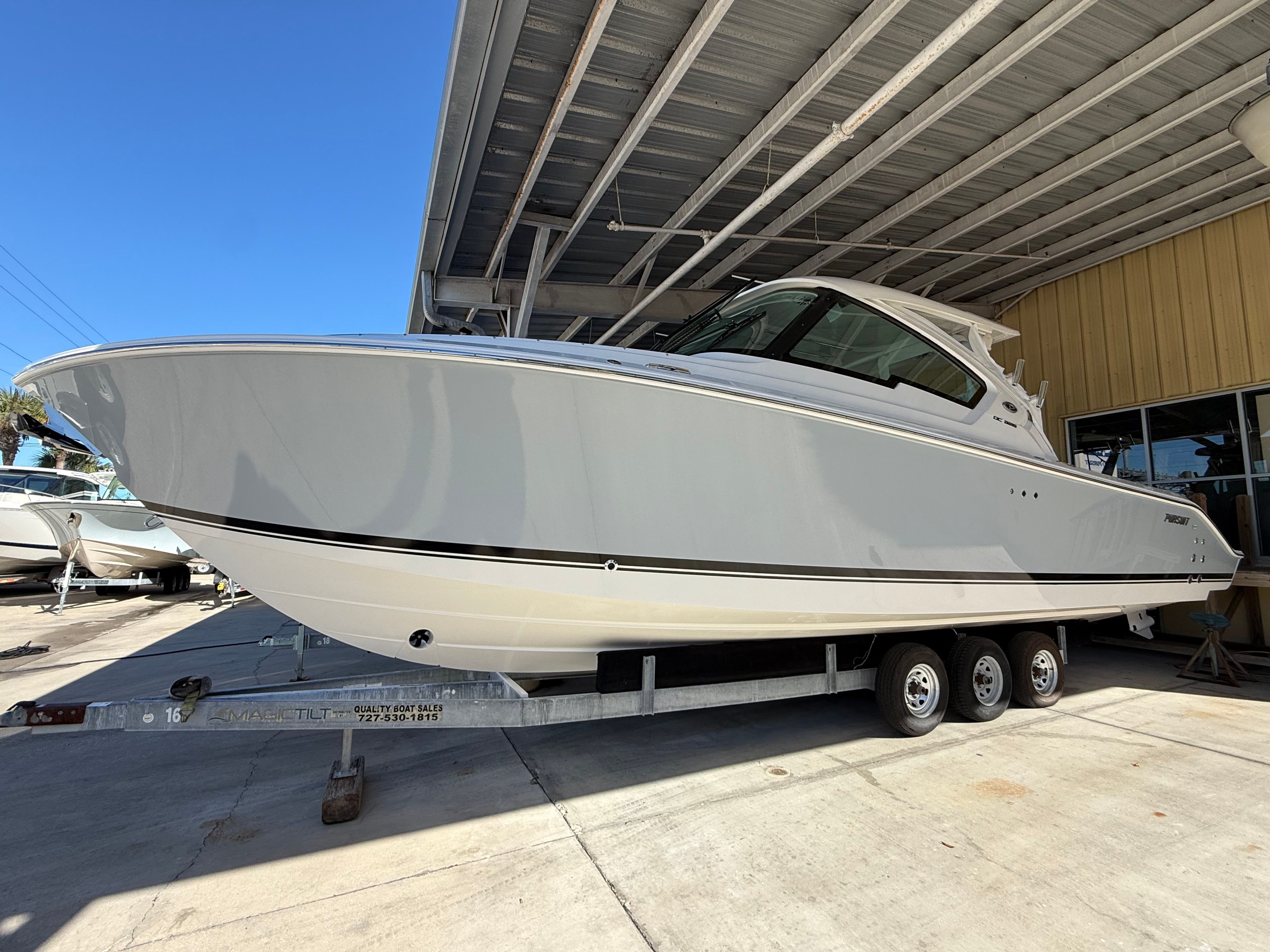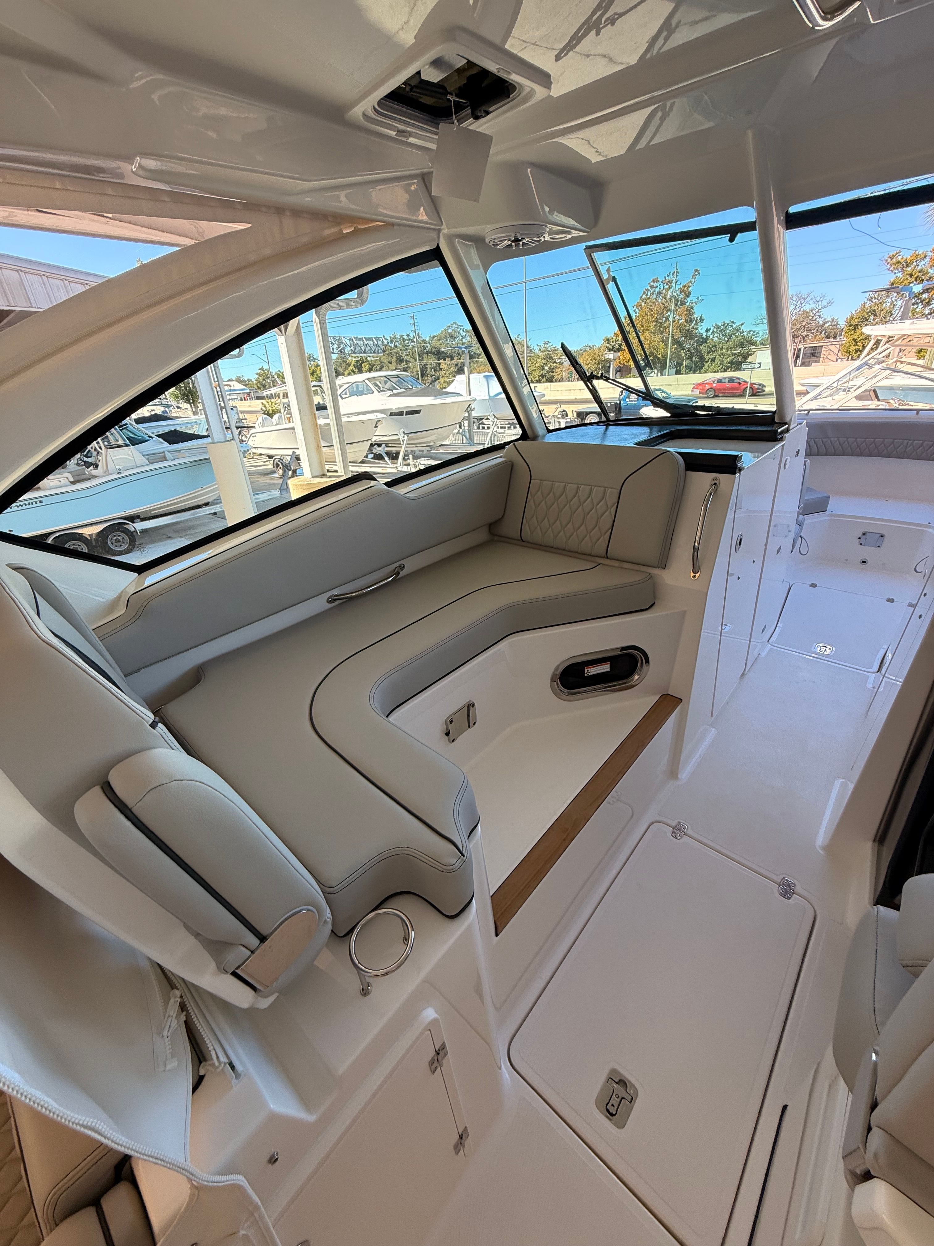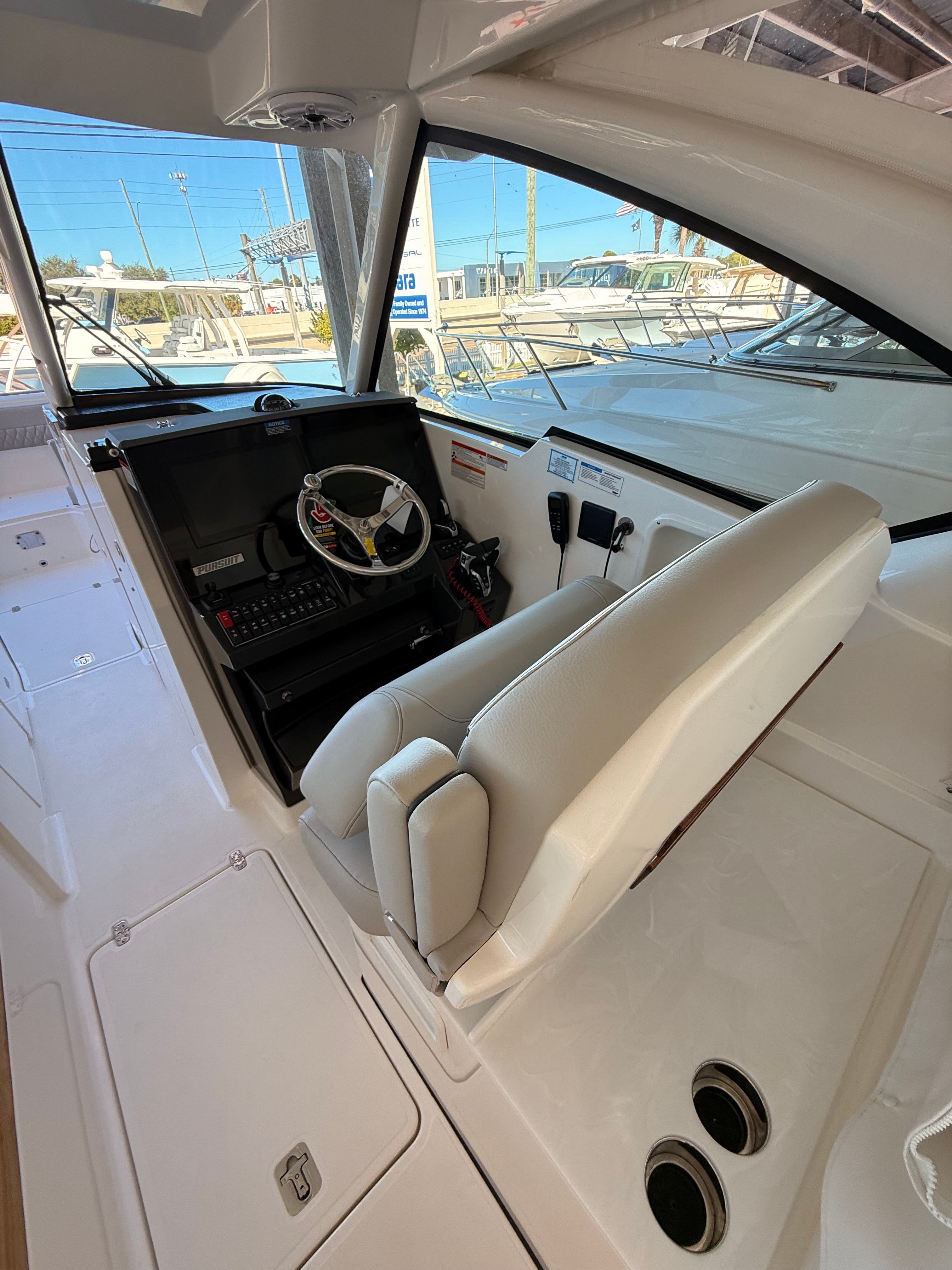 Owning a Pursuit DC 326 means embracing a lifestyle filled with excitement, relaxation, and memorable moments. The spacious layout of this Dual Console boat for sale ensures everyone on board has room to stretch out and enjoy the ride, whether you are sunbathing, fishing, or simply taking in the scenery. The combination of luxurious finishes and thoughtful amenities creates an inviting environment that encourages socializing and fun. With advanced climate control, you can extend your boating season and stay comfortable in any weather, while the cockpit grill and teak table make it easy to host gatherings and share meals on the water.