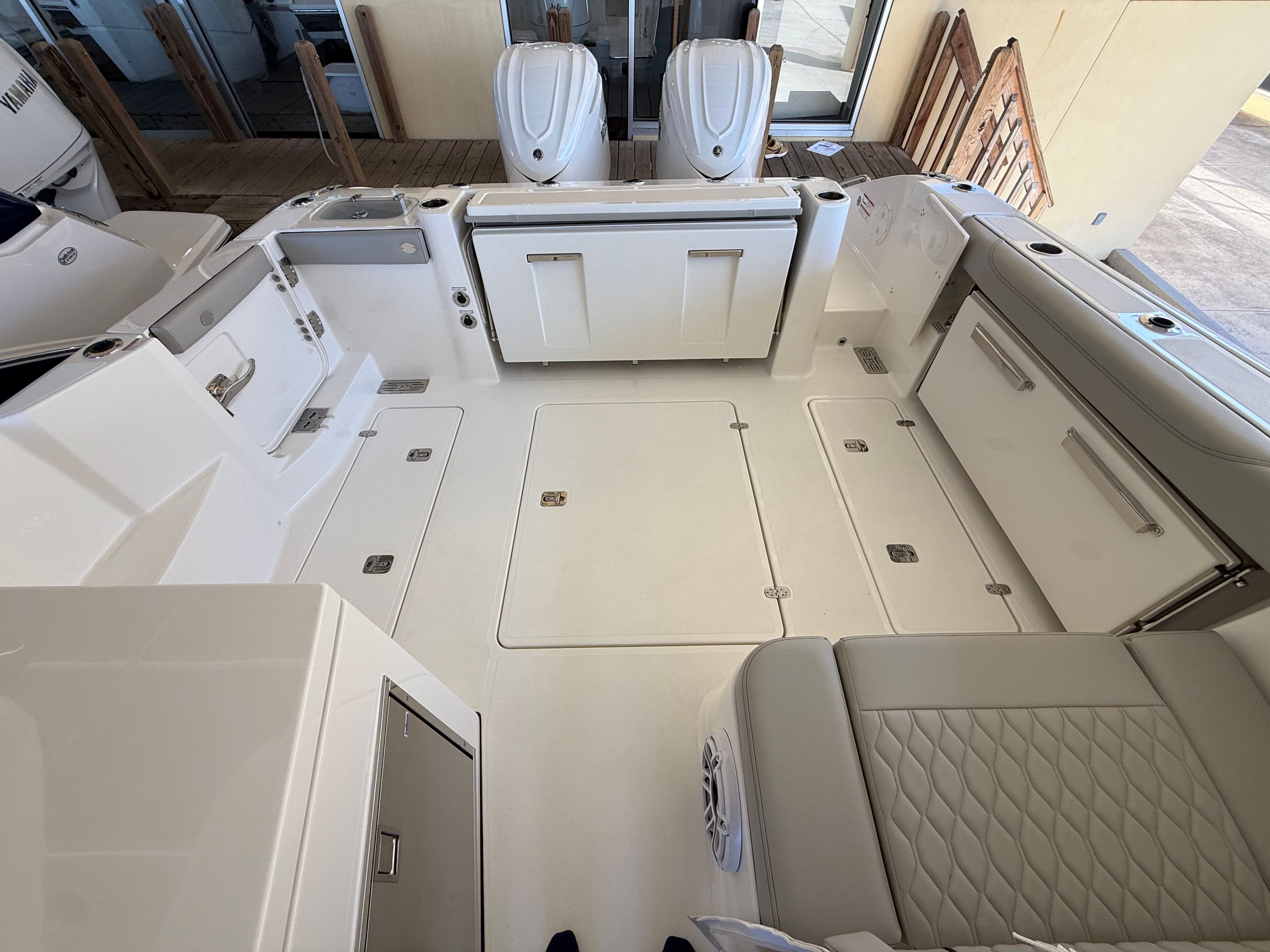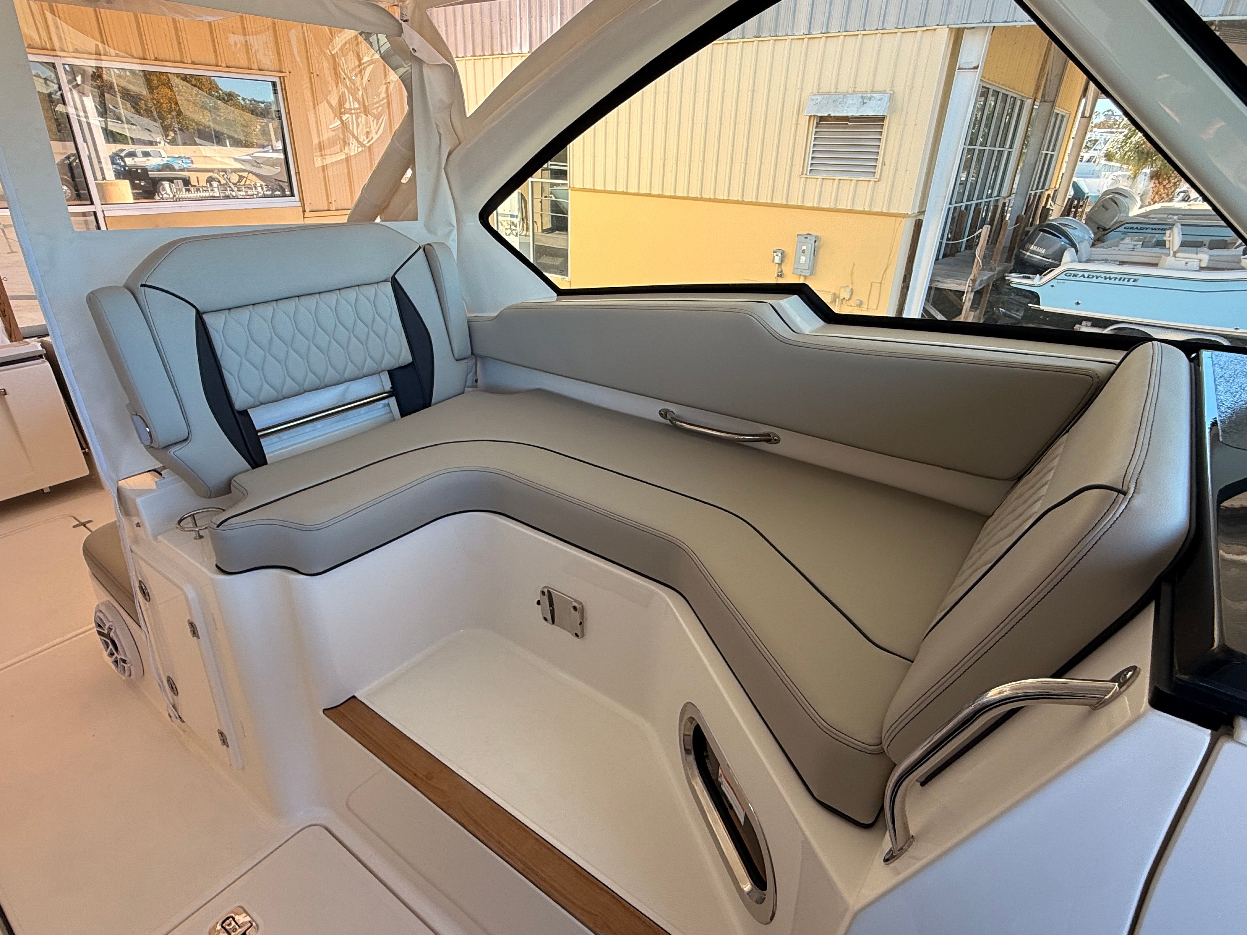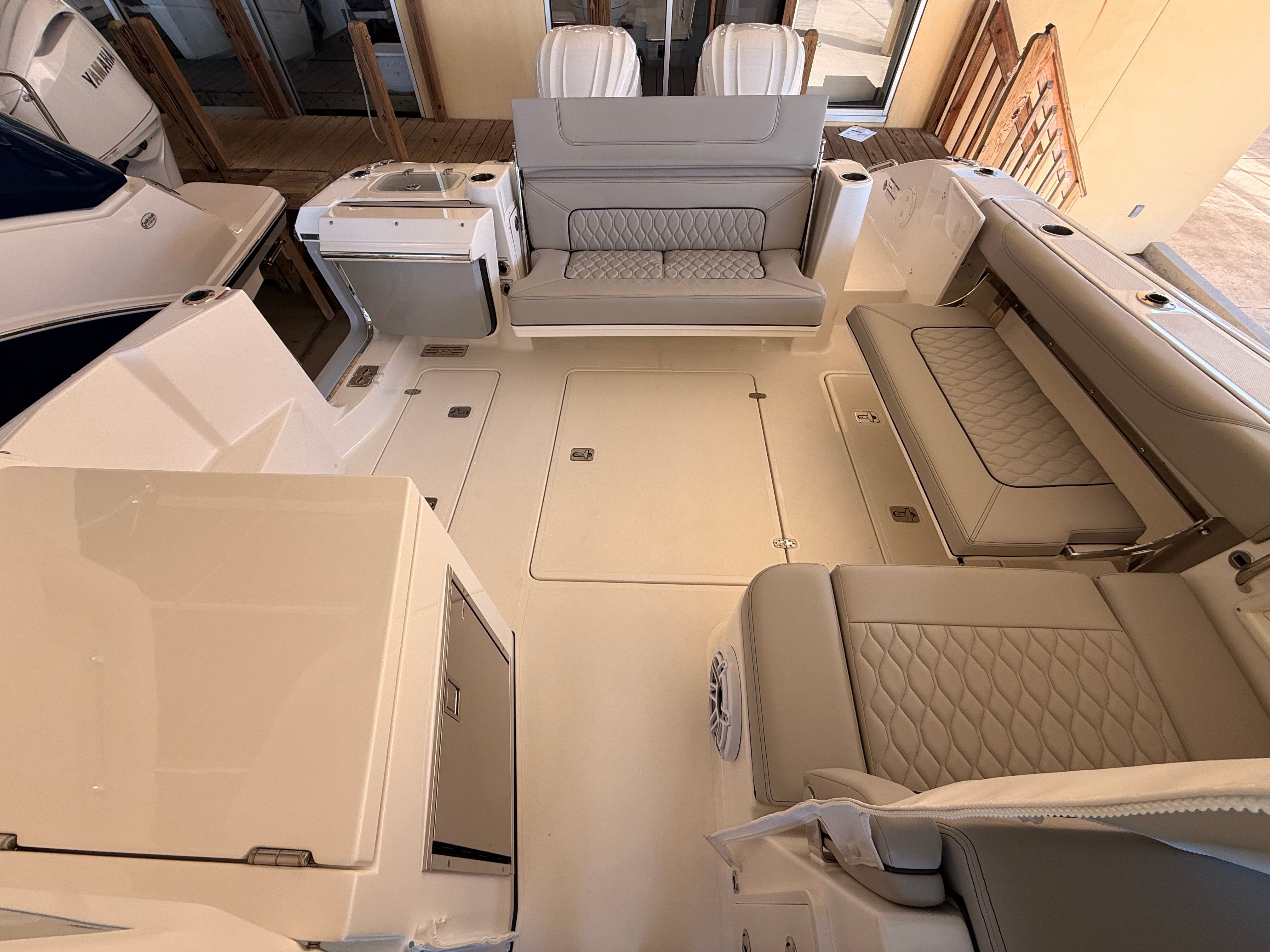 The Pursuit DC 326 is designed with practicality in mind, making ownership as enjoyable as your time on the water. The Yamaha Joystick Control system simplifies docking and maneuvering, reducing stress and allowing you to explore new destinations with confidence. The onboard generator provides dependable power for all your electrical needs, while the efficient twin Yamaha engines offer impressive performance without compromising fuel economy. Ample storage throughout the boat ensures you have space for all your gear, from fishing equipment to water toys and picnic supplies. The durable construction and high-quality materials used in the Pursuit DC 326 mean you can count on years of reliable service and low maintenance.