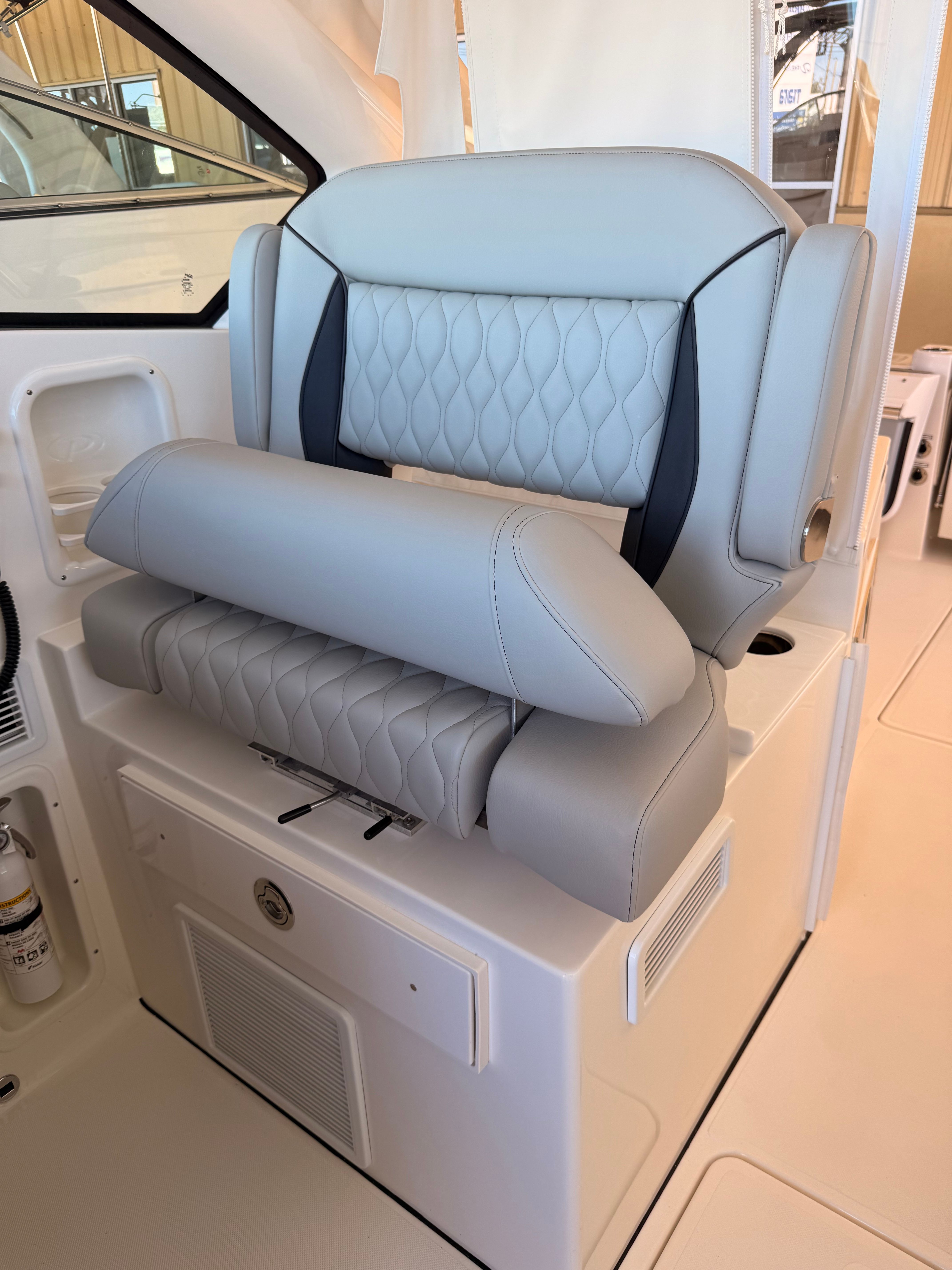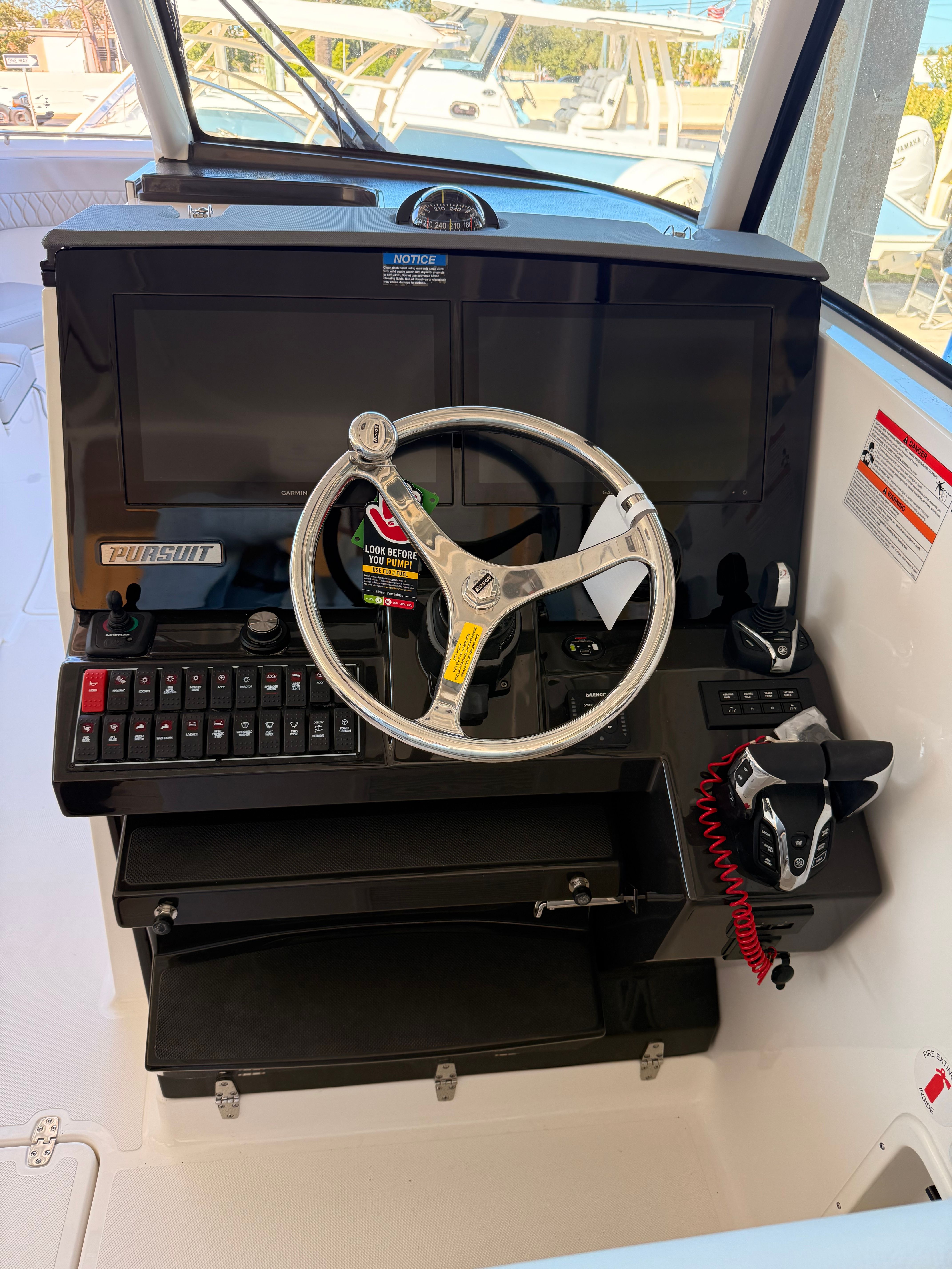 At the heart of the Pursuit DC 326 are twin Yamaha F350XSA2 engines, delivering a combined 700 horsepower for exhilarating speed and responsive handling. Whether you are cruising along the coastline or heading offshore for a day of fishing, these powerful engines provide the confidence and capability you need. The Yamaha Joystick Control system, featuring Full Maneuverability with Set Point and Autopilot, makes docking and navigating tight spaces effortless, even for less experienced boaters. This intuitive control system enhances your boating experience, allowing you to focus on fun and relaxation rather than the challenges of maneuvering.
