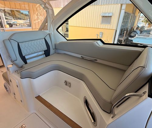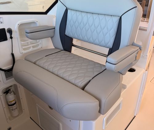 The 2026 Pursuit DC 326 is a 34.5-foot Dual Console boat that embodies the ideal balance between form and function. Its Neptune Gray hull, accented by a bold black boostripe, immediately catches the eye, while the Carbon helm colors and Tranquil Sea interior create a sophisticated and inviting atmosphere. As a brand-new model, this Pursuit boat for sale offers the latest advancements in marine technology and design, ensuring you enjoy both style and substance on every journey.