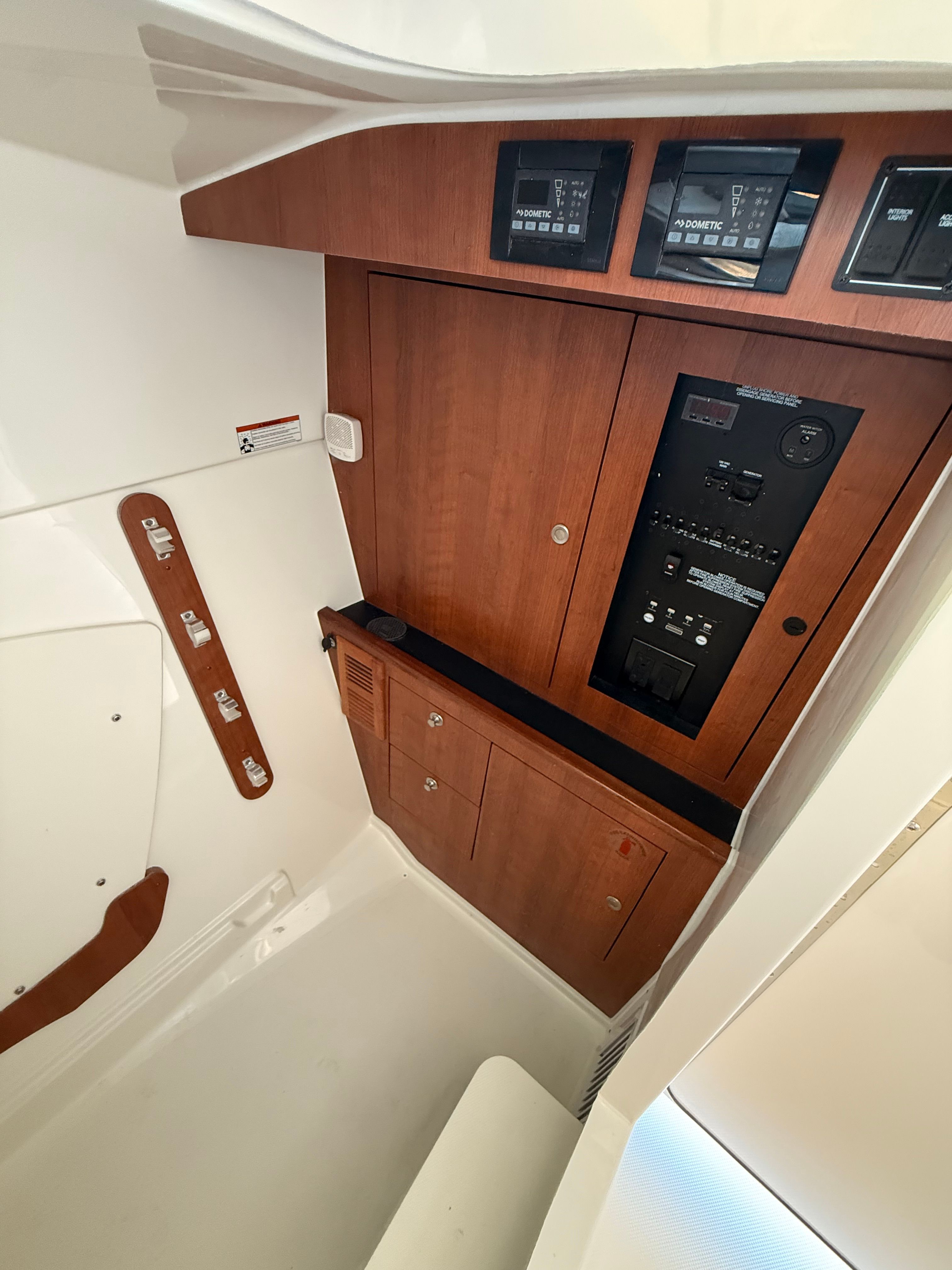 - Air Conditioning Package w/ Reverse Cycle (Cabin/Head 6,000 BTU, Cockpit 12,000 BTU) (Requires Drop Curtain)