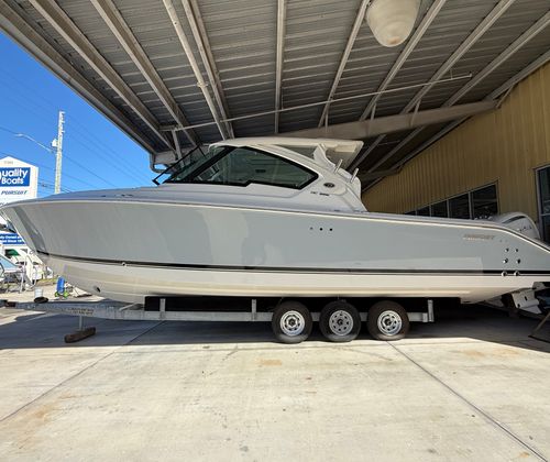 The 2026 Pursuit DC 326 is a remarkable Dual Console boat for sale that combines cutting-edge performance, luxurious comfort, and unmatched versatility. With its twin Yamaha F350XSA2 engines, advanced joystick control, Neptune Gray hull, and a host of premium features—including a cockpit grill, generator, air conditioning package, and teak table—this Pursuit boat for sale is designed to deliver unforgettable experiences on the water. Whether you are seeking adventure, relaxation, or a little bit of both, the Pursuit DC 326 is ready to exceed your expectations. Discover the joy of boating at its finest and contact your local dealer today to learn more about making this exceptional vessel your own.