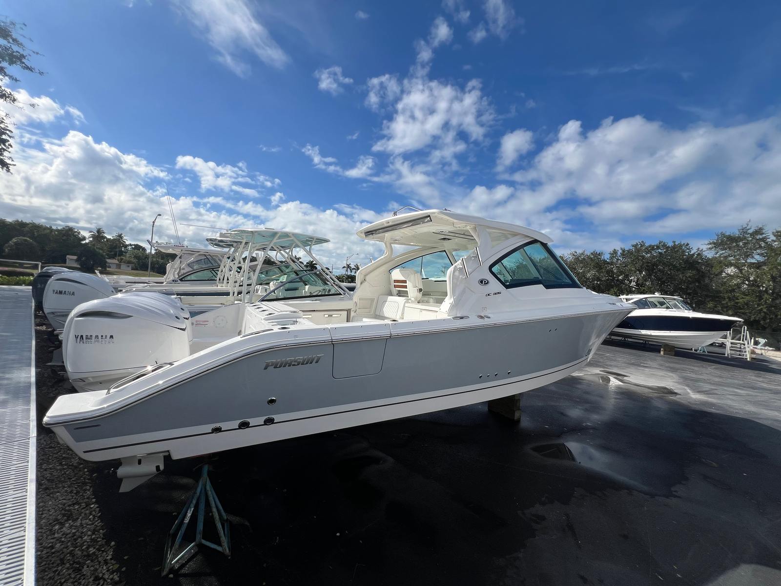 The Pursuit DC 326 is designed with practicality in mind, making ownership as enjoyable as it is effortless. The ample storage throughout the boat ensures that all your gear, water toys, and personal items have a designated place, keeping the deck clutter-free and organized. Docking and maneuvering are made easy thanks to the responsive twin Yamaha engines and intuitive helm controls.The efficient generator provides reliable power for all your onboard amenities, so you can enjoy extended trips without sacrificing comfort. The air conditioning system, combined with the retractable sunshade, allows you to create the perfect environment for relaxation, no matter the weather. The cockpit grill and cooler make it simple to prepare and enjoy meals on the go, adding convenience to your boating lifestyle.