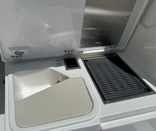 At the heart of the Pursuit DC 326 are twin Yamaha Digital F350 V6 Offshore engines, finished in Pearlescent White for a modern, upscale look. Together, these engines provide a combined 700 horsepower, ensuring exhilarating acceleration, impressive top speeds, and smooth cruising in a variety of conditions. The integrated Digital Electric Steering (DES) and Helm Master EX Digital Electronic Control (DEC) system offer precise handling and effortless control, making docking and maneuvering a breeze. The Yamaha Joystick Control with full maneuverability, Set Point, and Autopilot features further enhance your confidence at the helm, allowing you to navigate tight marinas or open waters with ease. The Multifunction Display Interface keeps you informed and in control, while the manual engine flushing system simplifies maintenance, helping to keep your engines running at peak performance.