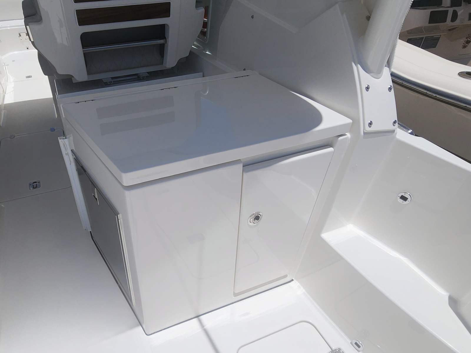 The 2026 Pursuit DC 326 is a brand-new dual console boat that measures an impressive 34.5 feet in length. This spacious design provides ample room for entertaining, relaxing, and enjoying all your favorite water activities. The DC 326’s modern profile is accentuated by its Fresh White hull color, complemented by a Platinum boot stripe with a Platinum accent, making it a true head-turner at any marina or dock. Whether you’re cruising along the coast or anchored at your favorite spot, this Pursuit boat for sale offers a perfect balance of style and substance.