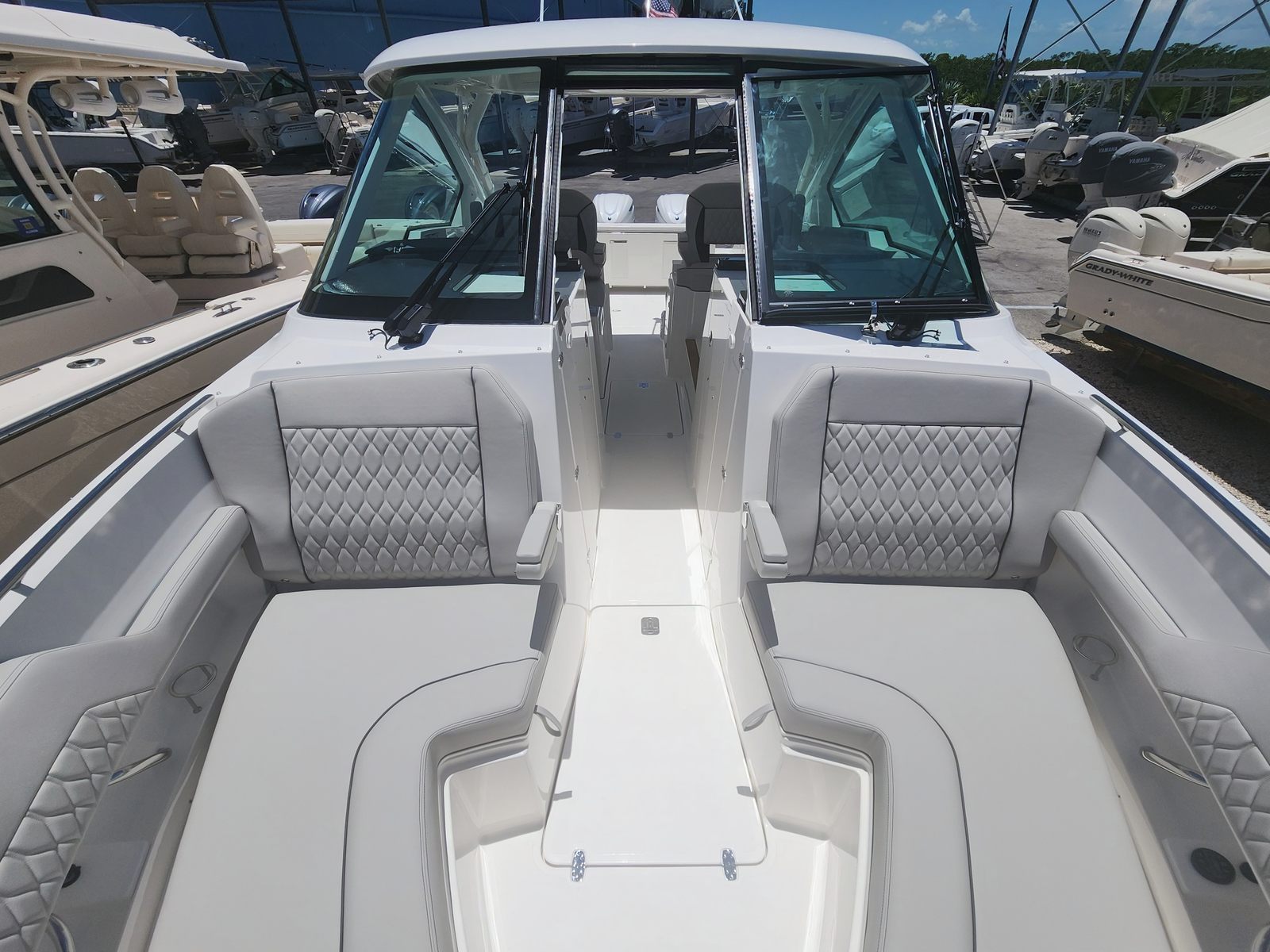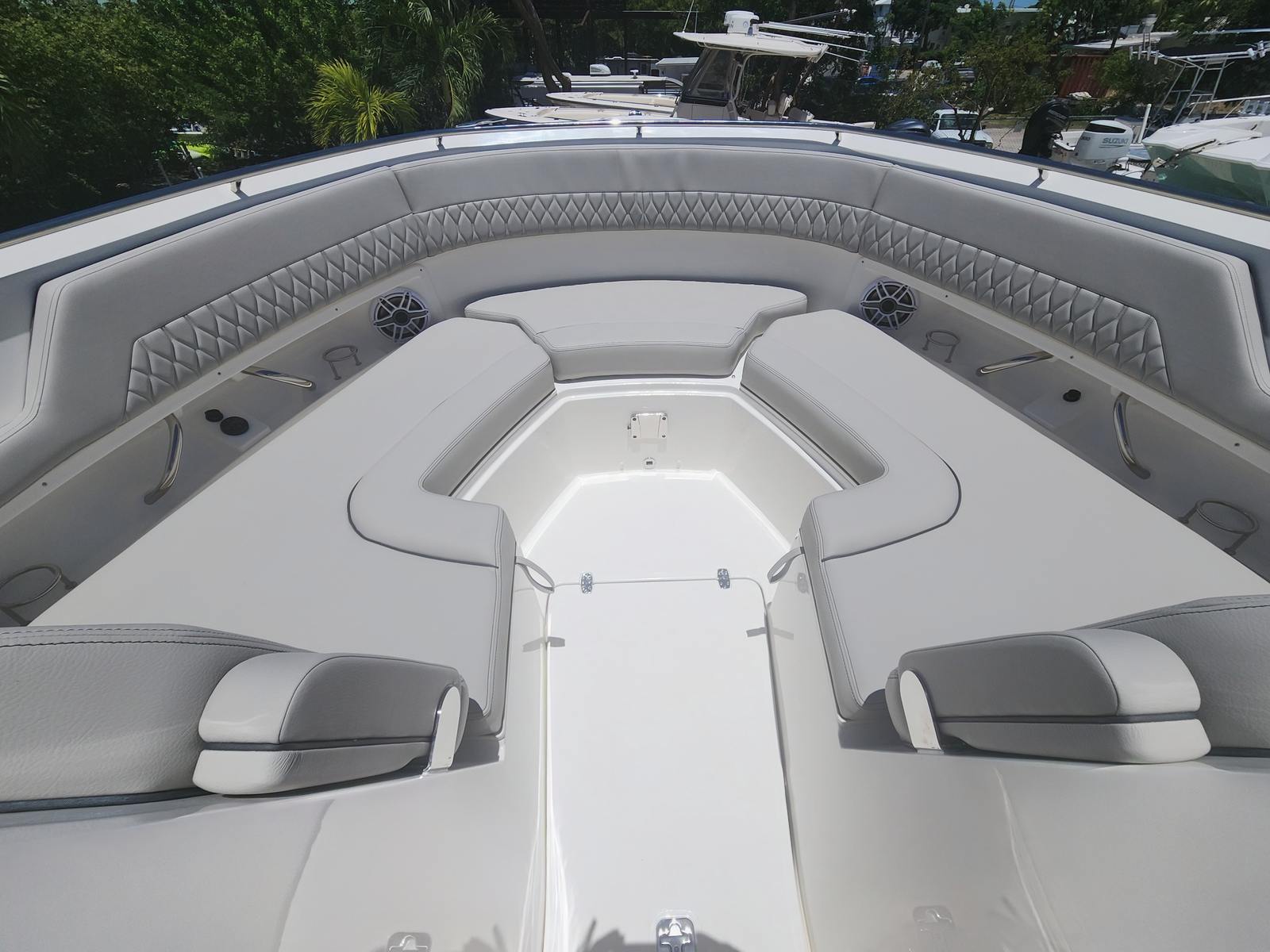Power and precision are at the heart of the Pursuit DC 326. Equipped with twin Yamaha F350 engines, this dual console boat delivers a combined 700 horsepower, ensuring exhilarating acceleration and smooth cruising even in challenging conditions. The advanced joystick control system provides effortless maneuverability, making docking and tight turns a breeze. Whether you’re navigating busy waterways or exploring secluded coves, the DC 326’s responsive handling and robust powertrain guarantee a thrilling and confident ride every time you hit the water.