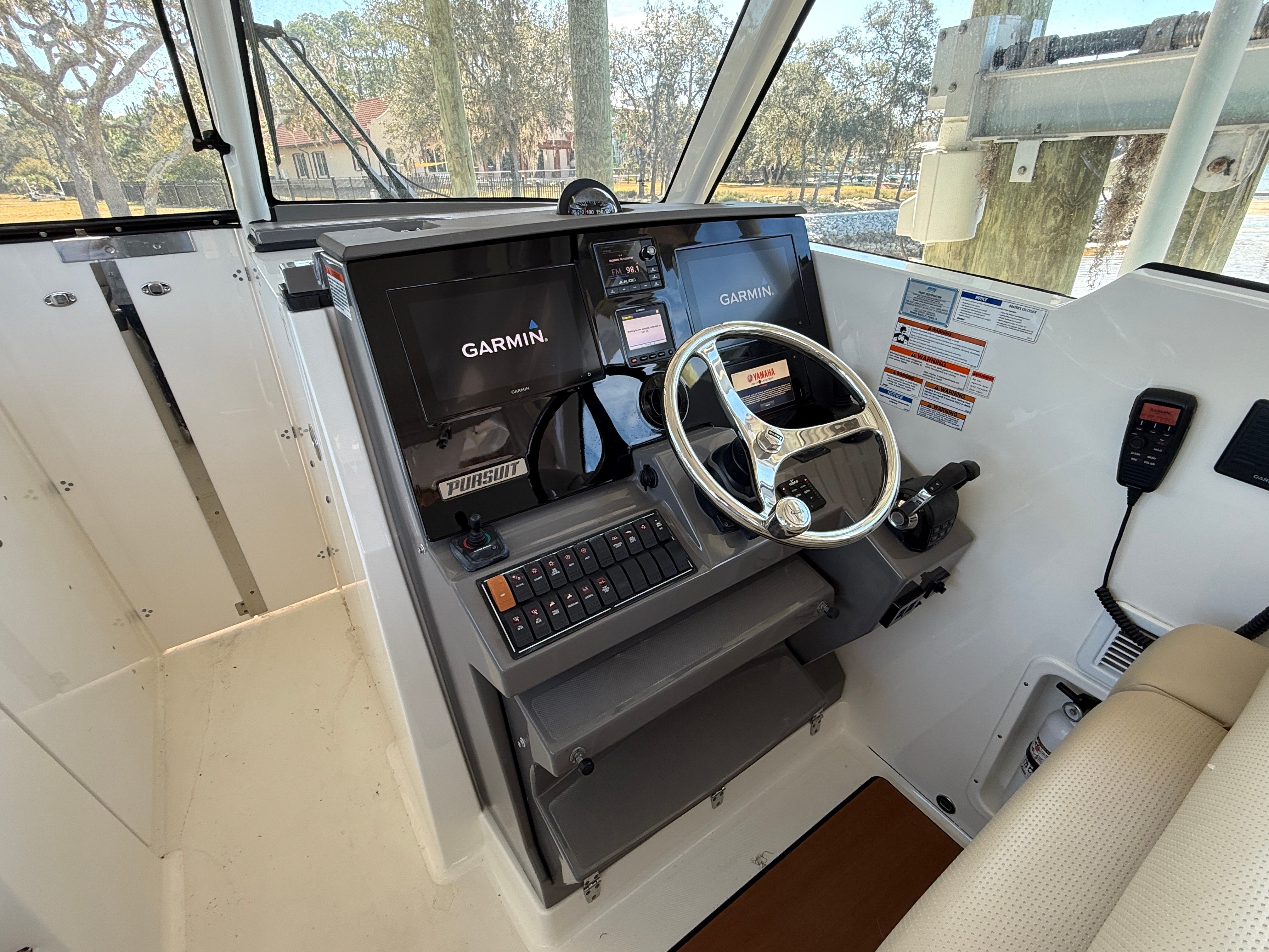 Check out this beautiful 2020 Pursuit 326 DC loaded with all the right features and options freshly serviced and ready to go! This one owner boat has been lift kept under a covered dock and was loaded up from the factory with all the options that are so highly sought after! Generator, Air Conditioning, Electric Sunshade, Joystick, Autopilot, Radar, Bowthruster and on and on!!! This boat only has 368 hours of use on the Yamaha 300's and has been well maintained! Full List of Factory Options below: