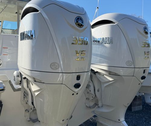 - Twin Yamaha Digital F350 V6 Offshore (Pearlescent White) w/Integrated Digital Electric Steering (DES) and Helm Master EX Digital Electronic Control (DEC) (does not include joystick control), Multifunction Display Interface and Manual Engine Flushing System