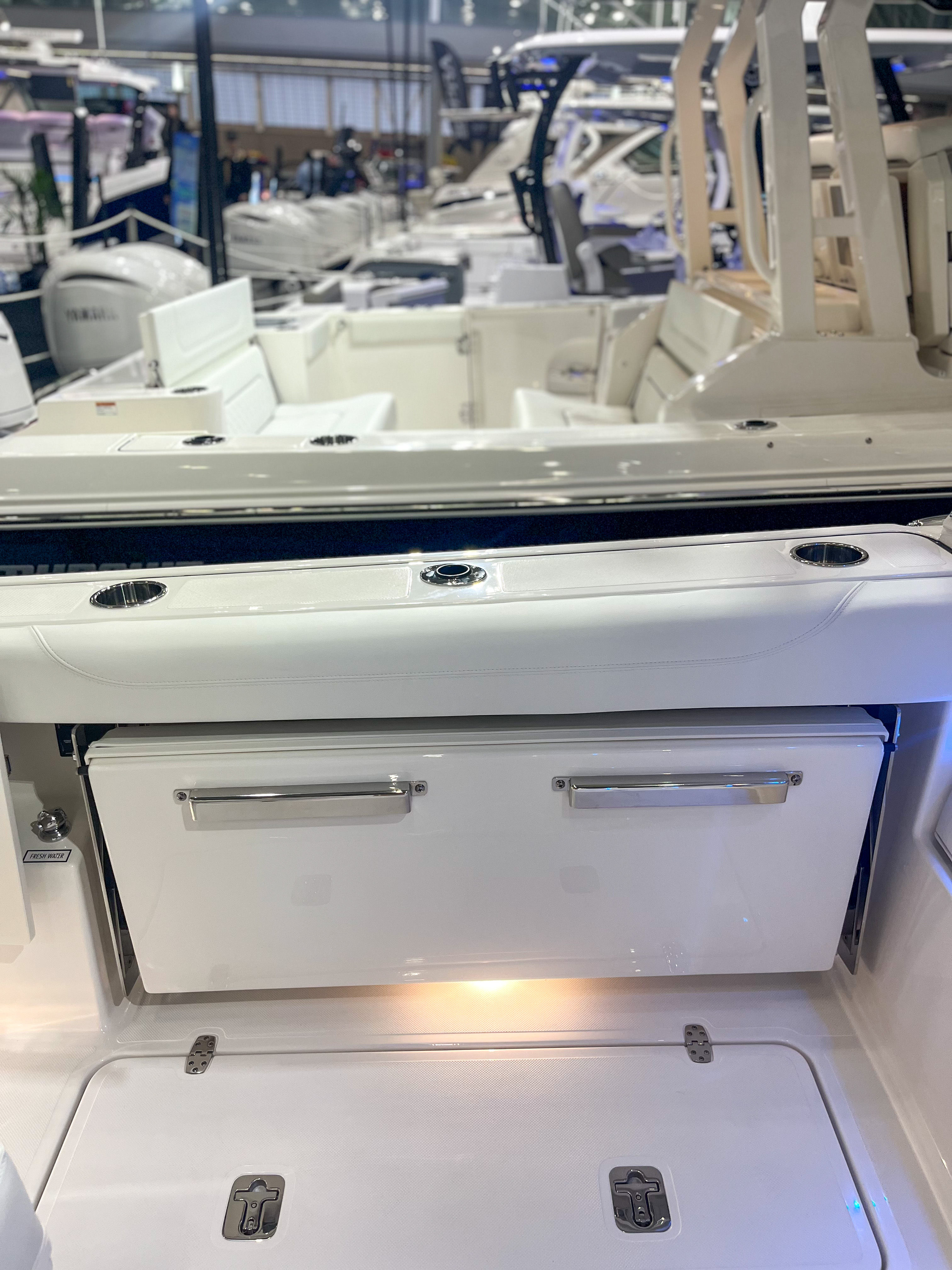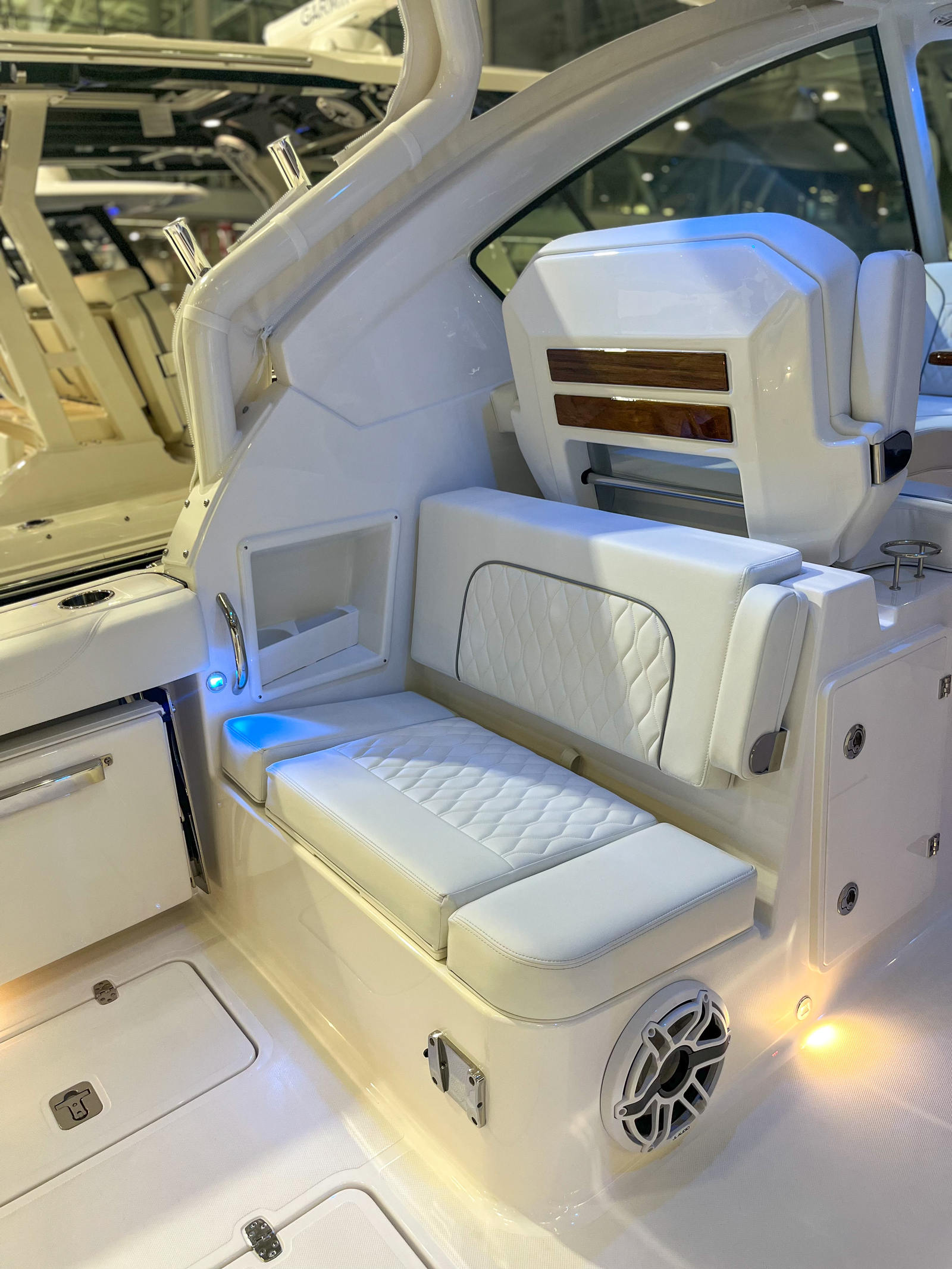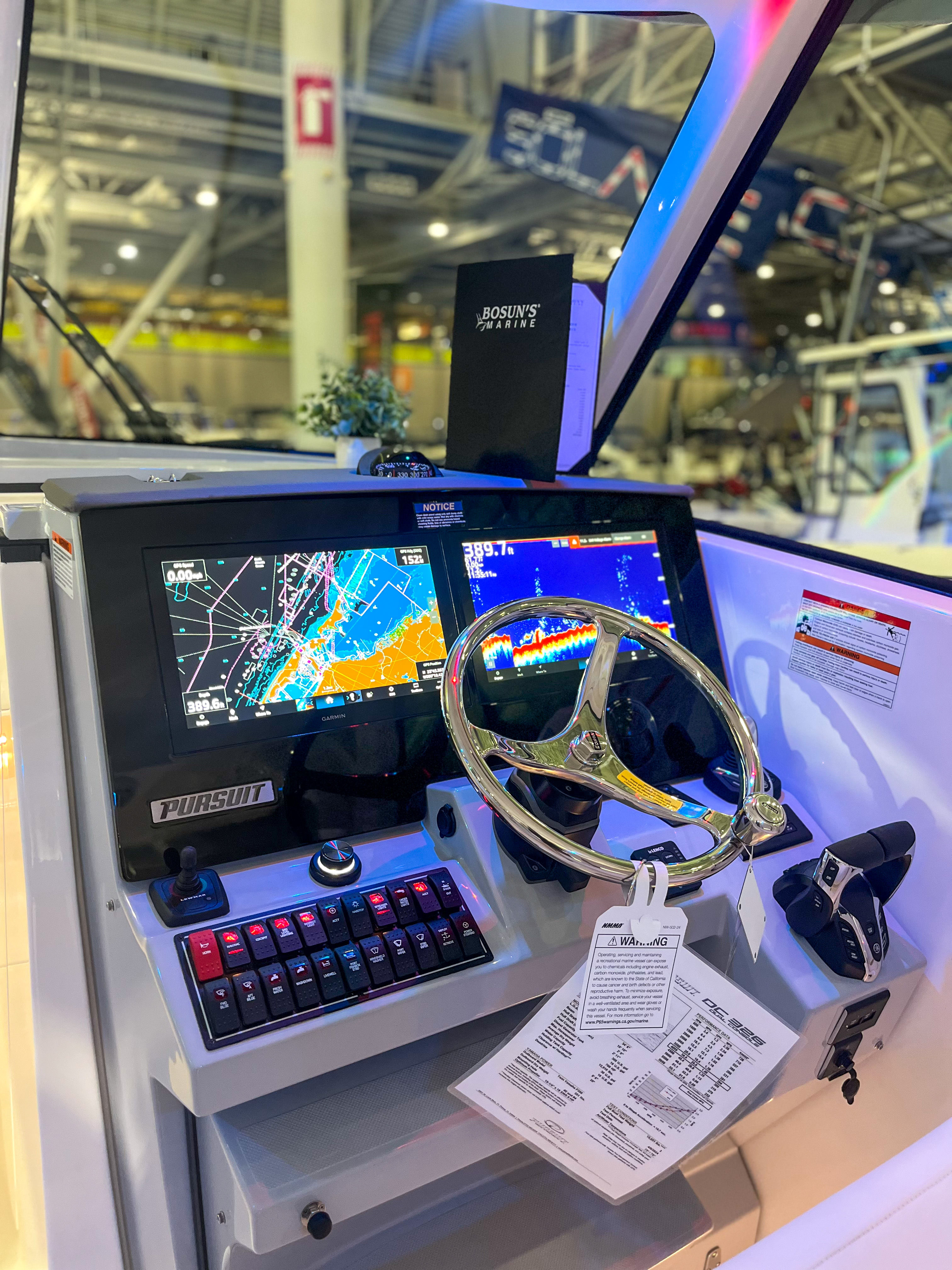 Powering the Pursuit DC 326 are twin Yamaha Digital F350 V6 Offshore engines in a stunning Pearlescent White finish. With a combined 700 horsepower, this dual console boat for sale is engineered for exhilarating performance and smooth handling, whether you’re slicing through open water or maneuvering into a tight slip. The integrated Digital Electric Steering (DES) and Helm Master EX Digital Electronic Control (DEC) system provide precise control and effortless navigation, while the Yamaha Joystick Control with full maneuverability, Set Point, and Autopilot functions make docking and close-quarters handling a breeze. The manual engine flushing system ensures easy maintenance, keeping your engines in peak condition for years to come.