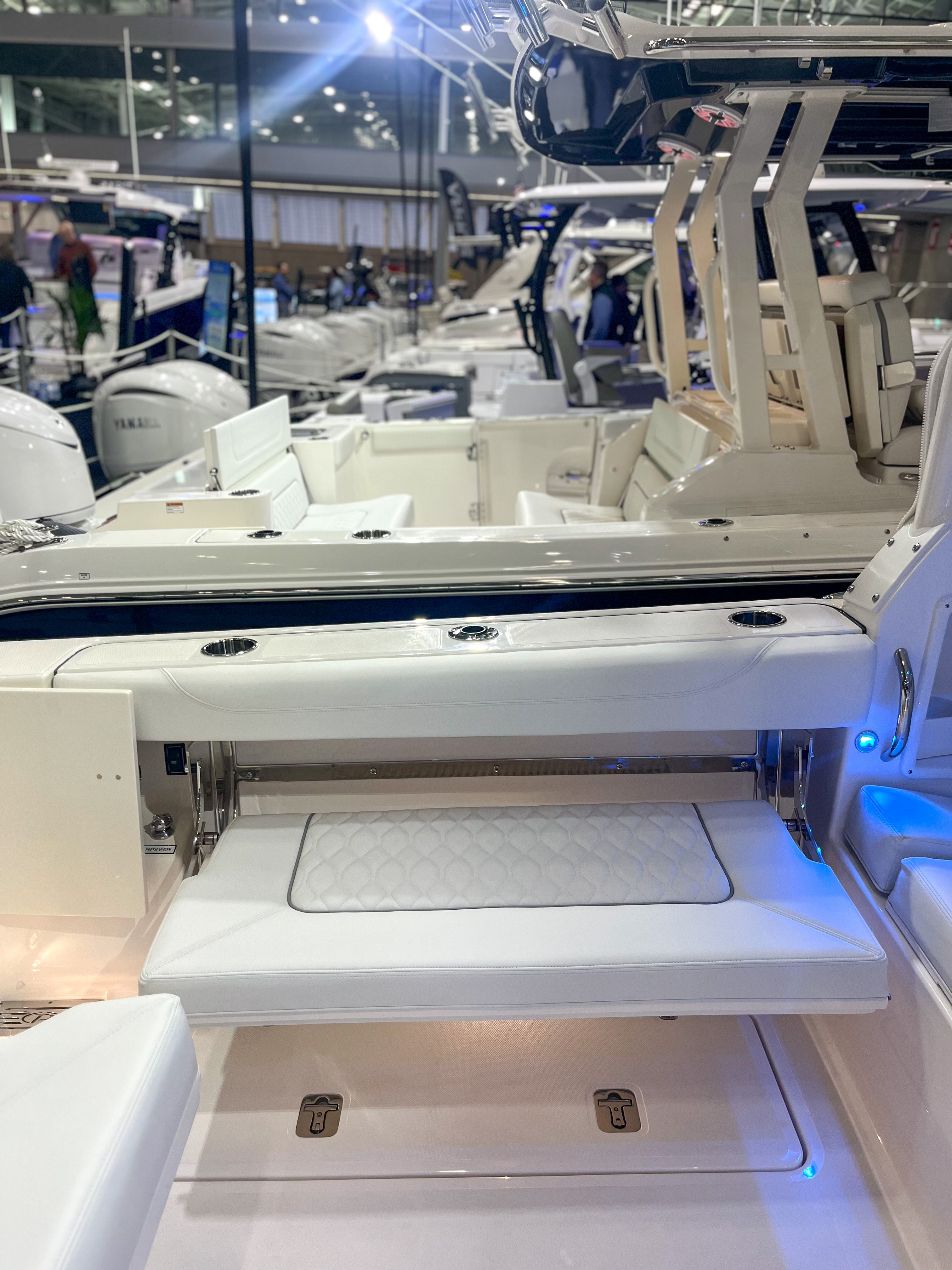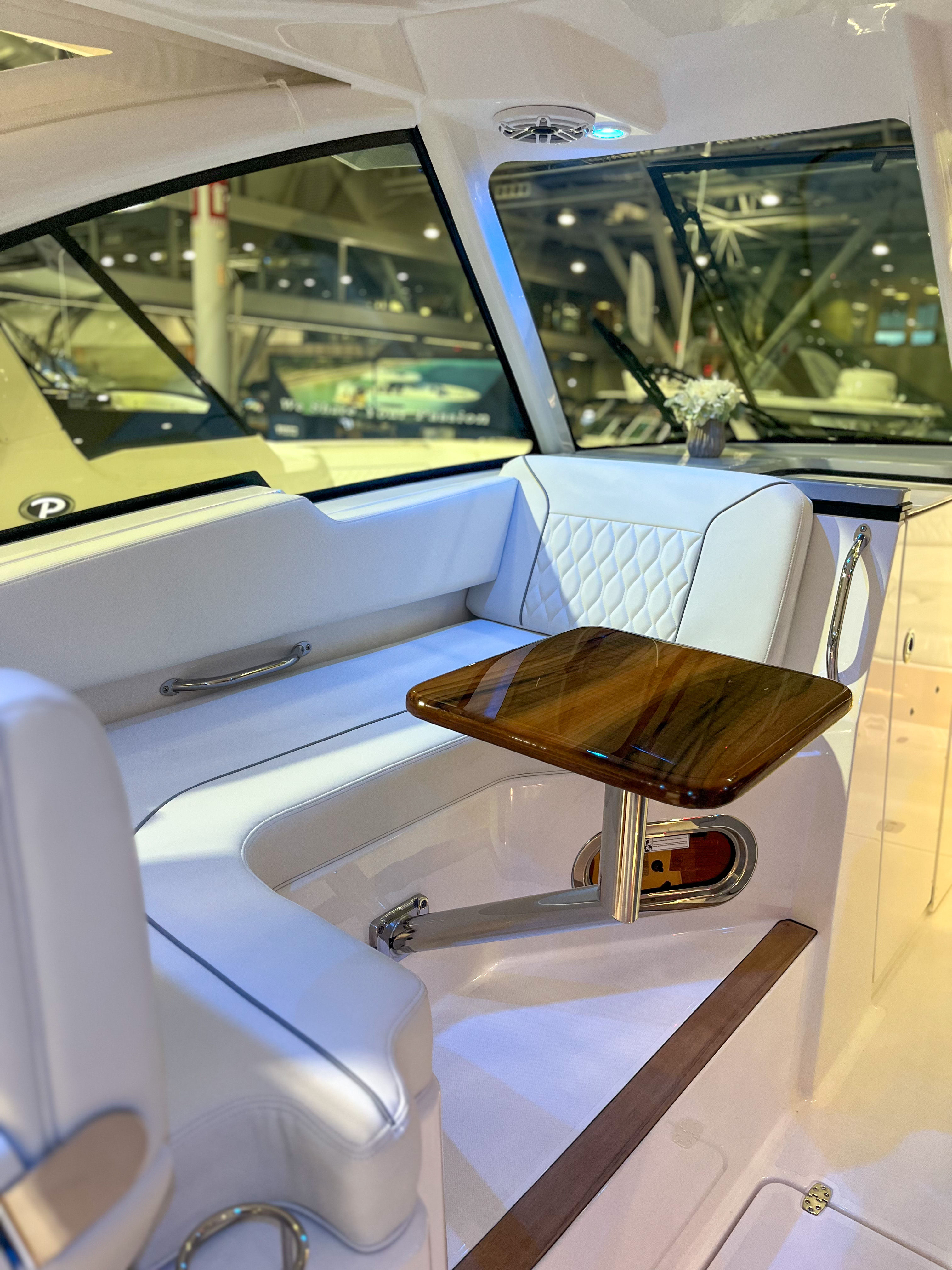 The Pursuit DC 326 is as practical as it is luxurious. The Yamaha Joystick Control with Set Point and Autopilot functions simplifies docking and maneuvering, reducing stress and making it easy to handle the boat solo or with a small crew. The manual engine flushing system streamlines maintenance, helping you protect your investment and maximize time on the water.Storage solutions are thoughtfully integrated throughout the boat, including the bridge deck teak table with dedicated storage, ensuring your gear and essentials are always within reach but never in the way. The hardtop-mounted rod holders keep fishing equipment organized and accessible, while the stowable sunshade offers flexible protection from the elements.