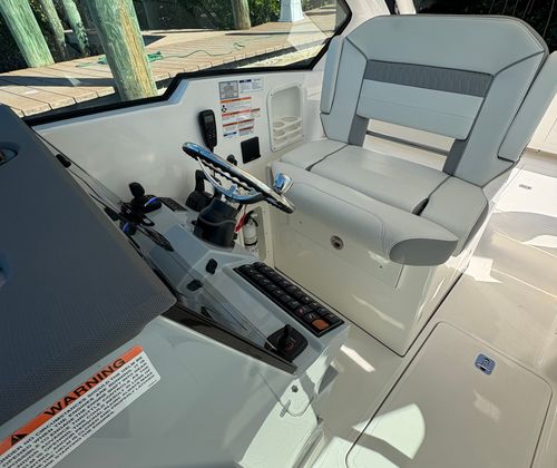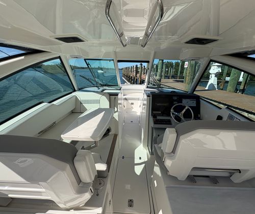Experience exceptional performance and comfort with this 2023 Pursuit 326 DC, showing just 156 hours and loaded with premium equipment. Powered by twin Yamaha Digital F300 V6 Offshore engines with Yamaha Joystick Control, this versatile dual console delivers confident handling and effortless docking. A bow thruster and autopilot further enhance navigation and control.