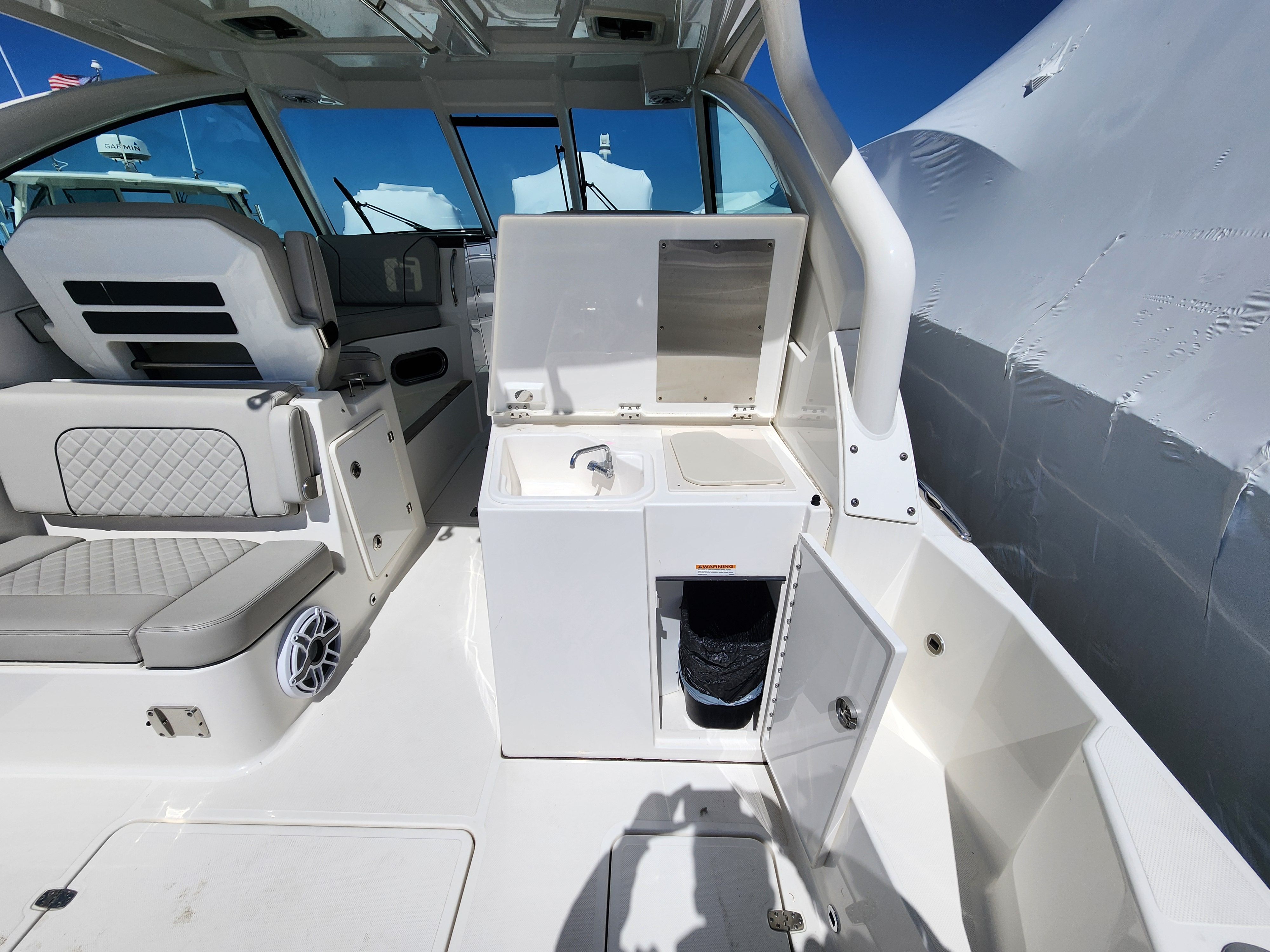 In addition to its recreational benefits, the Pursuit DC 326 offers a range of practical features that make ownership a breeze. The generous storage options allow you to keep your gear organized and out of the way, while the intuitive layout makes it easy to move around the boat safely and efficiently. Docking and maneuvering are simplified by the responsive controls and powerful engines, giving you confidence in any situation.Fuel efficiency is another advantage of the Pursuit DC 326, allowing you to spend more time on the water and less time at the pump. The durable construction and high-quality materials ensure that this boat will stand up to the rigors of regular use, providing years of enjoyment and reliable performance.