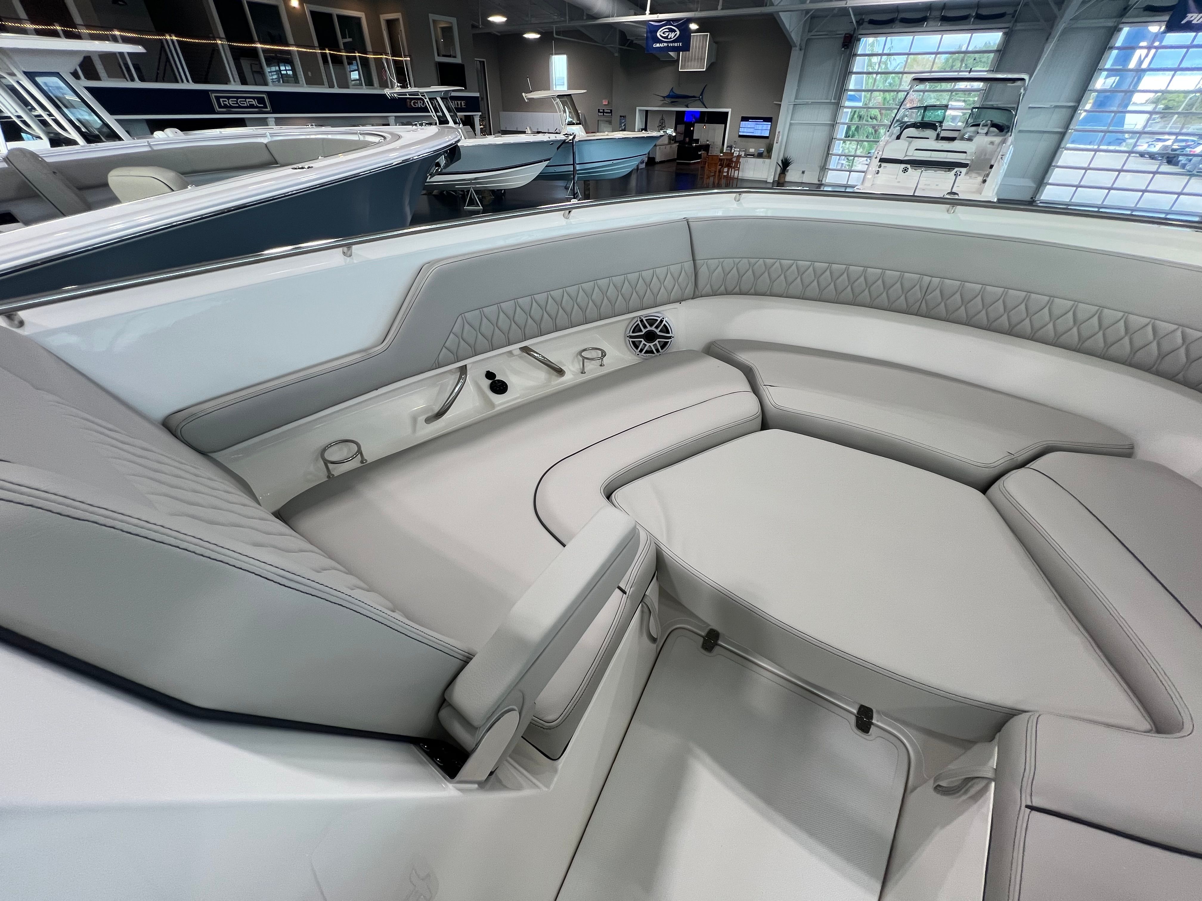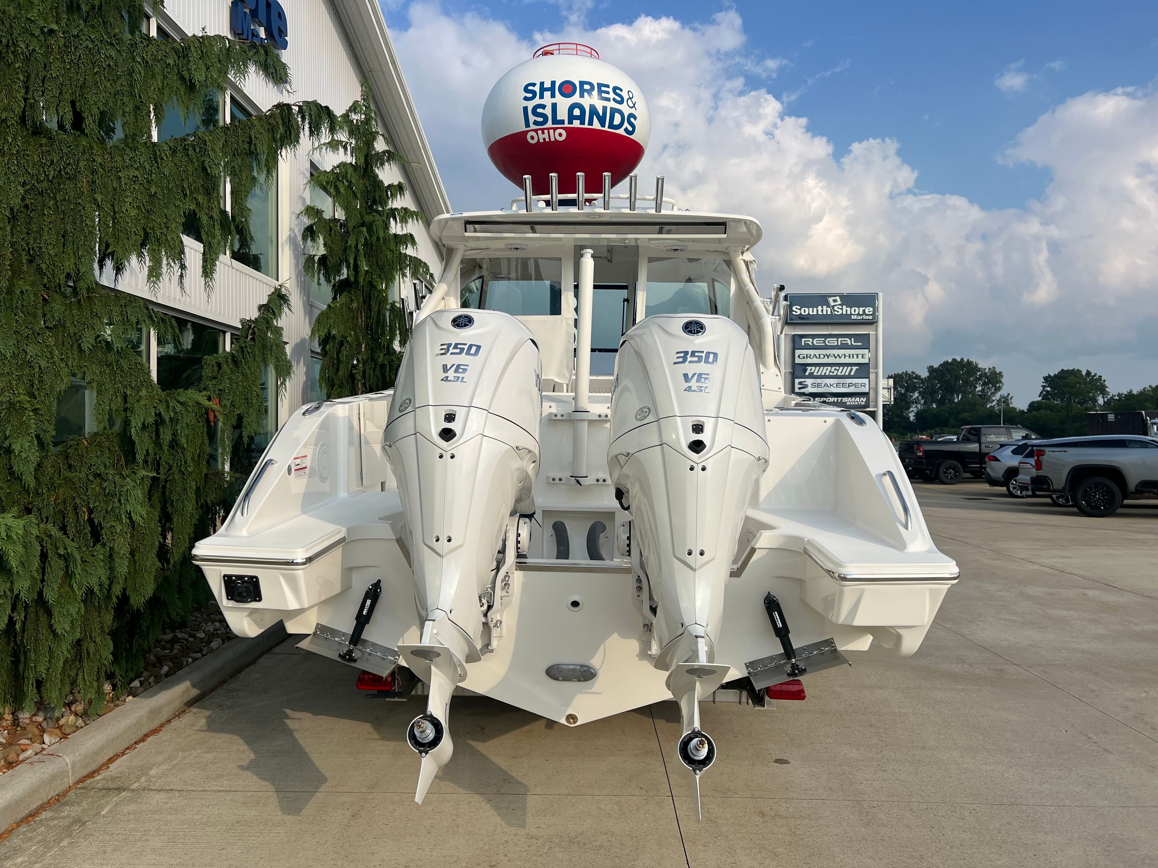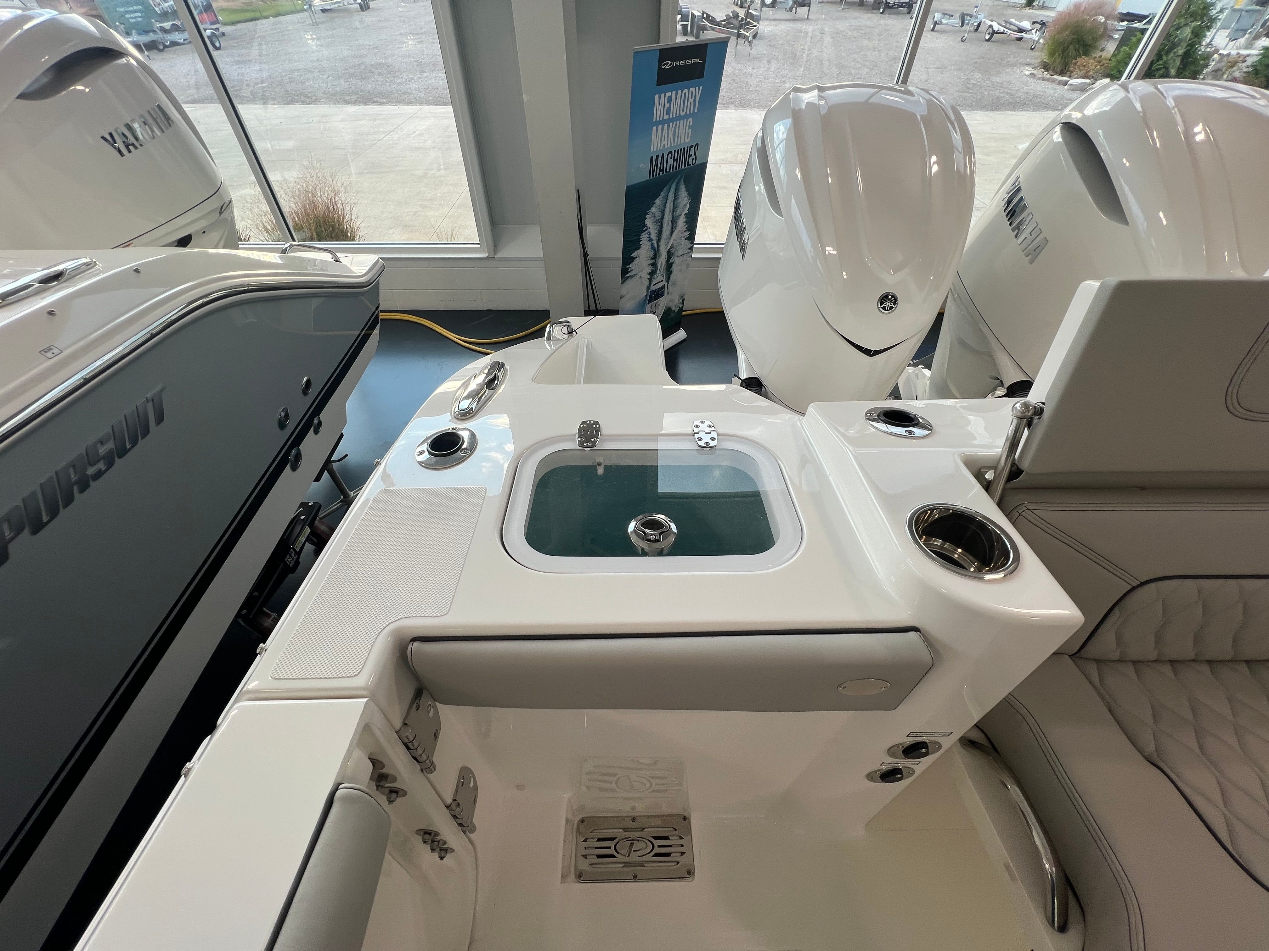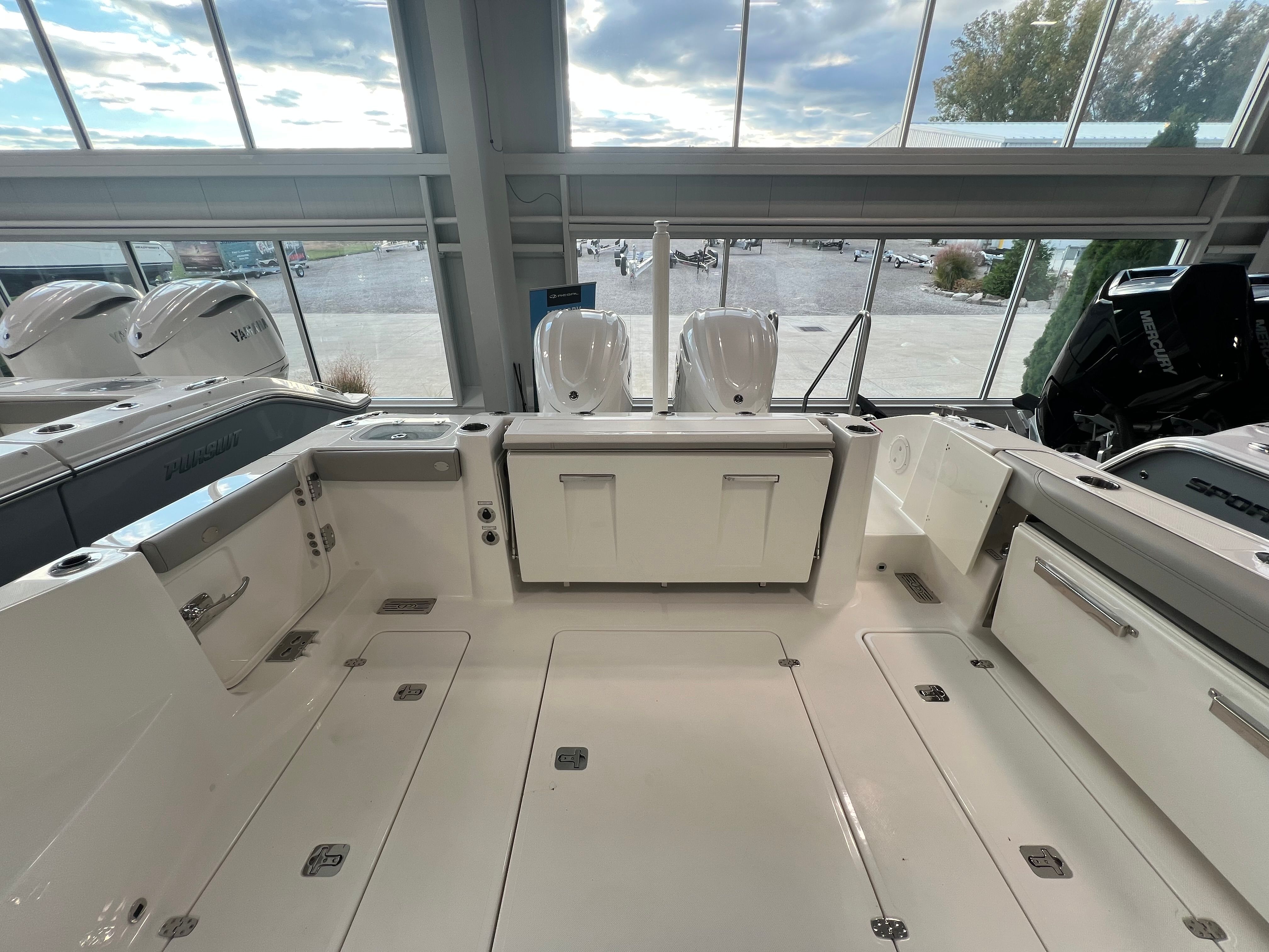 Power and precision define the performance of the Pursuit 326 DC. Equipped with twin engines delivering a combined 700 horsepower, this Dual Console boat is built for exhilarating speed, smooth handling, and reliable performance in a variety of conditions. Whether you are cruising along the coastline, heading out for a day of fishing, or making a quick run to your favorite waterfront restaurant, the Pursuit 326 DC responds with agility and confidence. The advanced hull design ensures a stable, dry ride, while the responsive controls make docking and maneuvering effortless, even for less experienced boaters.