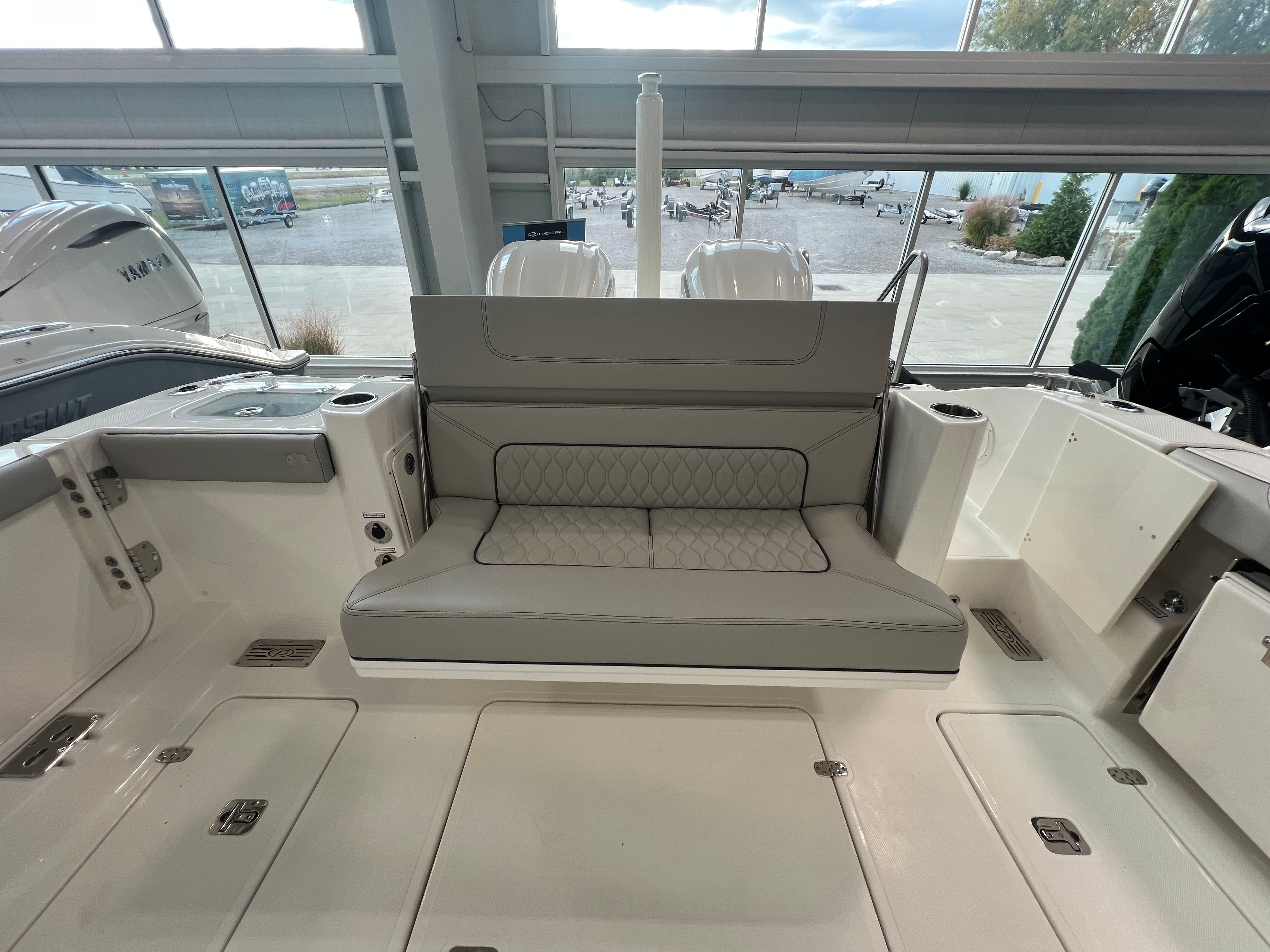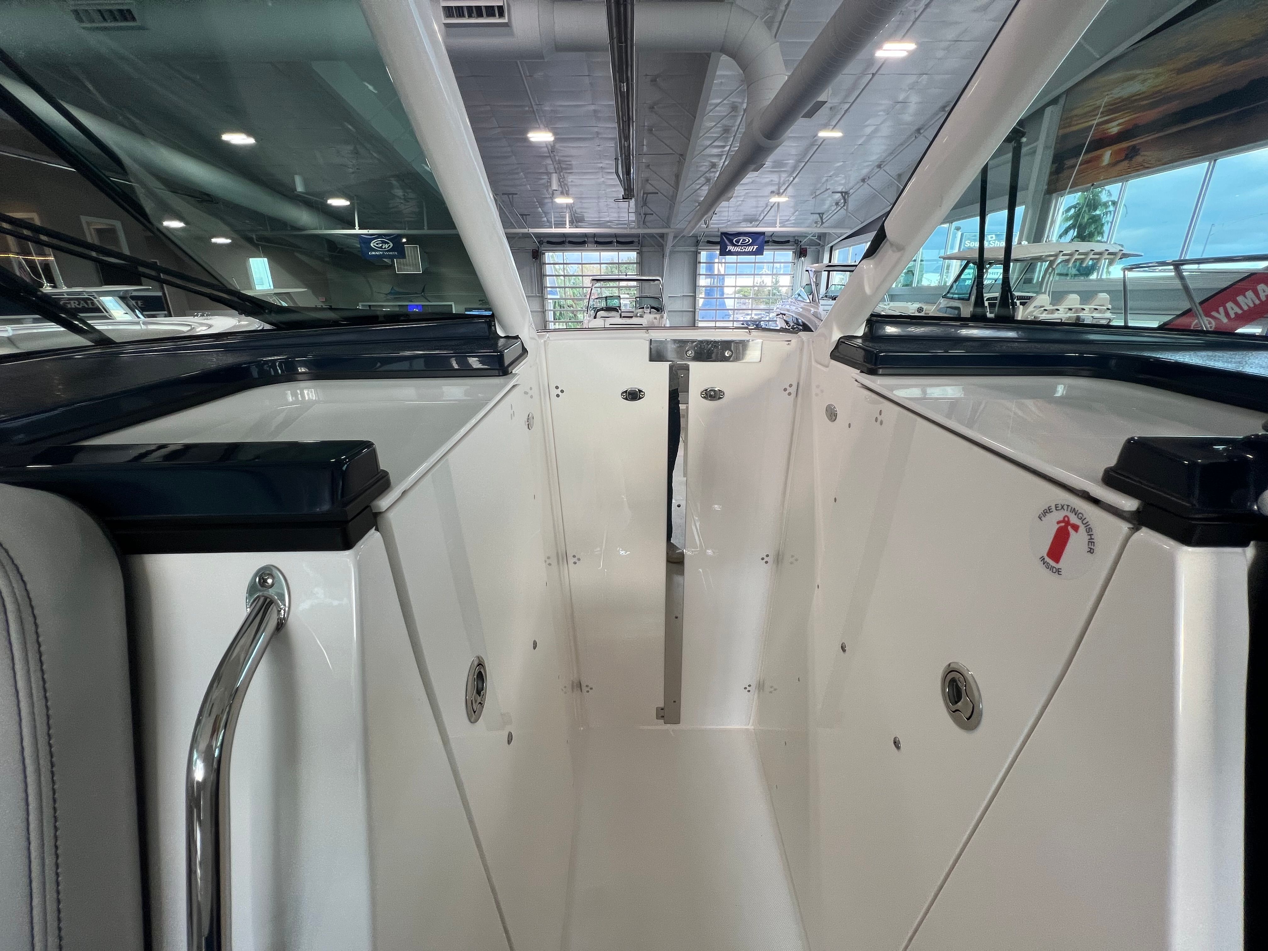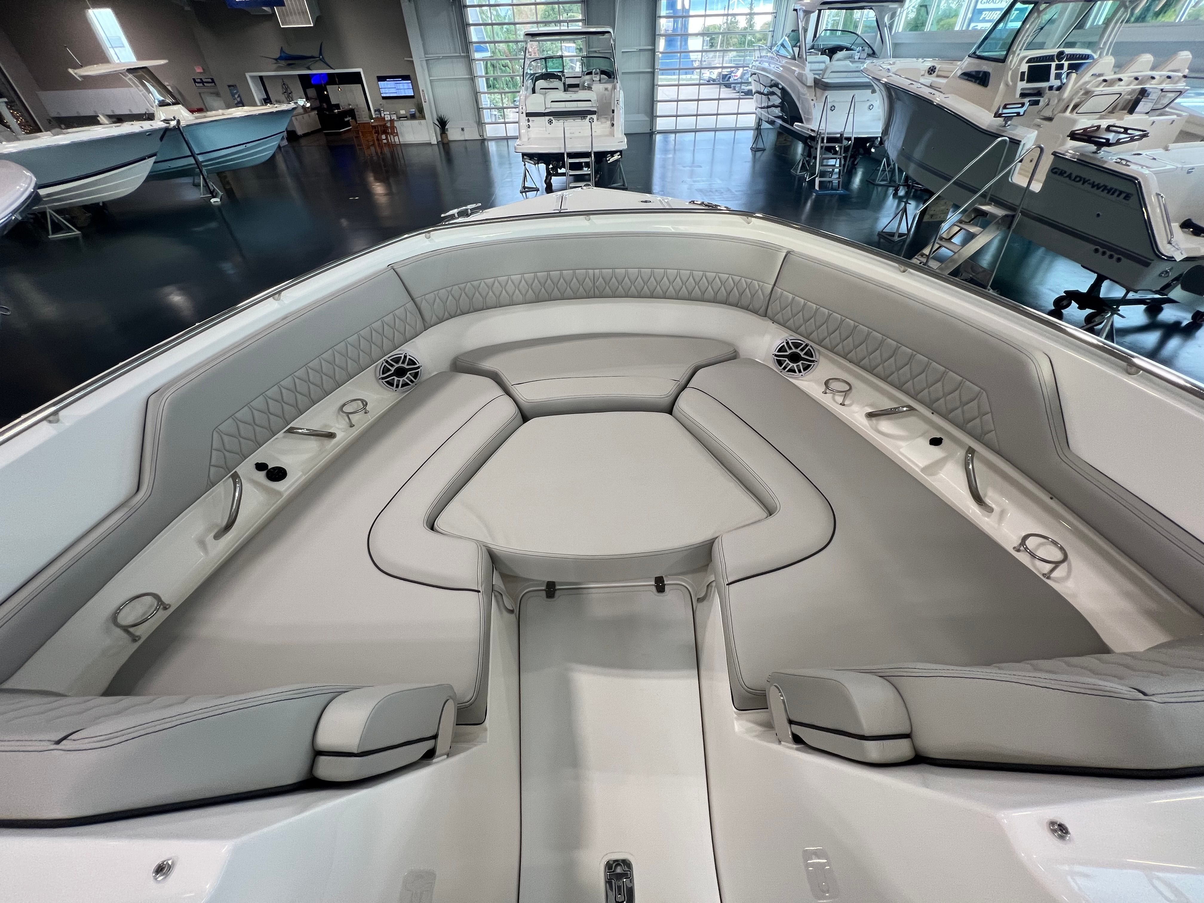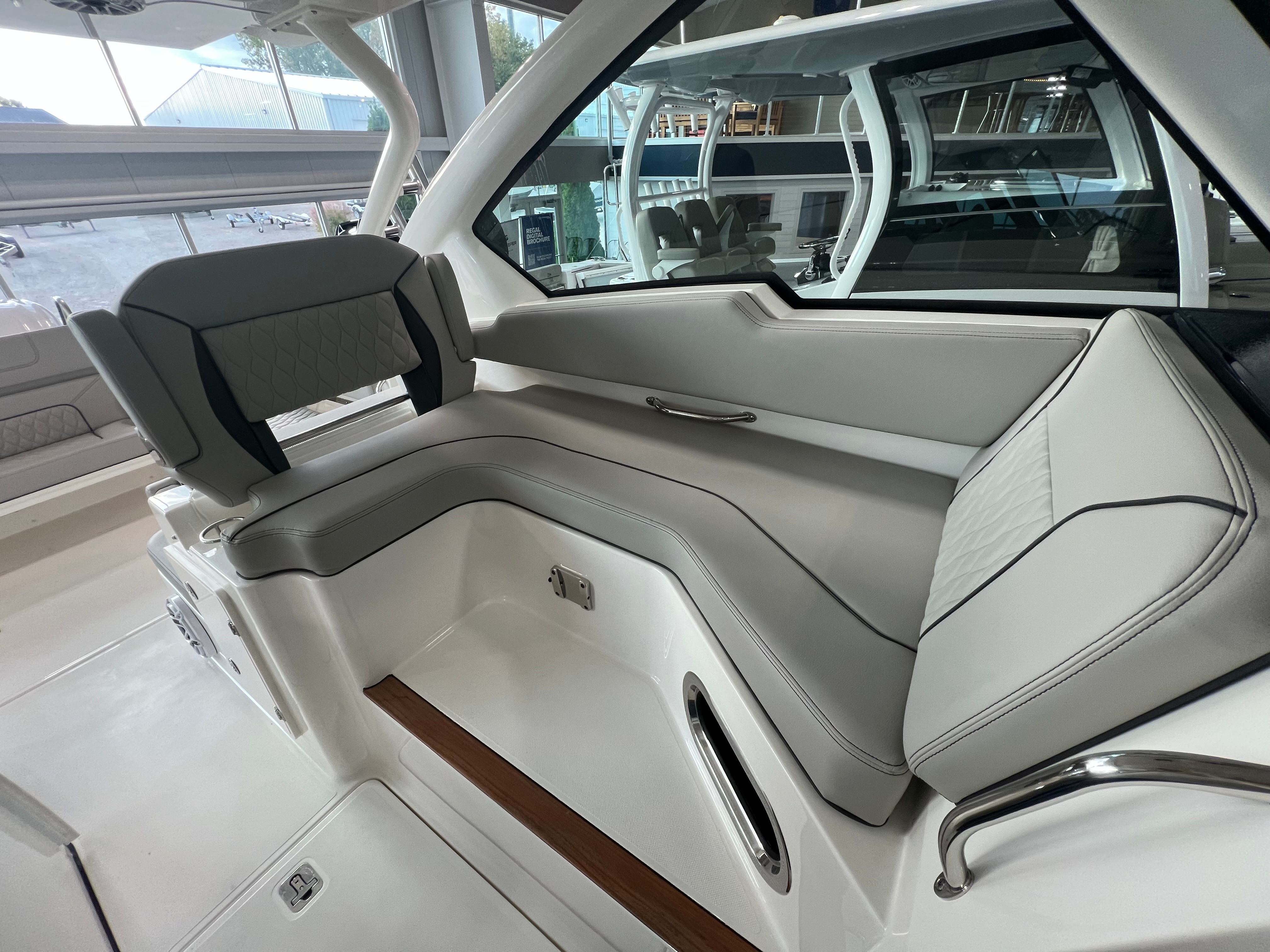 Power and precision define the performance of the Pursuit 326 DC. Equipped with twin engines delivering a combined 700 horsepower, this Dual Console boat is built for exhilarating speed, smooth handling, and reliable performance in a variety of conditions. Whether you are cruising along the coastline, heading out for a day of fishing, or making a quick run to your favorite waterfront restaurant, the Pursuit 326 DC responds with agility and confidence. The advanced hull design ensures a stable, dry ride, while the responsive controls make docking and maneuvering effortless, even for less experienced boaters.