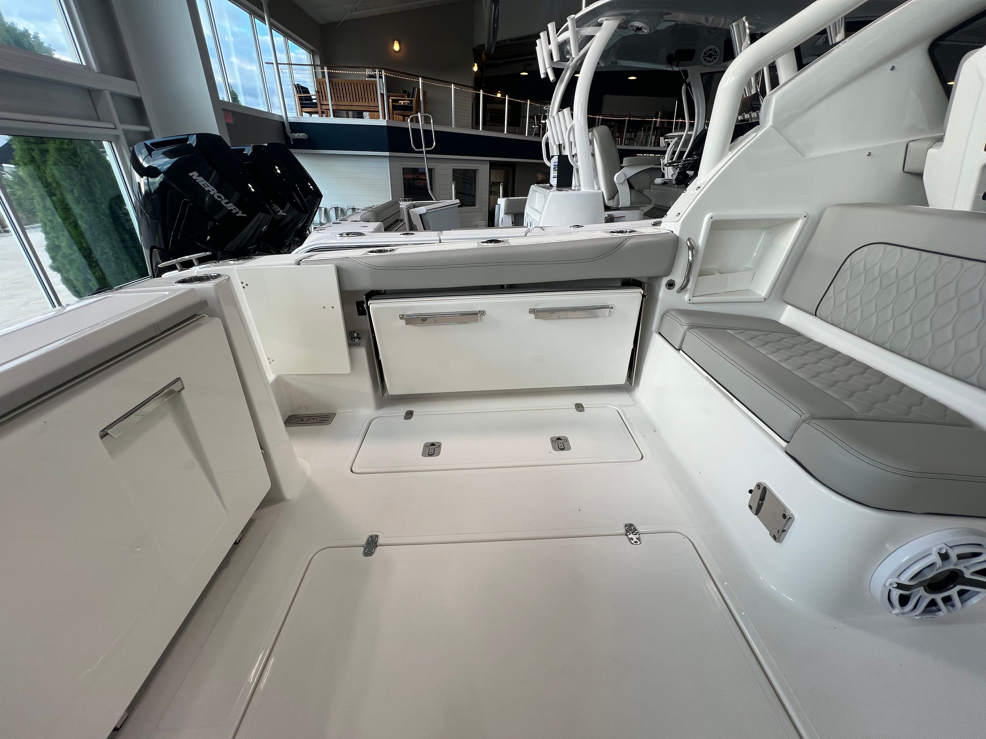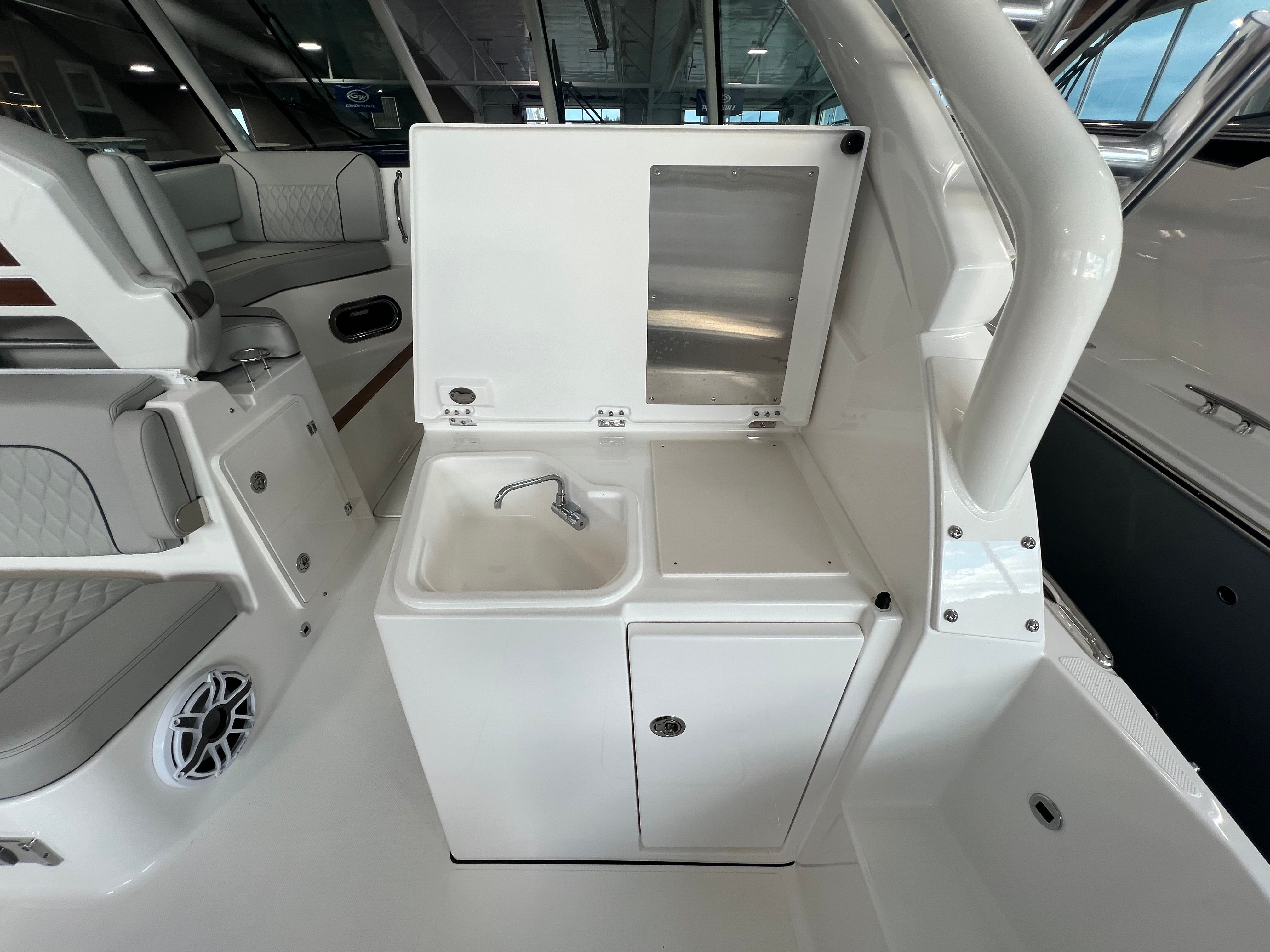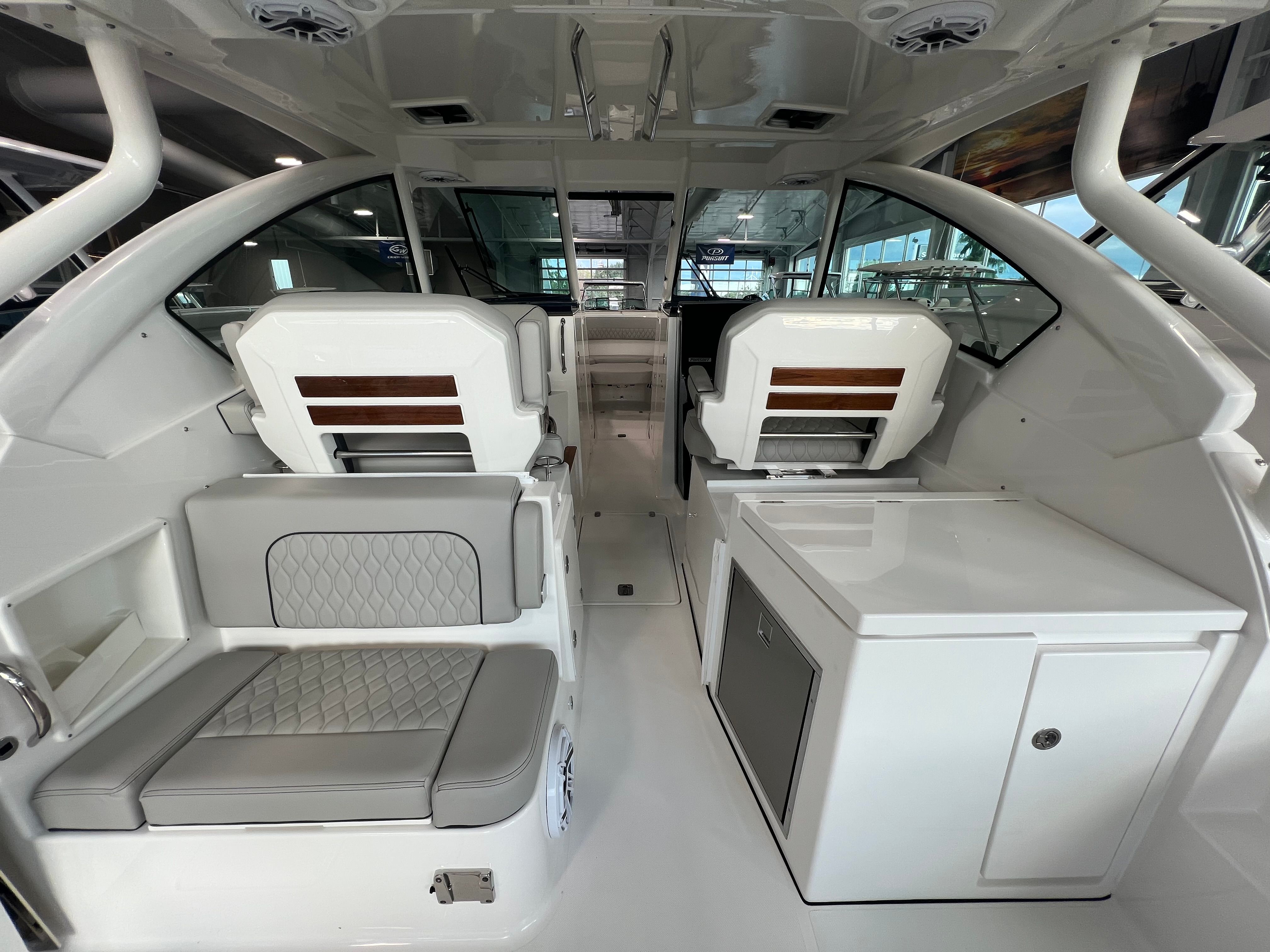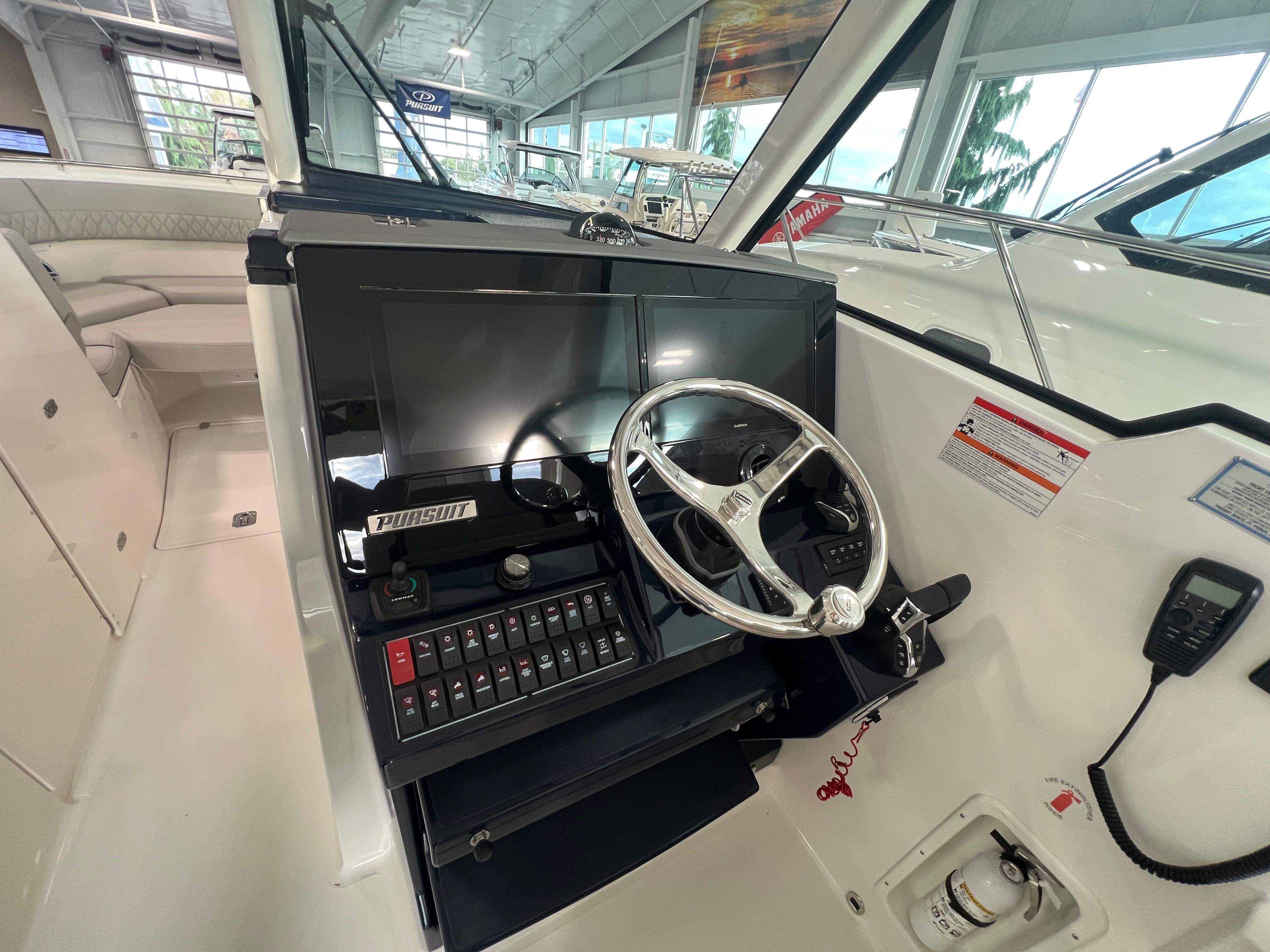 Beyond its impressive style and comfort, the Pursuit 326 DC excels in practical functionality. The ample storage solutions throughout the boat ensure that gear, water toys, and personal items are always within reach yet neatly stowed away. The intuitive layout makes it easy to move about the boat, whether you are preparing for a day of fishing or setting up for a leisurely cruise. Docking is simplified by the boat’s responsive handling and clear sightlines, reducing stress and making every outing more enjoyable. The efficient twin-engine setup not only delivers robust performance but also helps optimize fuel usage, allowing you to spend more time on the water and less time at the pump.