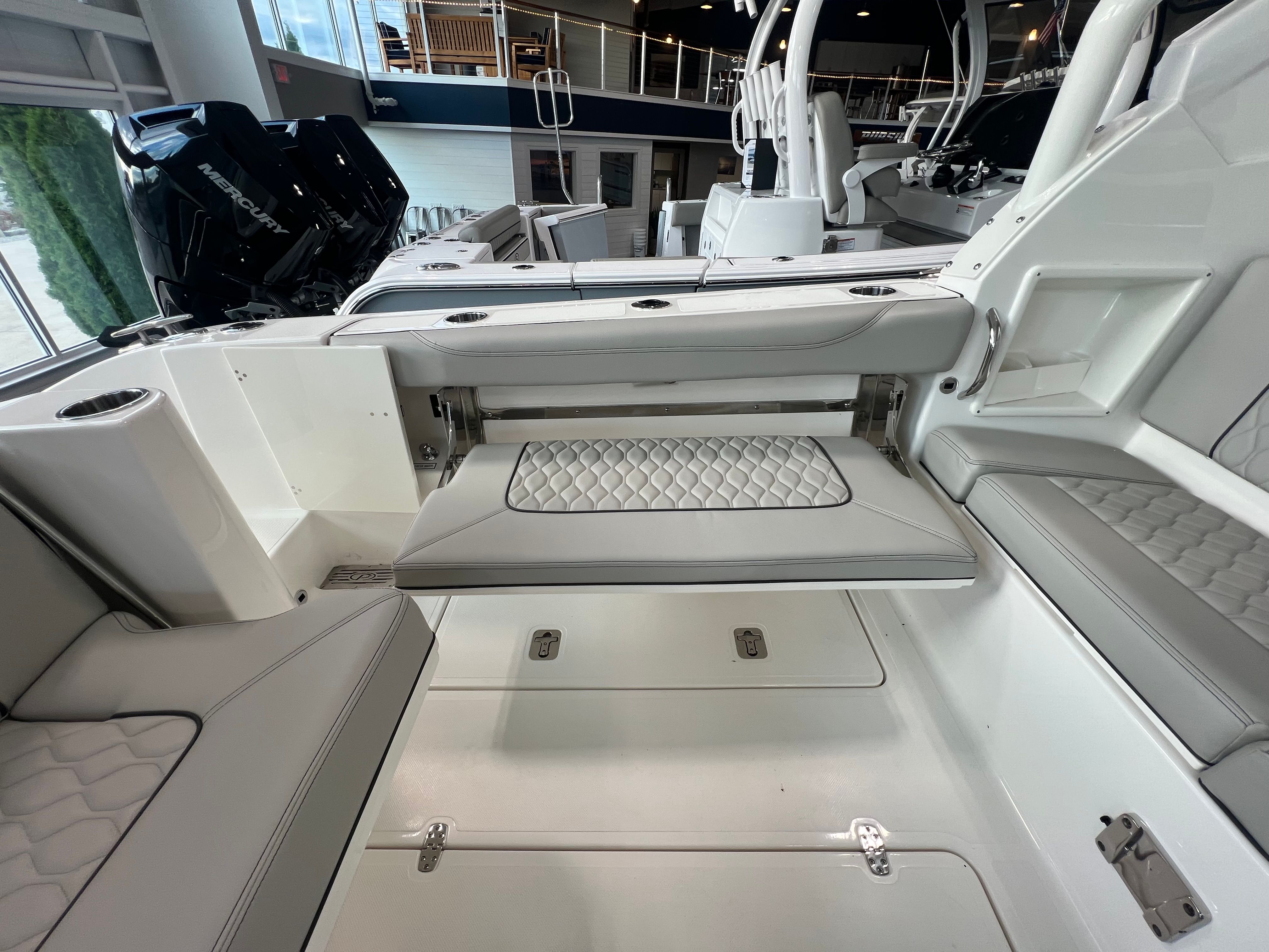 In summary, the 2026 Pursuit 326 DC is a standout Dual Console boat for sale that combines power, luxury, and versatility in one stunning package. With its twin 700-horsepower engines, advanced Garmin electronics, elegant teak table, custom retractable sunshade, and protective covers, this Pursuit boat for sale is designed to deliver exceptional experiences on the water. The spacious layout, innovative features, and practical benefits make it an ideal choice for boaters who demand the best in comfort, performance, and style. Don’t miss your chance to own this remarkable new boat—contact the dealer today to learn more and start your next adventure with the Pursuit 326 DC.