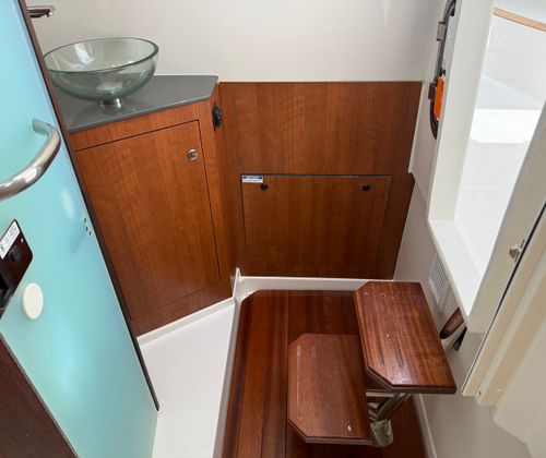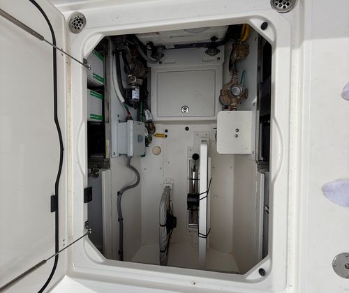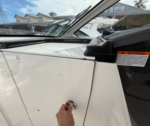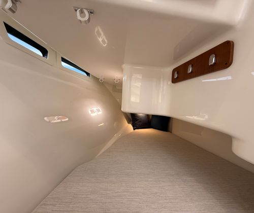 The Pursuit DC 365 is loaded with premium features designed to enhance your time on the water. The Fresh White hull with Black boot stripe and accent gives the boat a modern, elegant look, while the Carbon helm and footrest add a touch of sophistication to the command center. The interior, finished in Tranquil Sea, creates a serene atmosphere, perfect for unwinding after a day of adventure.Comfort is paramount, with a powerful 240V/60HZ 16,000 BTU air conditioning system in the cockpit, ensuring you and your guests stay cool even on the hottest days. Entertainment is elevated with an upgraded amp and speakers featuring zone control and Sirius, allowing you to set the perfect mood for any occasion. The forward poly table with sunpad filler and cushion provides a versatile space for dining, lounging, or sunbathing, while the bridgedeck teak table with storage adds a touch of luxury and practicality.Navigation and control are effortless thanks to the Garmin widescreen 16" display package, offering cutting-edge technology for chart plotting, fish finding, and system monitoring. Every feature is thoughtfully integrated to maximize convenience, safety, and enjoyment, making this Pursuit boat for sale a standout in its class.