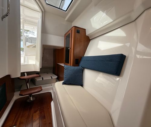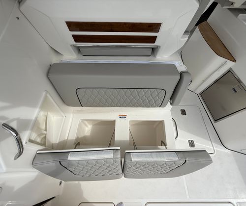The Pursuit DC 365 is as practical as it is luxurious. Its generous length and smart layout offer ample storage for gear, supplies, and personal items, keeping the deck clutter-free and organized. Docking is simplified by the boat’s responsive handling and advanced navigation systems, making it easy to maneuver in tight spaces or busy marinas.Fuel efficiency is enhanced by the modern Yamaha engines, allowing you to spend more time on the water and less time refueling. The integrated tables and storage solutions make entertaining effortless, while the air-conditioned cockpit ensures comfort during long days at sea. Whether you’re planning a fishing trip, a family picnic, or a sunset cruise, the DC 365 adapts to your needs, providing a seamless and enjoyable boating experience.