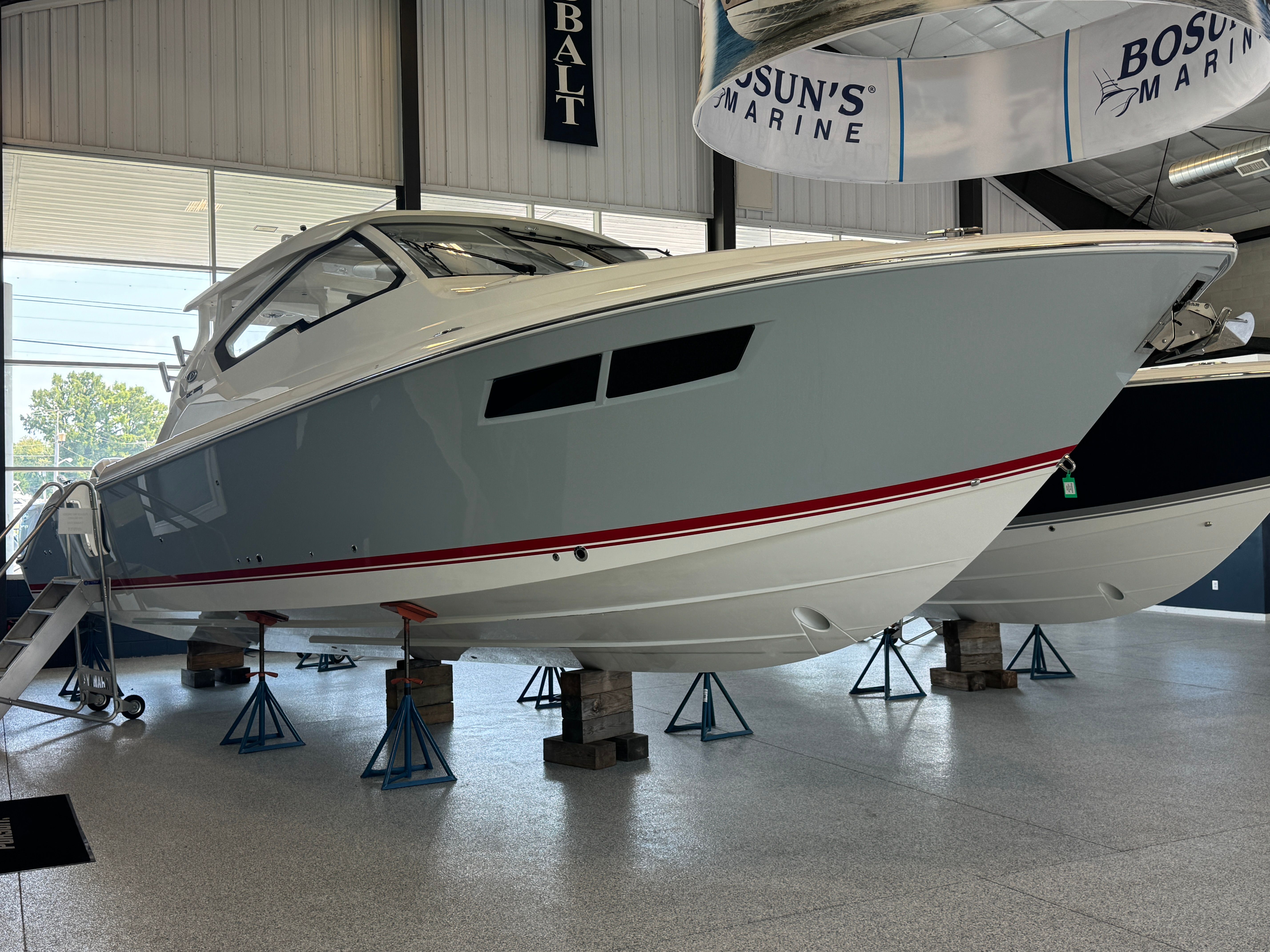 The 2026 Pursuit 365 DC is a stunning Dual Console boat that stretches an impressive 37.11 feet in length, offering ample space for relaxation, entertainment, and adventure. With its sleek lines, bold red bootstripe, and contemporary styling, this vessel commands attention at every marina and on every waterway. As a new boat, it boasts the latest in marine technology and design, ensuring you enjoy the very best that Pursuit has to offer. The 365 DC’s spacious layout is thoughtfully crafted to maximize comfort and functionality, making it an ideal choice for both seasoned boaters and newcomers alike.