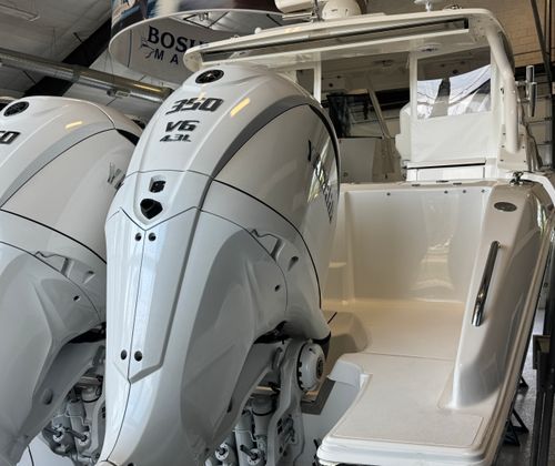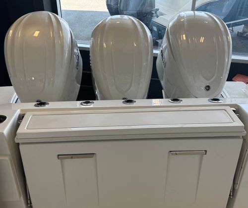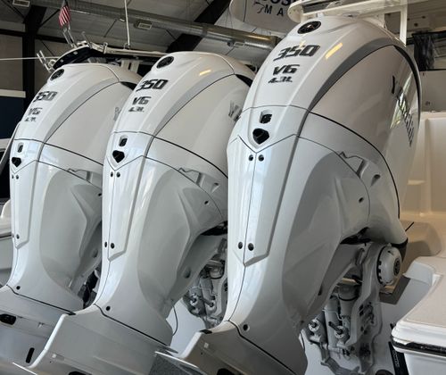 - Triple Yamaha F350 V6 Offshore (Pearlescent White) w/Integrated Digital Electric Steering (DES) and Helm Master EX Digital Electronic Control (DEC), and Yamaha Joystick Contol with Full Maneuverability (Set Point and Autopilot) and Multifunction Display Interface