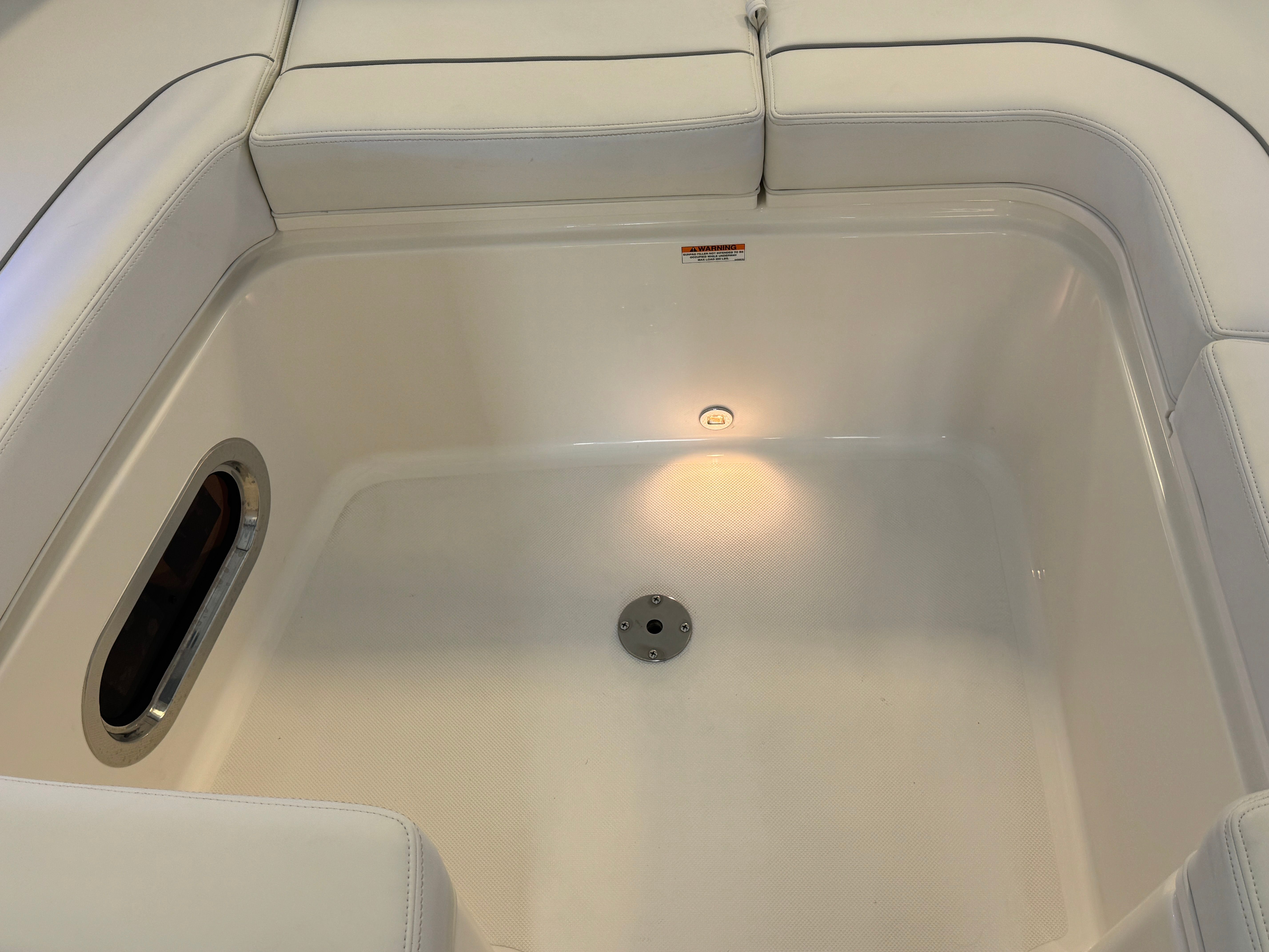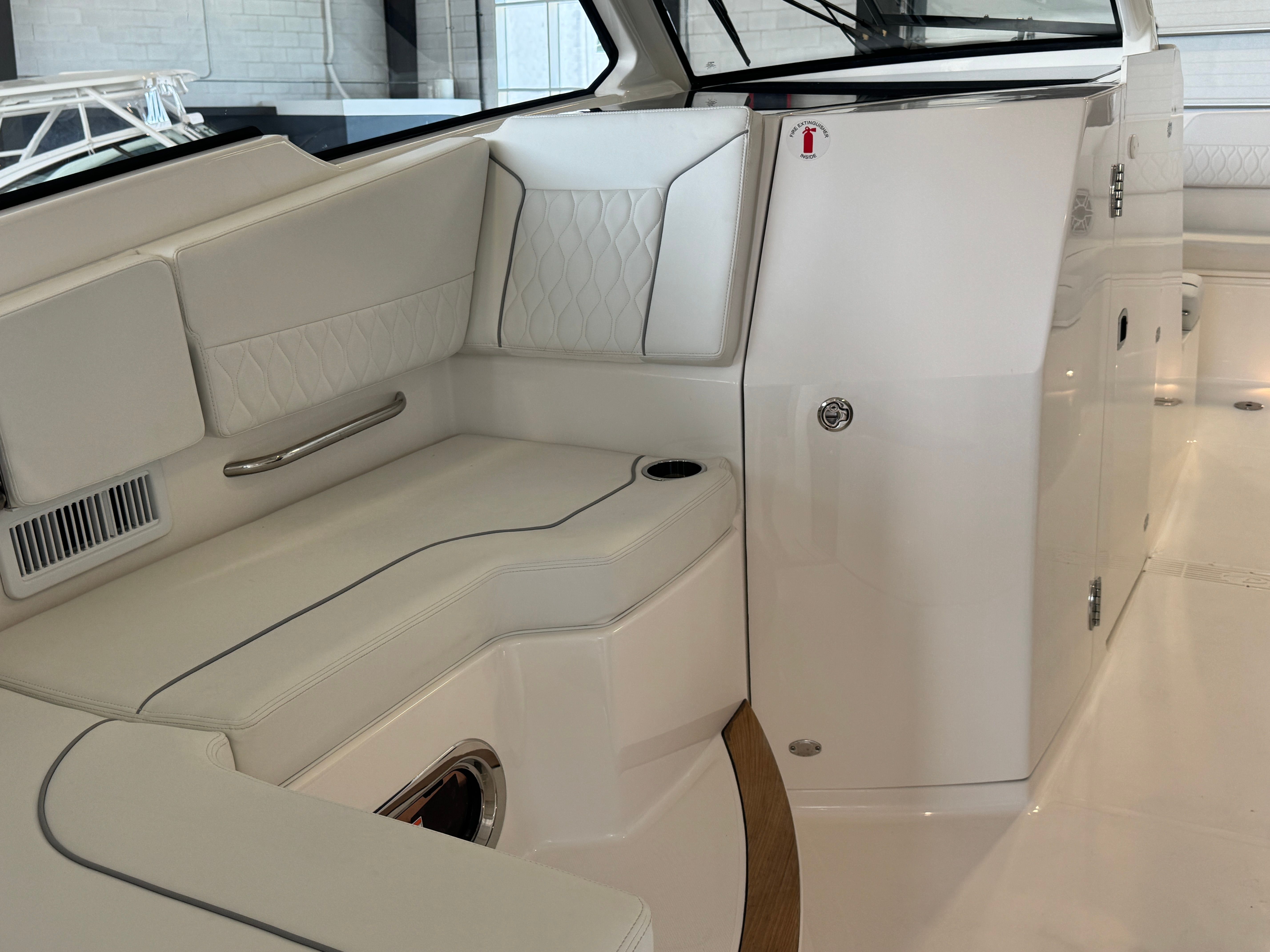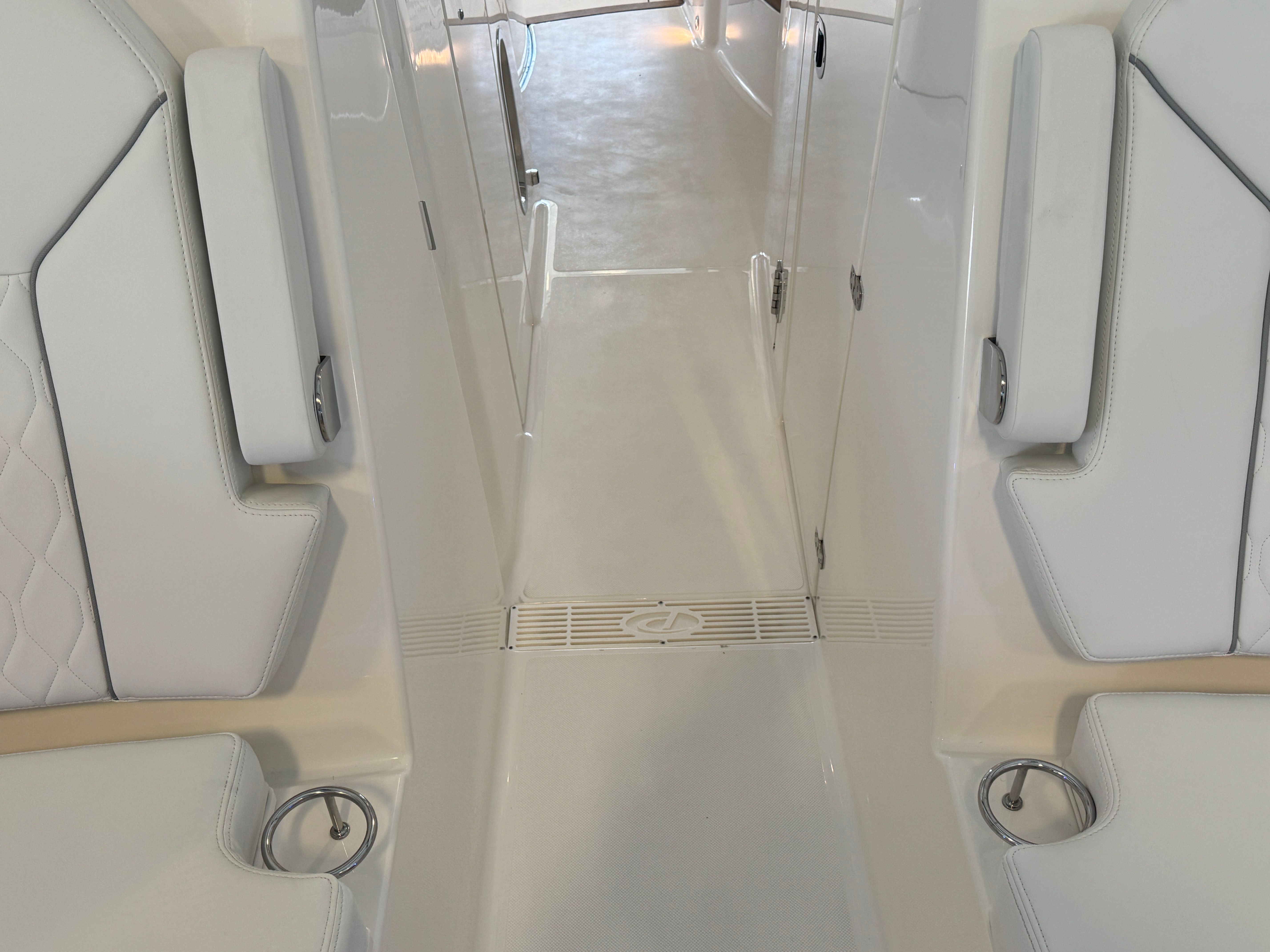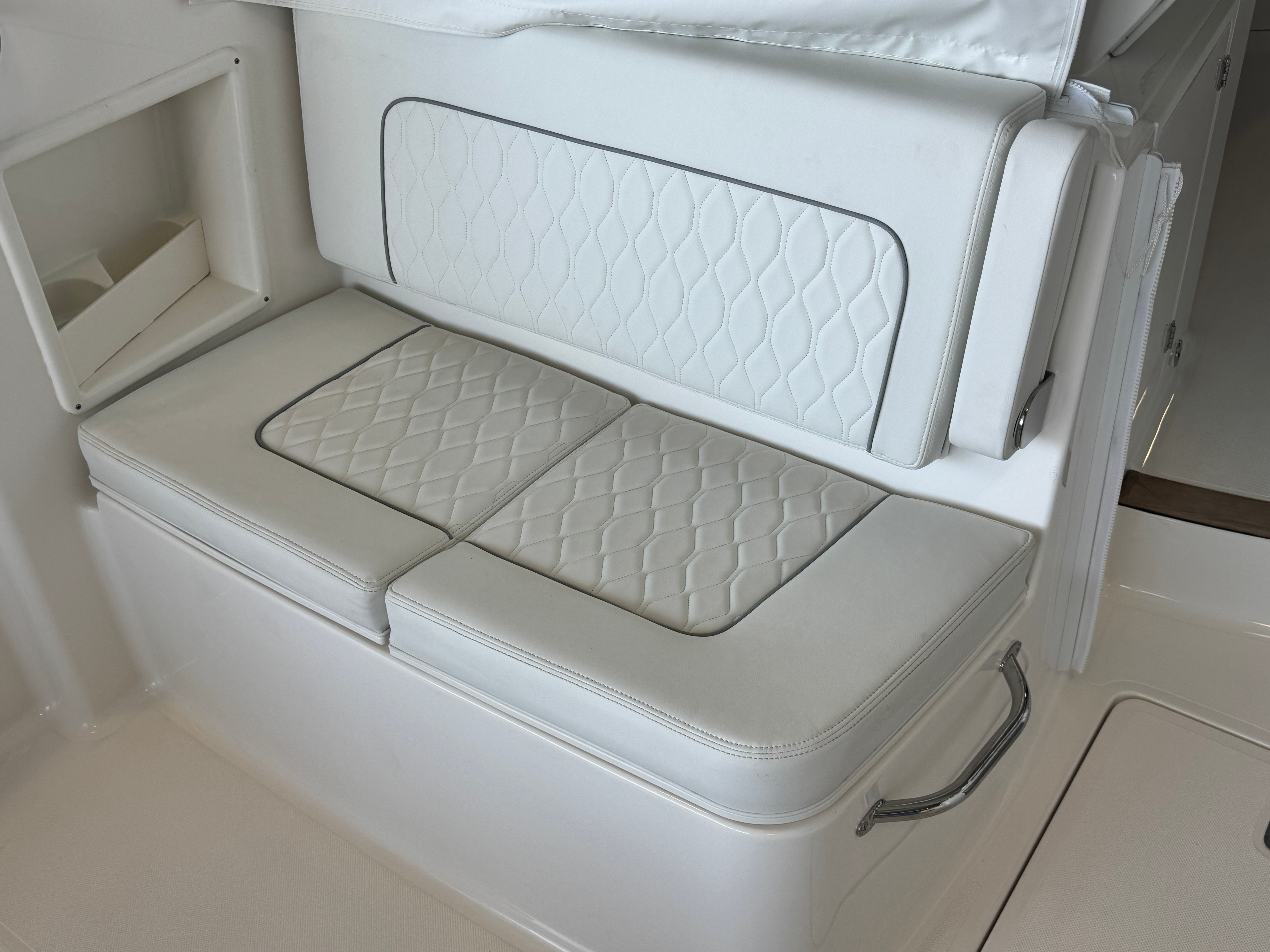 Practicality meets luxury in the Pursuit 365 DC. The boat’s generous length and smart layout provide ample storage for gear, water toys, and personal items, keeping your deck clutter-free and organized. Docking and maneuvering are simplified by the responsive triple-engine setup, allowing you to navigate marinas and tight spaces with confidence. The efficient design ensures you get the most out of every gallon of fuel, making longer trips more accessible and cost-effective.The air-conditioned cockpit extends your boating season, offering a cool retreat during summer and a cozy haven when the weather turns. The durable, easy-to-clean surfaces and protective covers help maintain the boat’s pristine appearance, reducing maintenance and preserving value over time. Whether you are planning a quick day trip or an extended adventure, the Pursuit 365 DC adapts to your needs, delivering both convenience and peace of mind.