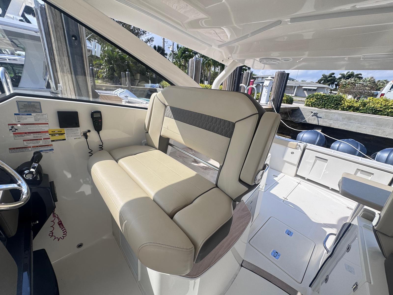 Practicality meets luxury in the Pursuit DC 365. The dual console configuration makes docking and maneuvering more intuitive, while the ample storage ensures that all your gear, from fishing tackle to water toys, is always within easy reach. The thoughtful design of the seating and deck areas allows for effortless movement around the boat, enhancing both safety and enjoyment.Fuel efficiency is another hallmark of the Pursuit DC 365, thanks to its advanced hull design and powerful yet economical engines. This means you can spend more time on the water and less time at the fuel dock, maximizing your enjoyment and minimizing operating costs. Whether you are planning a day trip or a weekend getaway, this dual console boat for sale is equipped to handle all your needs with ease.