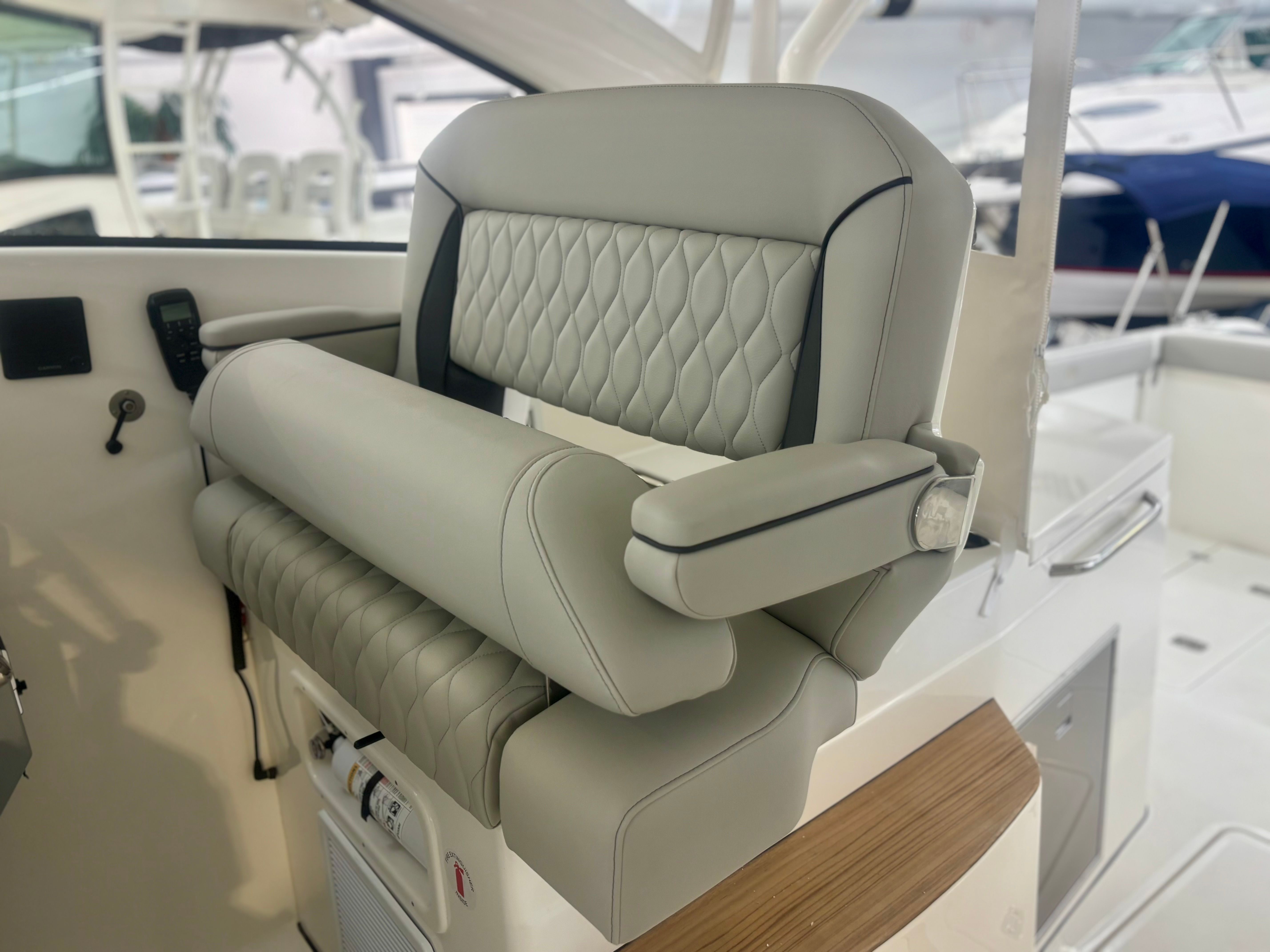 Owning the Pursuit DC 365 means embracing a lifestyle of fun, relaxation, and adventure. The spacious dual console layout is perfect for socializing, with plenty of seating and open areas for guests to mingle. The advanced air conditioning system and sunshades create a comfortable environment for all-day enjoyment, while the premium audio system sets the mood for any occasion.The triple Yamaha engines provide not only impressive speed and agility but also peace of mind with their reliability and advanced control systems. The joystick control and autopilot features make handling the boat intuitive, reducing stress and allowing you to focus on the fun. The SeaKeeper gyro stabilizer ensures everyone on board remains comfortable, even when the water gets rough, making it ideal for families and guests who may be new to boating.