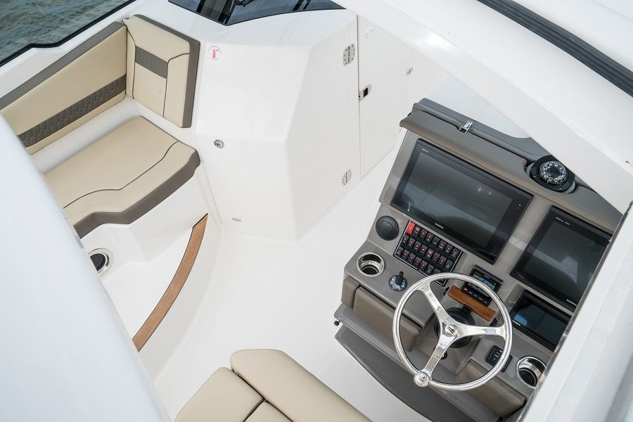 Power and precision are at the heart of the Pursuit DC 365. Equipped with triple Yamaha Pearl White F350 engines, this dual console boat boasts a combined 1,050 horsepower, delivering exhilarating speed and smooth handling. Whether you’re cruising along the coastline or heading offshore for a day of fishing, the DC 365’s advanced propulsion system ensures reliable performance and responsive maneuverability. The Seakeeper Gyro Stabilization System further elevates your boating experience by minimizing roll and providing unmatched stability, even in challenging conditions. This means you and your guests can enjoy a comfortable ride, no matter where your adventures take you.
