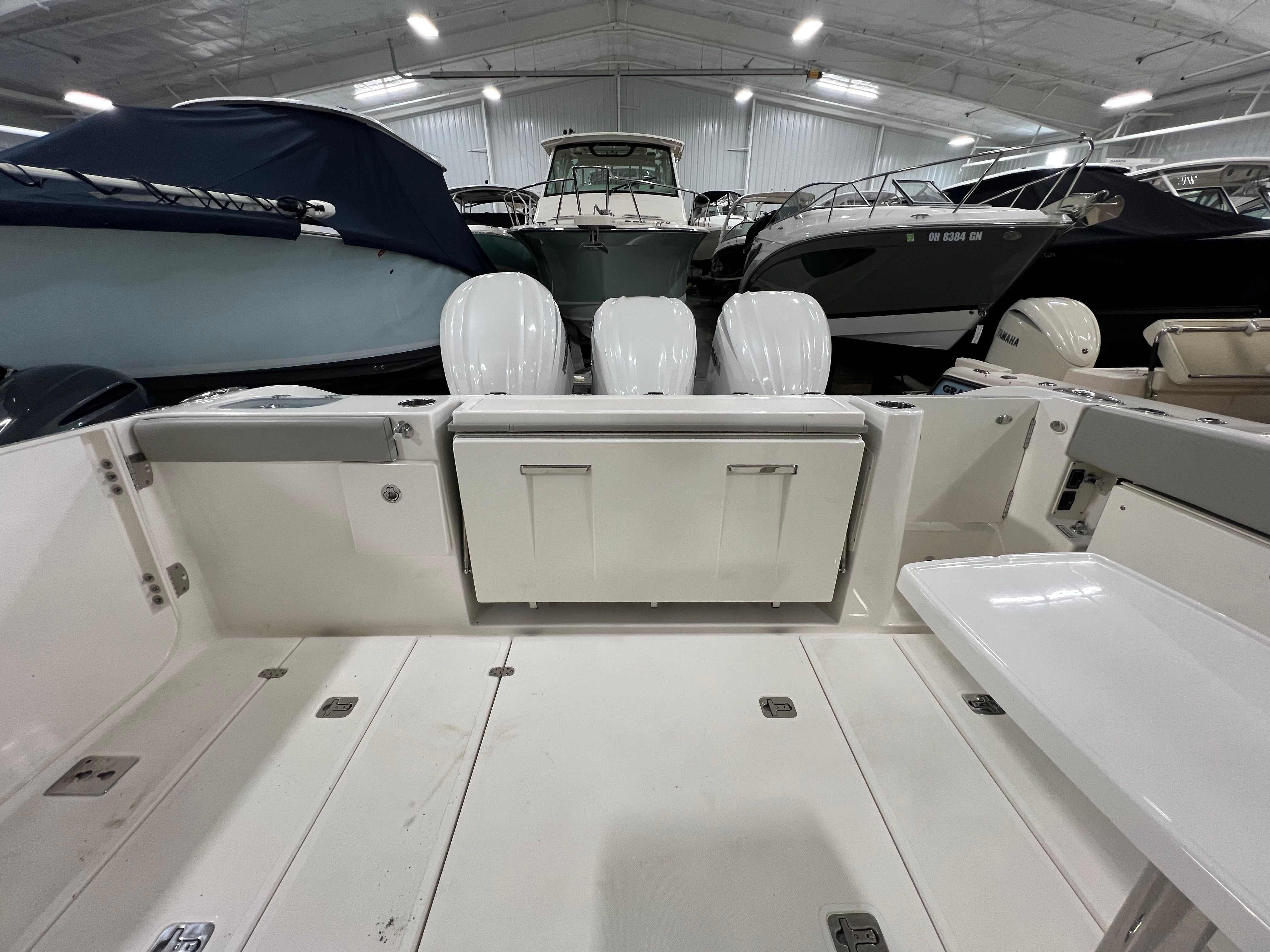 Power and precision define the performance of the Pursuit DC 365. Equipped with three powerful engines delivering a combined 900 horsepower, this Dual Console boat is engineered for exhilarating speed and smooth handling. With only 150 engine hours, these outboards offer reliability and plenty of life for future adventures. Whether you are cruising along the coastline, island hopping, or heading offshore for a day of fishing, the DC 365’s triple-engine setup ensures you have the thrust and agility to handle a wide range of conditions with confidence.