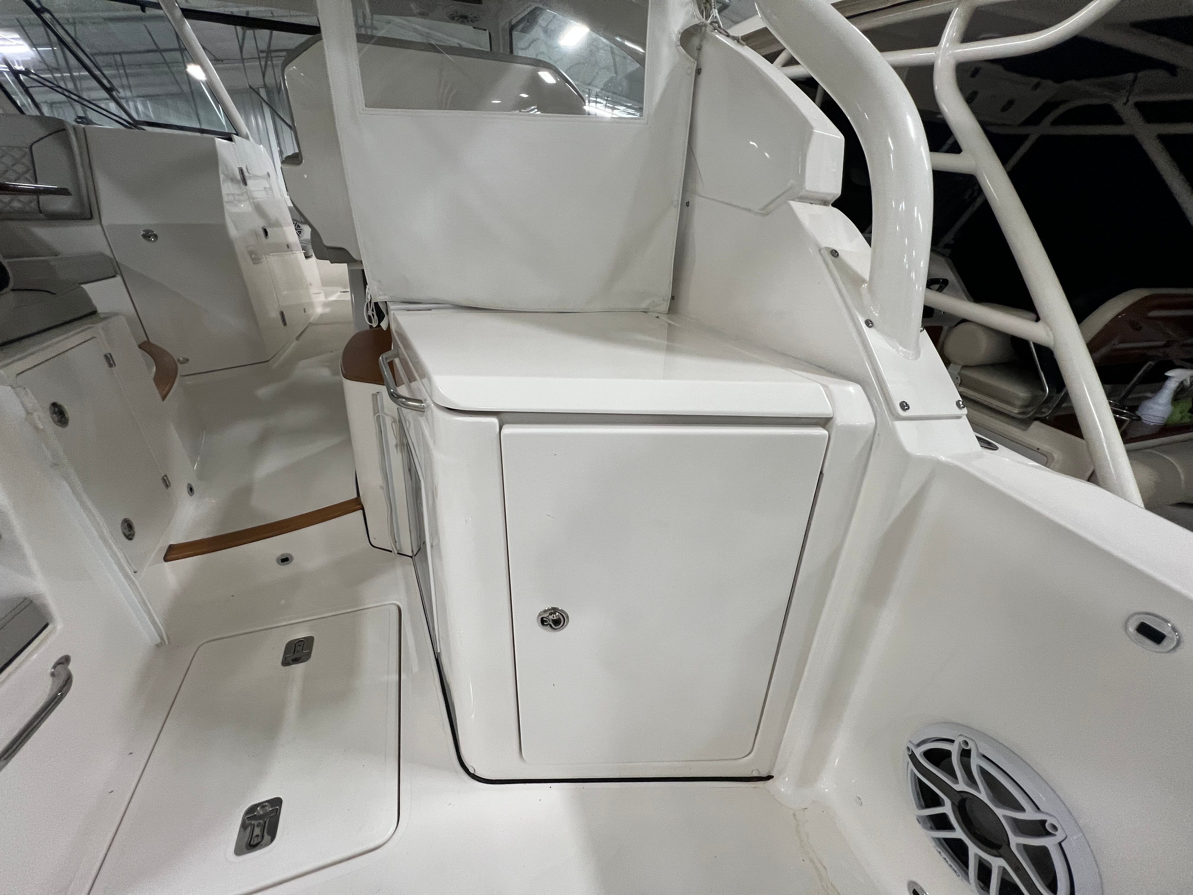 The Pursuit DC 365 is loaded with features that enhance comfort, convenience, and enjoyment on every outing. With six onboard batteries and a dedicated battery charger, you can count on reliable power for all your electronics and accessories. The aft bench seat provides a comfortable spot for guests to relax and take in the views, while the bow seating area is perfect for sunbathing or socializing at anchor.For those who love to entertain, the cockpit grill and wet bar transform the deck into a floating kitchen, allowing you to prepare and serve meals with ease. The double wide helm seat ensures that both captain and companion can enjoy the ride in comfort, while the hard top offers protection from the elements, extending your boating season and keeping everyone shaded on sunny days. Cockpit coaming bolsters add an extra layer of comfort and safety, especially during active pursuits like fishing or water sports.