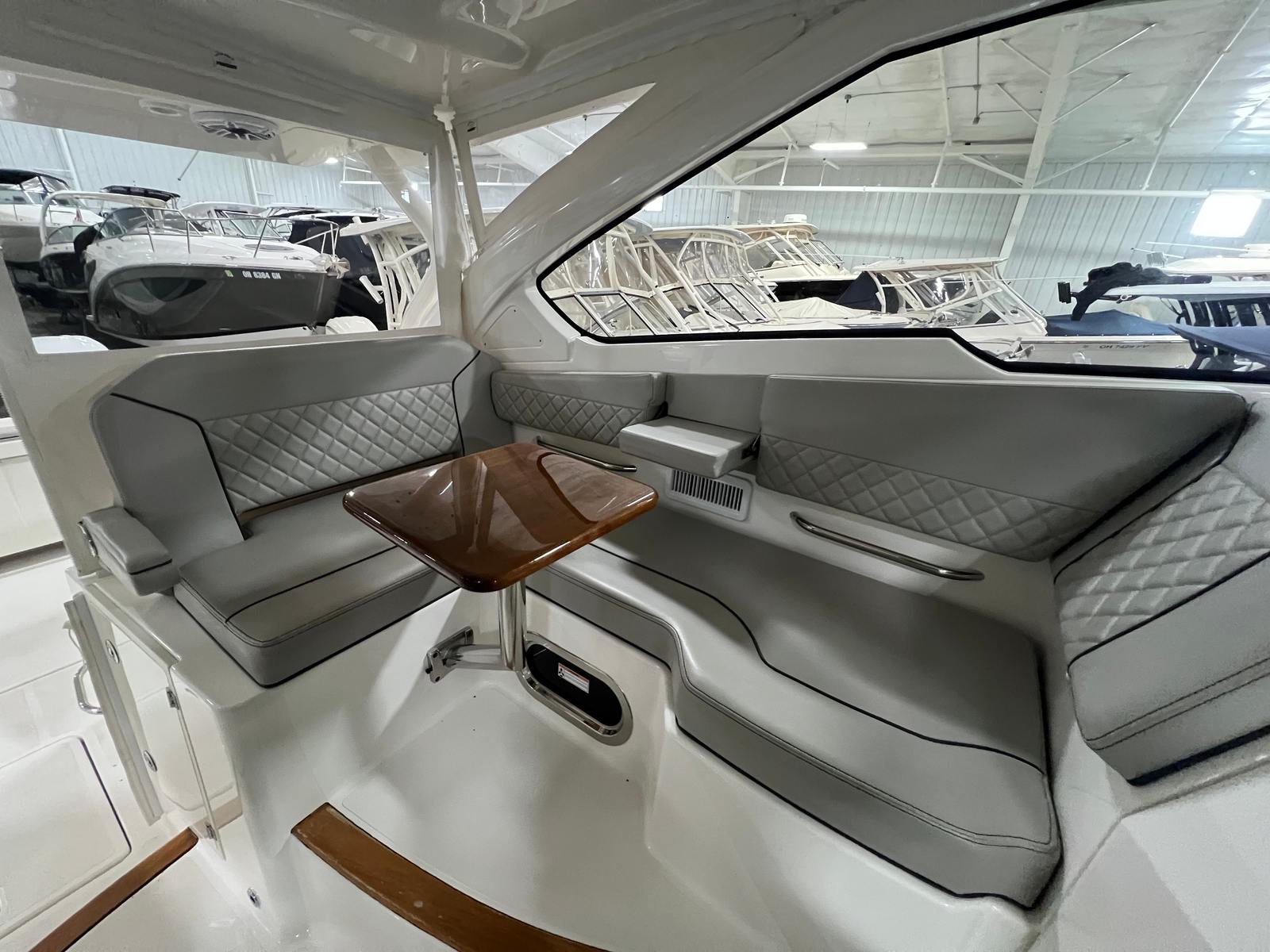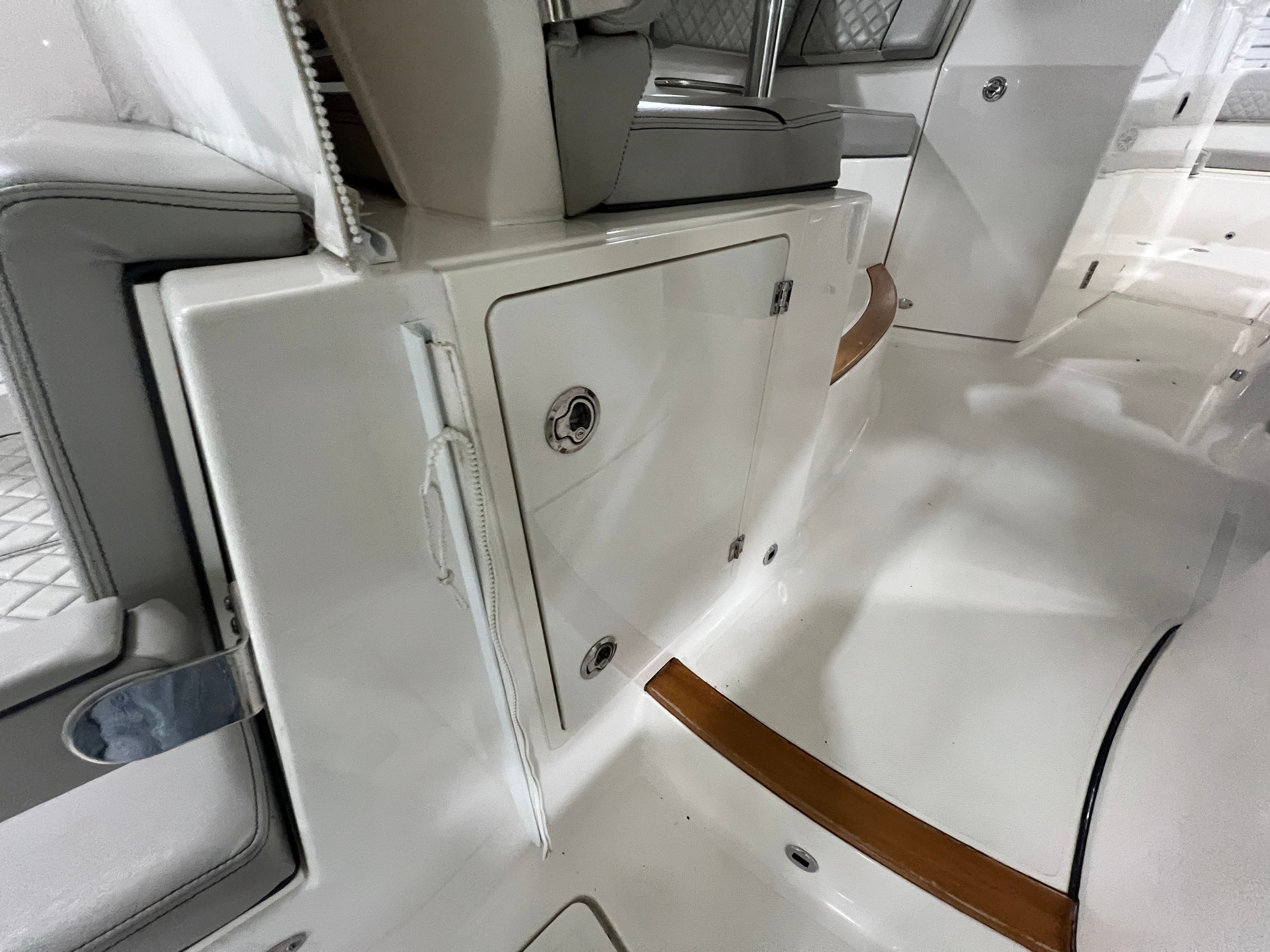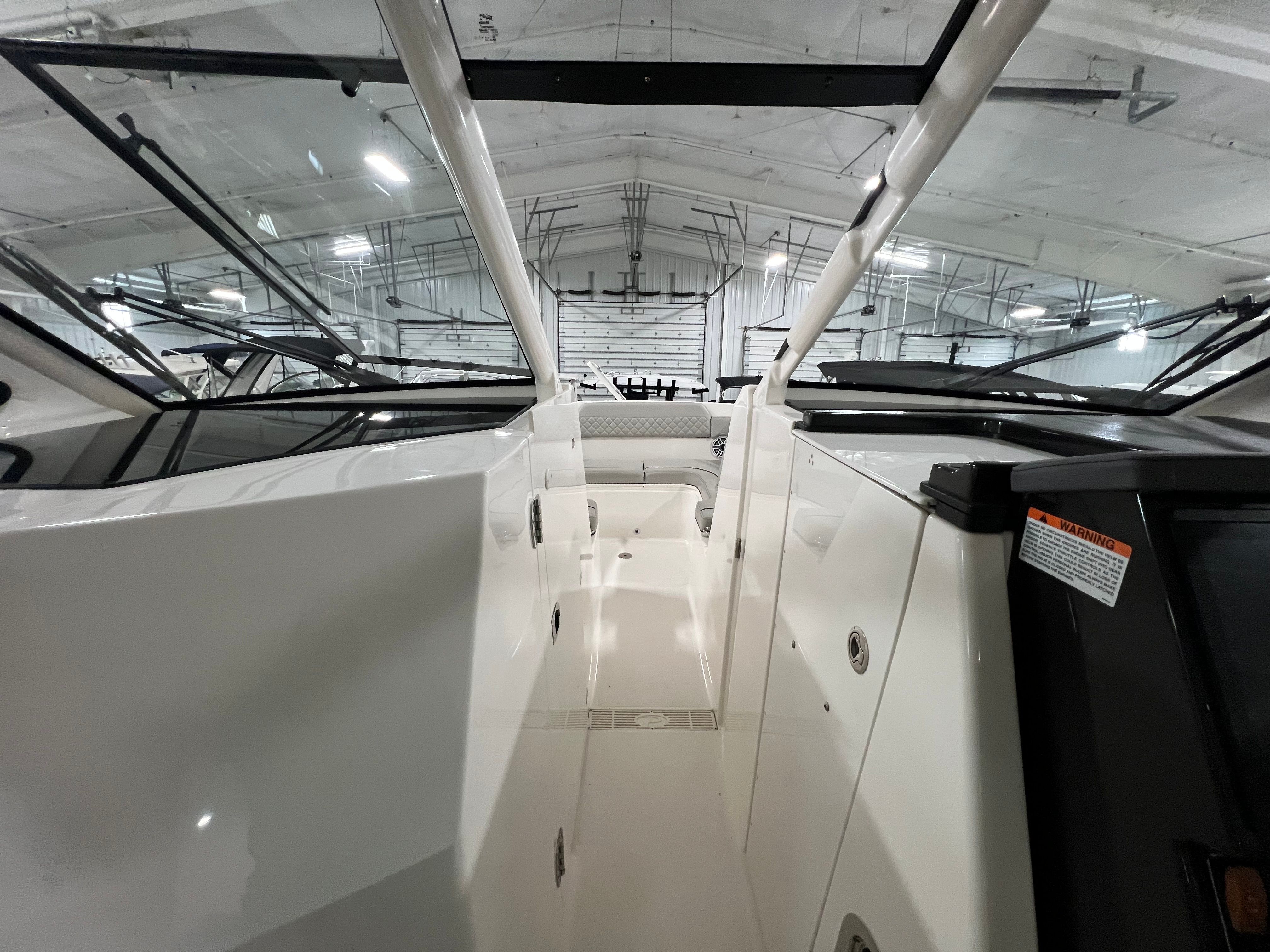 Practicality meets luxury in the Pursuit DC 365. The generous storage options throughout the boat make it easy to stow gear, water toys, and provisions for extended trips. The six-battery system and battery charger provide peace of mind, ensuring that your electronics, lighting, and entertainment systems are always ready to go.Docking and maneuvering are simplified by the boat’s responsive handling and powerful engines, making it a breeze to navigate marinas or tight waterways. The aft bench seat and bow seating offer flexible spaces for lounging or dining, while the cockpit coaming bolsters add safety and comfort during more active pursuits. The hard top not only shields you from the sun and rain but also supports additional accessories for fishing or navigation.