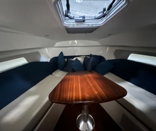 The Pursuit 325 OS is loaded with premium features designed to enhance your time on the water. For those who appreciate comfort in any climate, the cabin air conditioning with reverse cycle (10,000 BTU) and cockpit air conditioning with reverse cycle (12,000 BTU) ensure a pleasant environment, whether you are relaxing inside or entertaining guests on deck. The custom hardtop integrated electric retractable Makefast sunshade, operated with a simple one-touch mechanism, provides instant relief from the sun, allowing you to enjoy the outdoors in comfort.Aesthetically, the 325 OS is a showstopper with its black boot stripe and aft curtain, adding a touch of sophistication to its exterior. The three-piece drop curtain upgrade in white Stamoid material offers additional protection and style, ensuring you are prepared for changing weather conditions. The addition of the GMS 10 Expander for Garmin options enhances your navigation and electronics capabilities, making every journey safer and more enjoyable.Onboard, the bridgedeck teak table and fiberglass cockpit table, both with dedicated storage, offer versatile spaces for dining, socializing, or simply unwinding with a view. The folding gunwale seat on the starboard side maximizes seating options while maintaining a clean, uncluttered deck layout. These thoughtful touches make the Pursuit 325 OS a standout among cruiser boats for sale, offering both practicality and luxury.