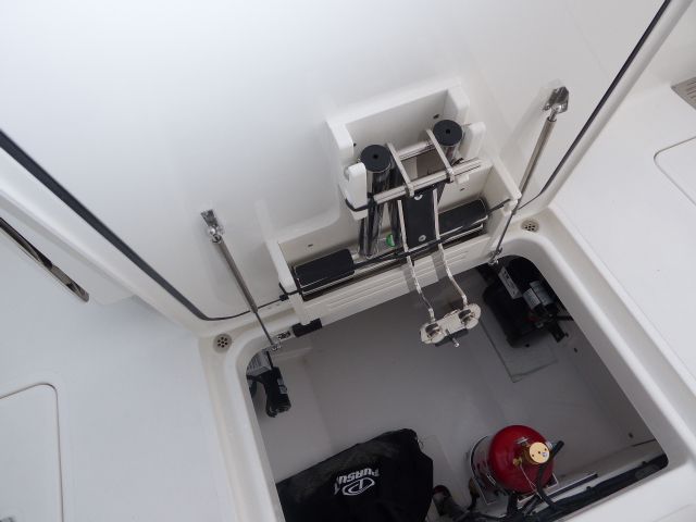 The Pursuit OS 325 is as practical as it is luxurious. Dedicated storage solutions throughout the boat keep your gear organized and out of the way, making it easy to maintain a tidy and functional space. The generator ensures you have reliable power for air conditioning, electronics, and other amenities, even when anchored far from shore. The manual engine flushing system simplifies maintenance, helping you protect your investment and maximize engine life.Docking and maneuvering are effortless thanks to the integrated digital steering and control systems, allowing you to handle the boat with precision in tight spaces. The folding gunwale seat adds flexibility to your seating arrangements, while the hardtop-mounted rod holders and outriggers make it easy to transition from cruising to fishing at a moment’s notice. With its efficient layout and advanced systems, the OS 325 is designed to make ownership as enjoyable and stress-free as possible.