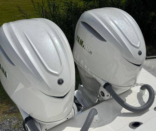 - Twin Yamaha® Digital F350 V6 Offshore (Pearlescent White) w/Integrated Digital Electric Steering (DES) and Helm Master® EX Digital Electronic Control (DEC) (does not include joystick control), Multifunction Display Interface and Manual Engine Flushing System