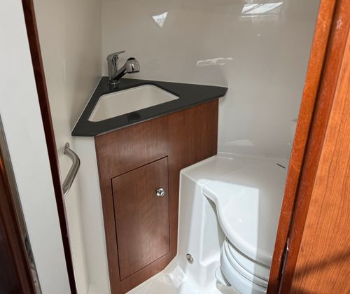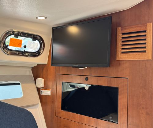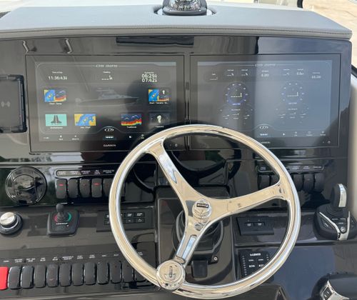 Step aboard the Pursuit 325 OS and discover a world of premium amenities designed to enhance your boating experience. The helm is equipped with a 2NDGARMIN® WIDESCREEN 16" DISPLAY, providing intuitive navigation and real-time data at your fingertips. For expanded functionality, the ADD GMS™ 10 EXPANDER FOR GARMIN® OPTS ensures seamless integration of your electronics, keeping you connected and informed wherever you go.Comfort is paramount on this cruiser, with both cabin and cockpit air conditioning featuring reverse cycle systems (10,000 BTU in the cabin and 12,000 BTU in the cockpit) for year-round climate control. The custom hardtop boasts an integrated electric retractable Makefast sunshade with one-touch operation, allowing you to effortlessly adjust your environment to suit your mood and the weather.Entertaining is a breeze thanks to the Bridgedeck Teak Table with dedicated storage and a fiberglass cockpit table, also with its own storage space. These elegant additions provide the perfect setting for alfresco dining, socializing, or simply enjoying the view. The folding gunwale seat on the starboard side offers flexible seating options, while the upgraded 3 Piece Drop Curtain and Aft Curtain in Stamoid (White) add a touch of sophistication and protection from the elements.