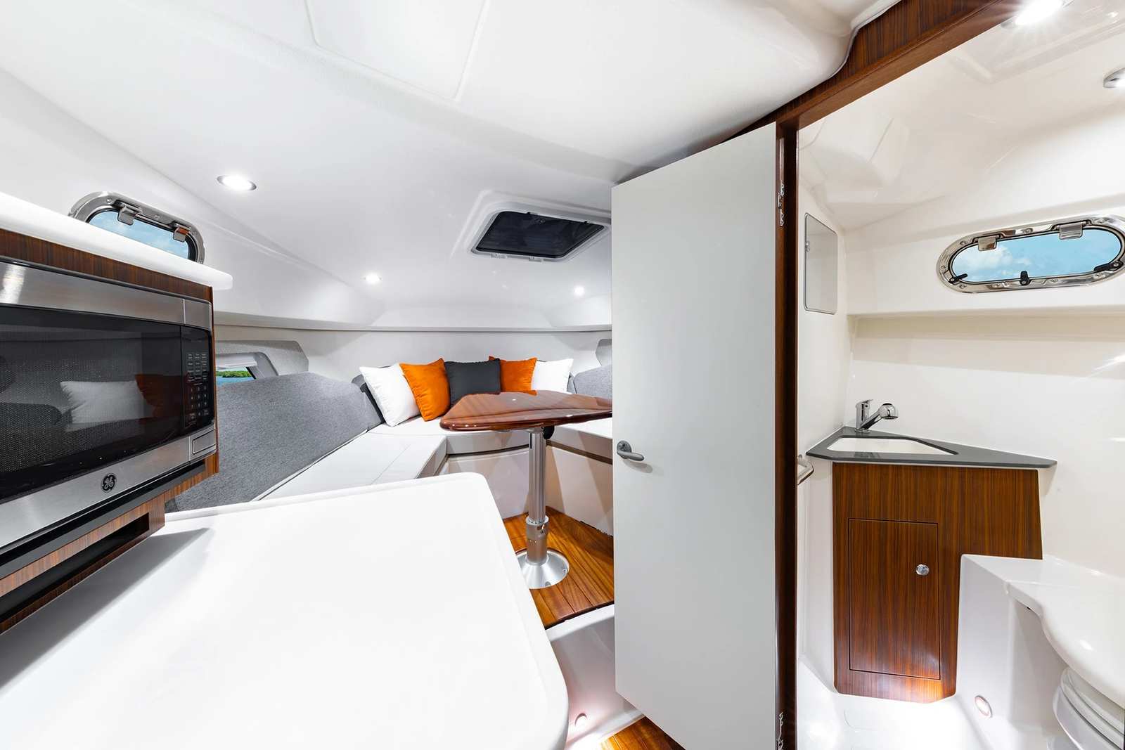 Owning the Pursuit OS 325 Cruiser is all about embracing the joys of boating. The spacious layout invites you to relax with friends and family, whether you’re sunbathing on deck or enjoying a meal in the comfortable cabin. The advanced air conditioning systems keep everyone cool and comfortable, while the tranquil interior design creates a welcoming atmosphere for socializing or simply escaping the hustle and bustle of everyday life.The powerful twin engines and intuitive maneuverability system make every journey smooth and enjoyable, allowing you to focus on the fun rather than the logistics. The underwater lights not only enhance safety but also create a captivating ambiance for evening gatherings or romantic getaways. With its blend of luxury and practicality, the OS 325 is designed to maximize your enjoyment on the water.