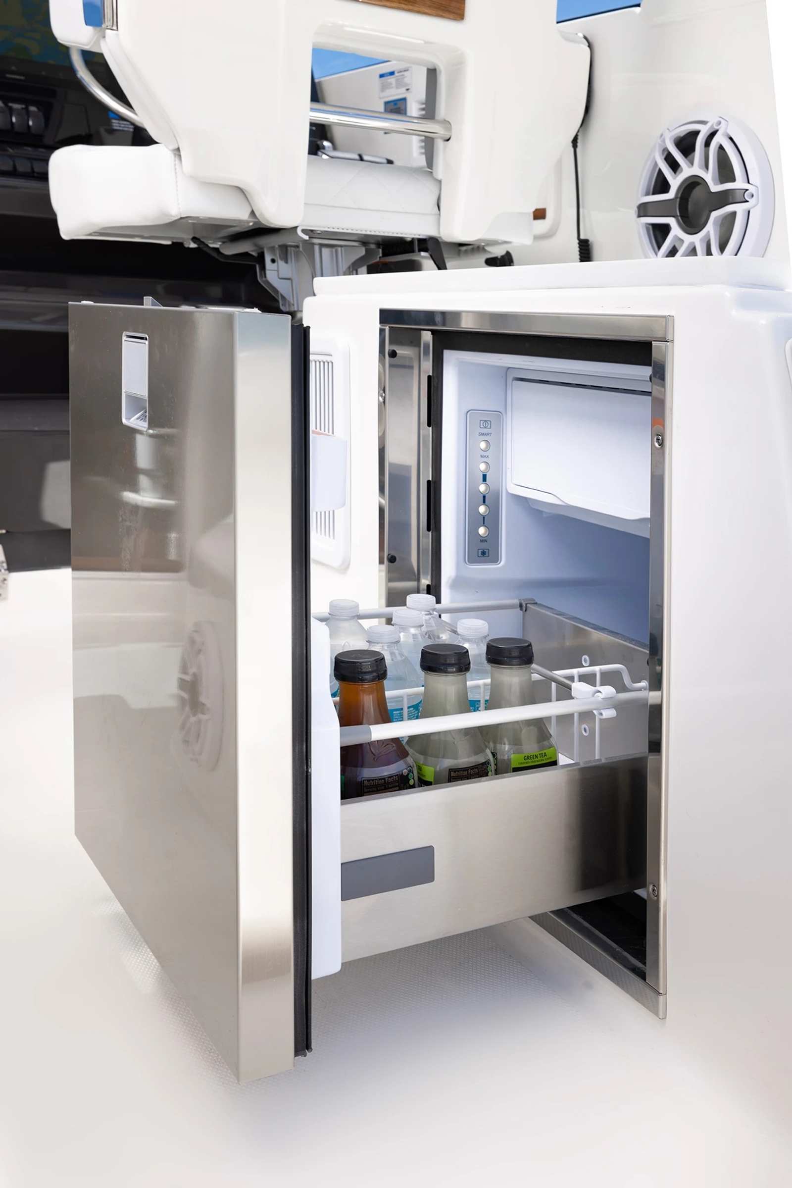 Powering the Pursuit OS 325 are twin Yamaha Pearlescent White F350 engines, delivering a combined 700 horsepower. This dynamic duo ensures exhilarating acceleration, smooth cruising, and reliable handling in a variety of conditions. The Helm Master Full Maneuverability system provides precise control, making docking and navigating tight spaces effortless. Whether you’re slicing through open waters or gliding into a marina, the OS 325’s performance capabilities are engineered to impress even the most discerning boaters.