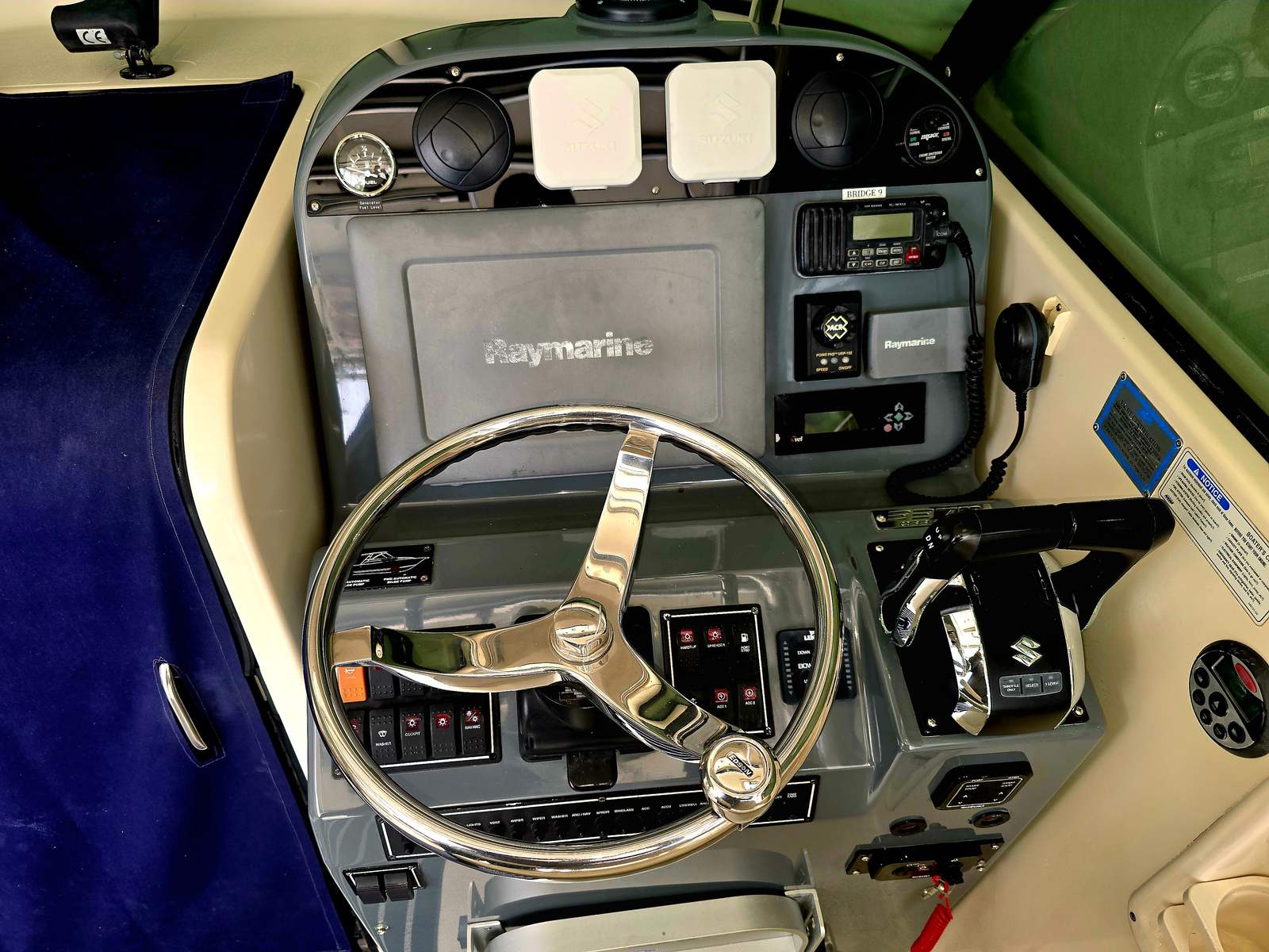 The boat was repowered in the fall of 2023 with Suzuki 250’s with digital controls.