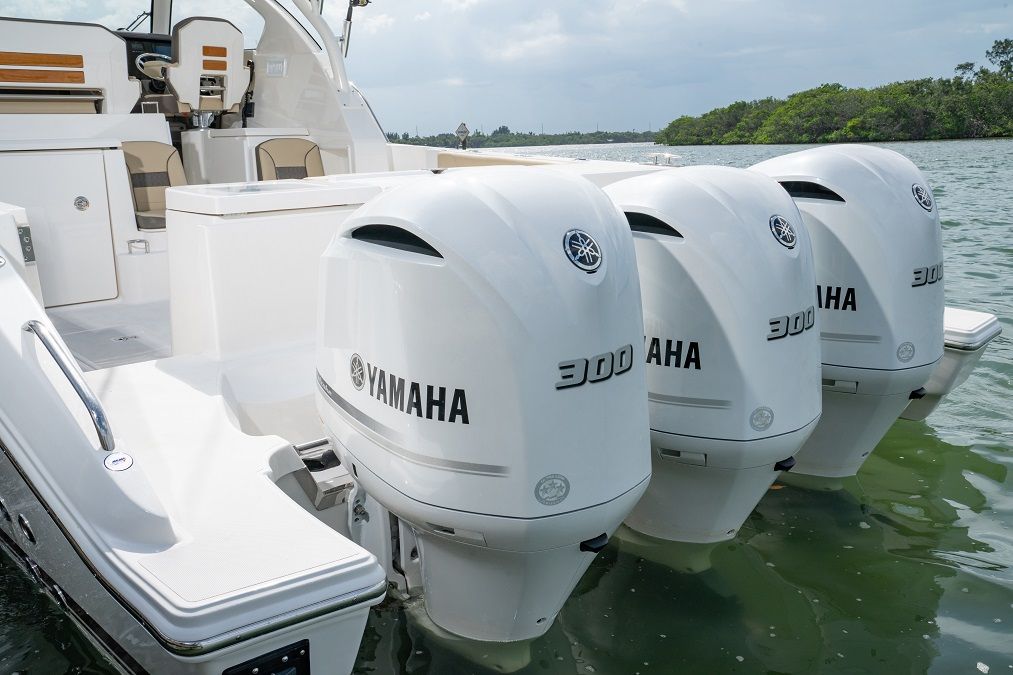 Power and precision are at the heart of the Pursuit OS 355. This cruiser is equipped with triple Yamaha F350 engines, delivering a combined 1,050 horsepower. This impressive setup ensures exhilarating acceleration, smooth cruising, and reliable performance in a variety of conditions. Whether you are navigating coastal waters or heading offshore, the OS 355 offers the confidence and agility you need for both leisurely cruises and high-speed adventures. The triple engine configuration not only enhances speed but also provides superior handling and maneuverability, making docking and tight turns effortless.