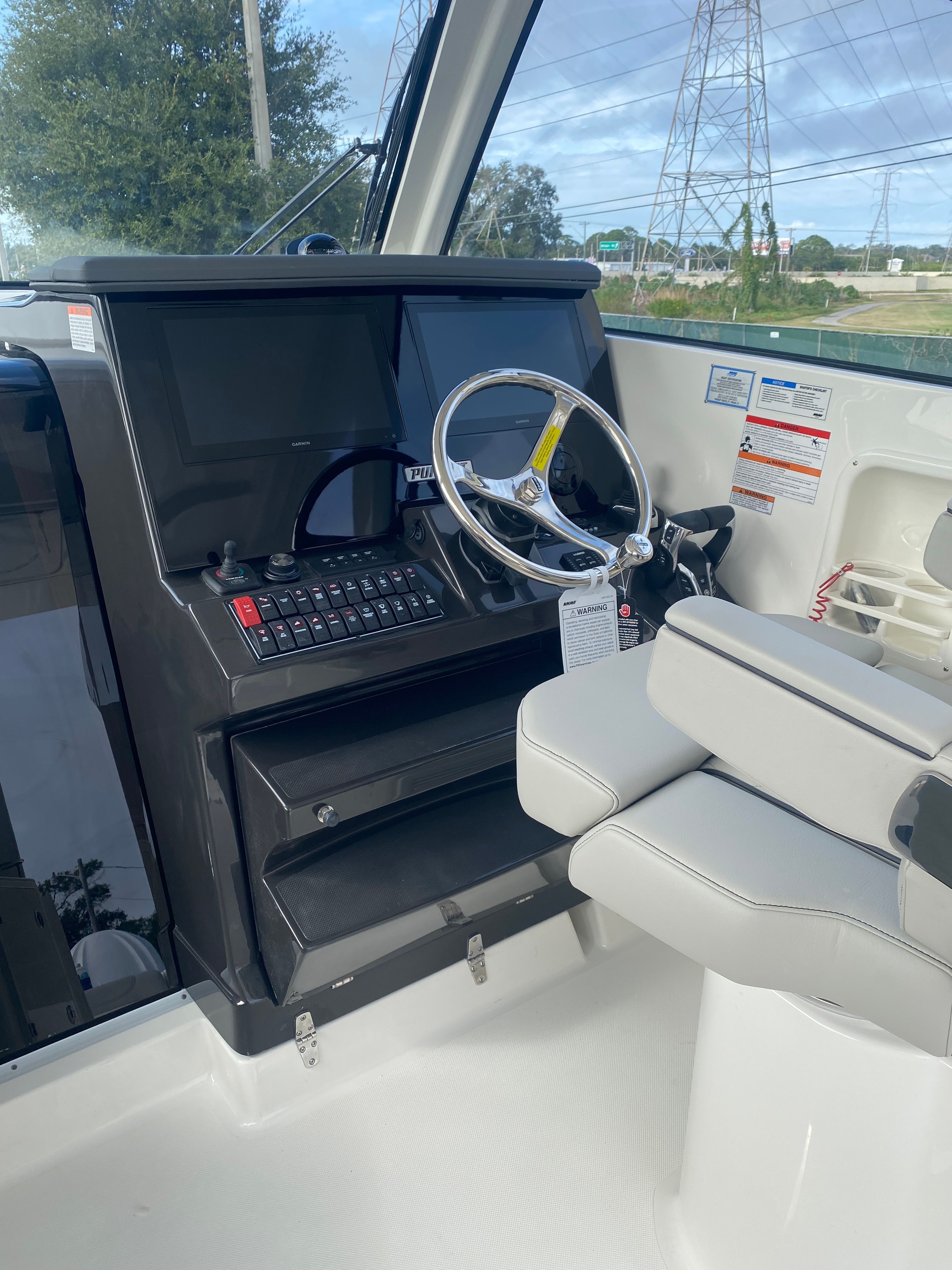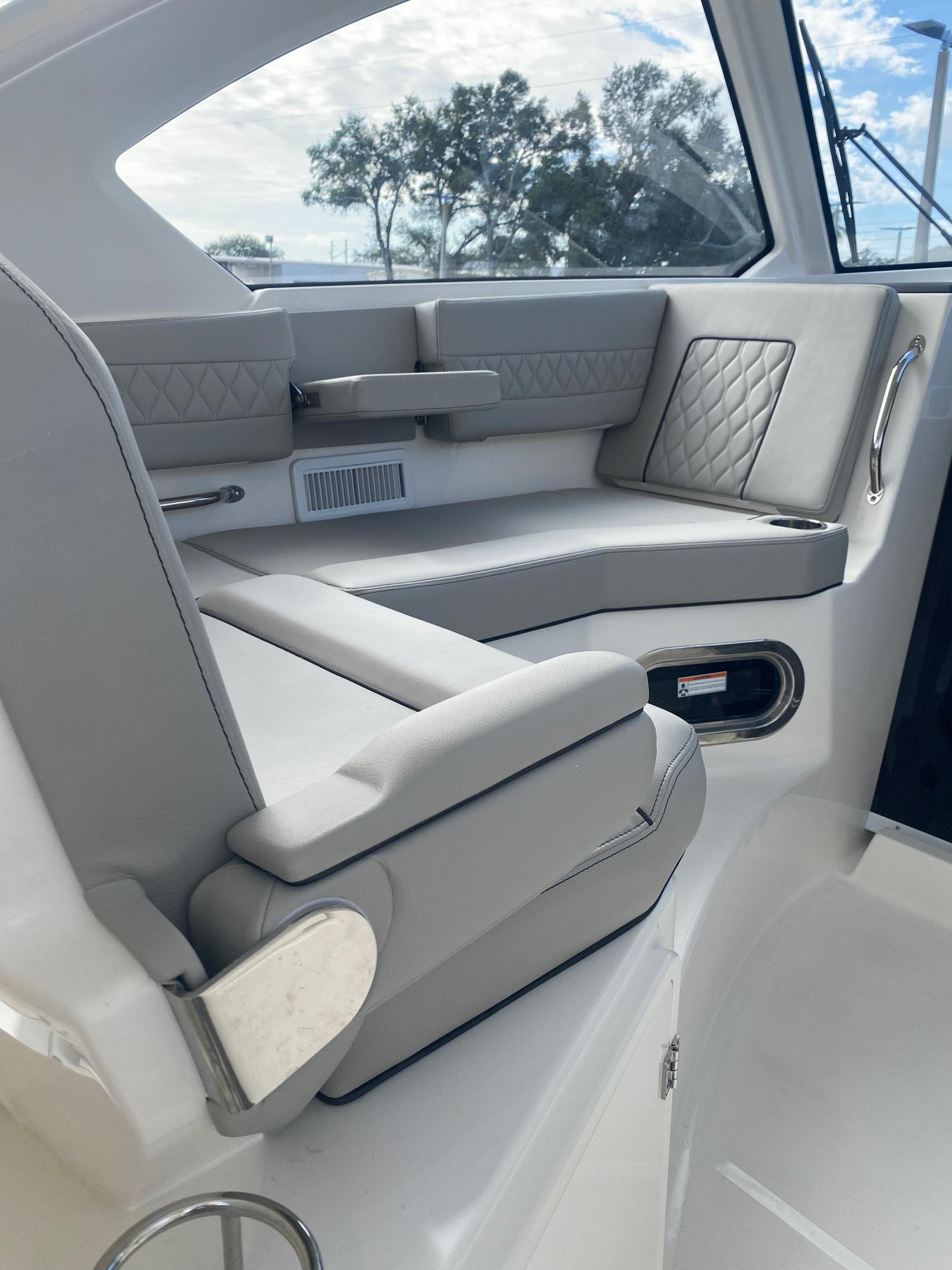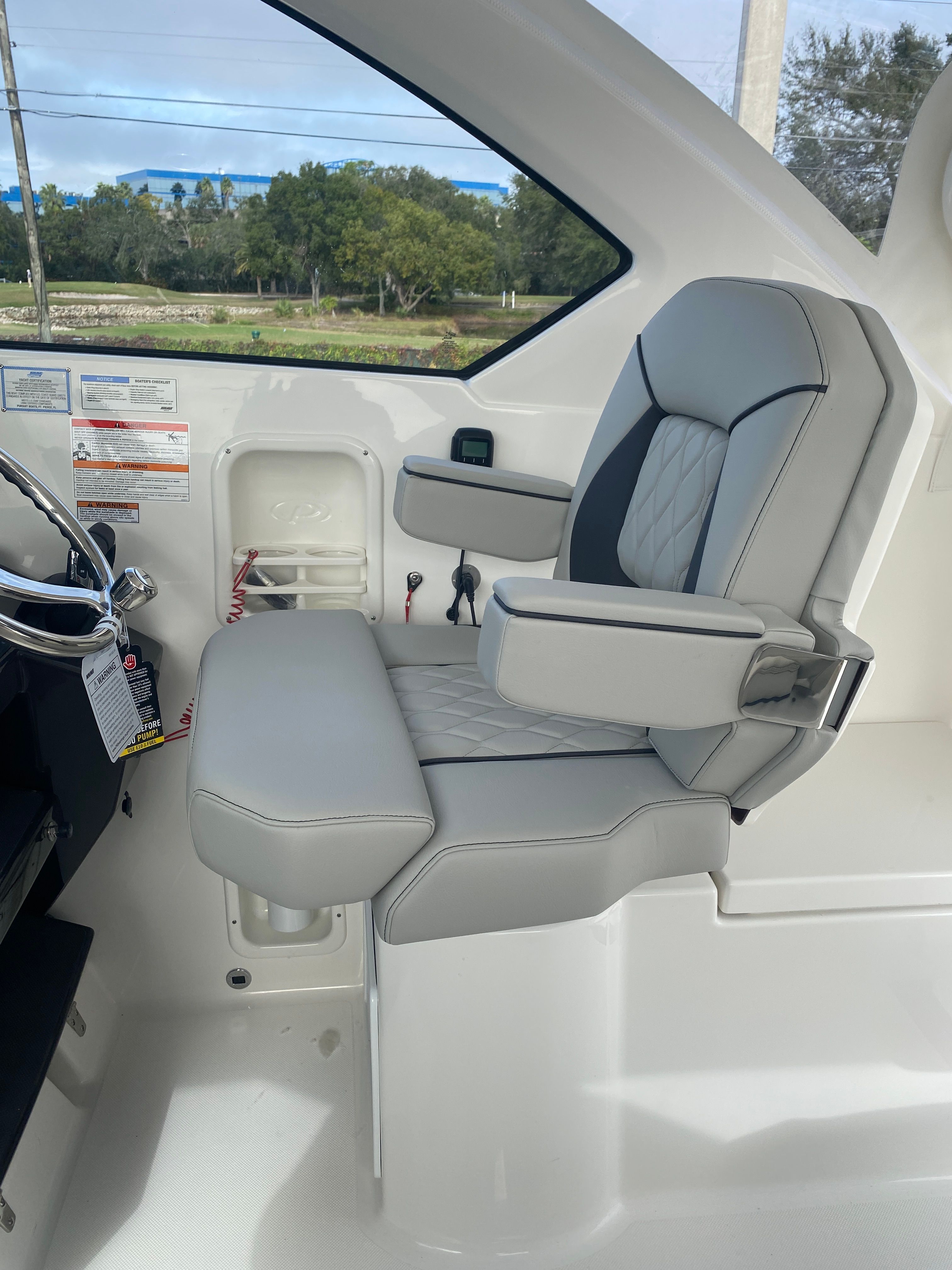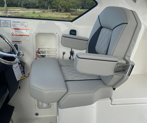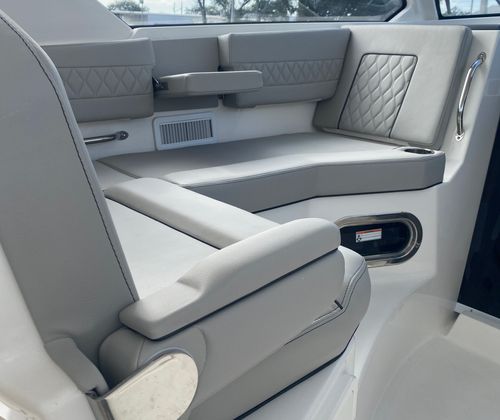 Owning the Pursuit OS 355 Cruiser means embracing a lifestyle of luxury, comfort, and adventure. The spacious layout and premium finishes create an inviting environment for relaxation and socializing, whether you’re hosting a sunset cocktail party or enjoying a quiet morning on the water. The advanced climate control system ensures year-round comfort, while the retractable sunshade lets you tailor your outdoor experience to suit your preferences. With dedicated storage for tables and other amenities, you’ll appreciate the organized and clutter-free living spaces that make every outing enjoyable.The triple Yamaha engines provide not only impressive speed but also the confidence to explore farther and faster. Whether you’re cruising along the coast or heading out for a weekend getaway, the OS 355’s performance capabilities open up a world of possibilities. The integrated spotlight enhances safety, allowing you to navigate with ease after dark and ensuring your adventures are never limited by daylight hours.