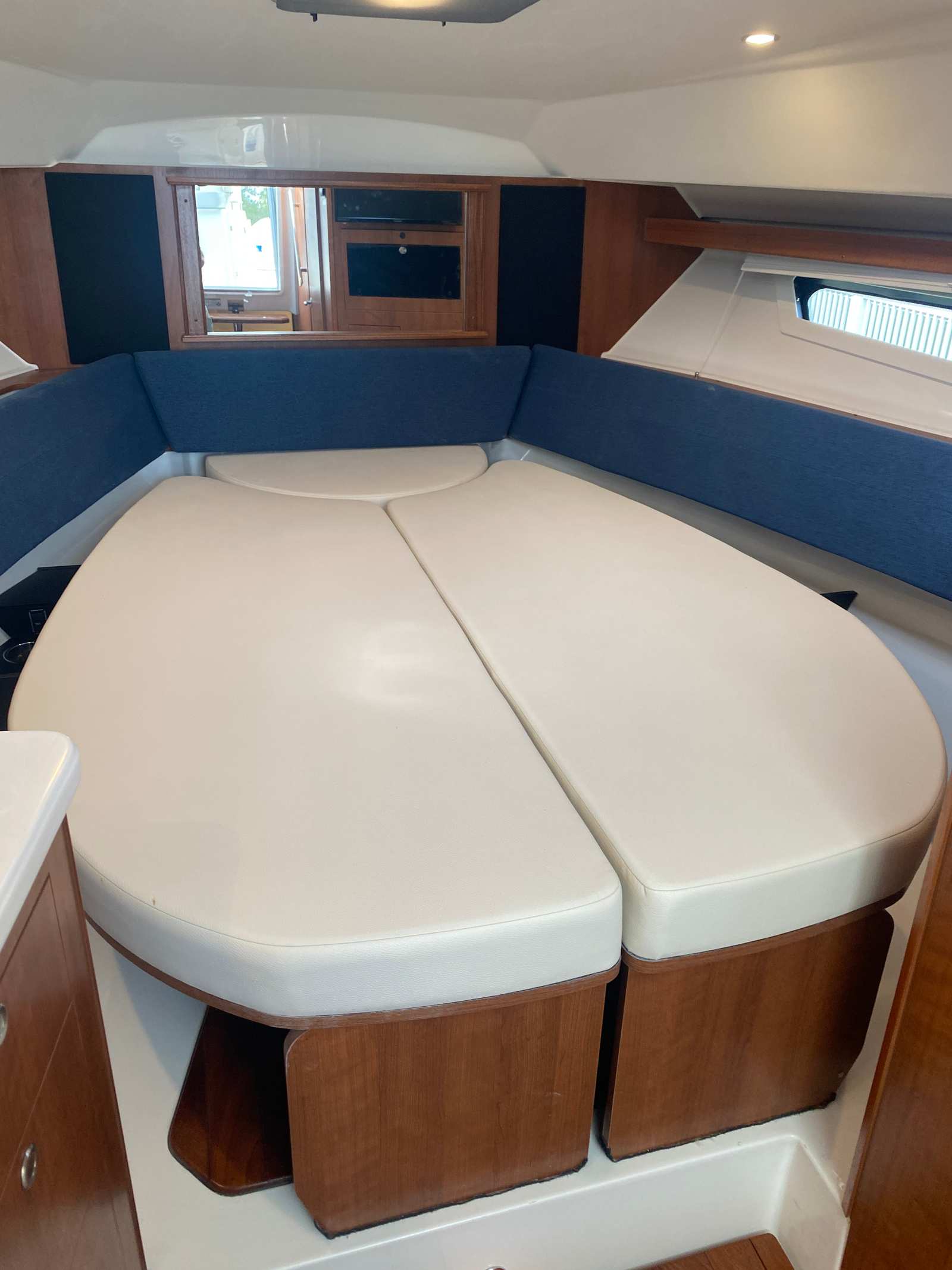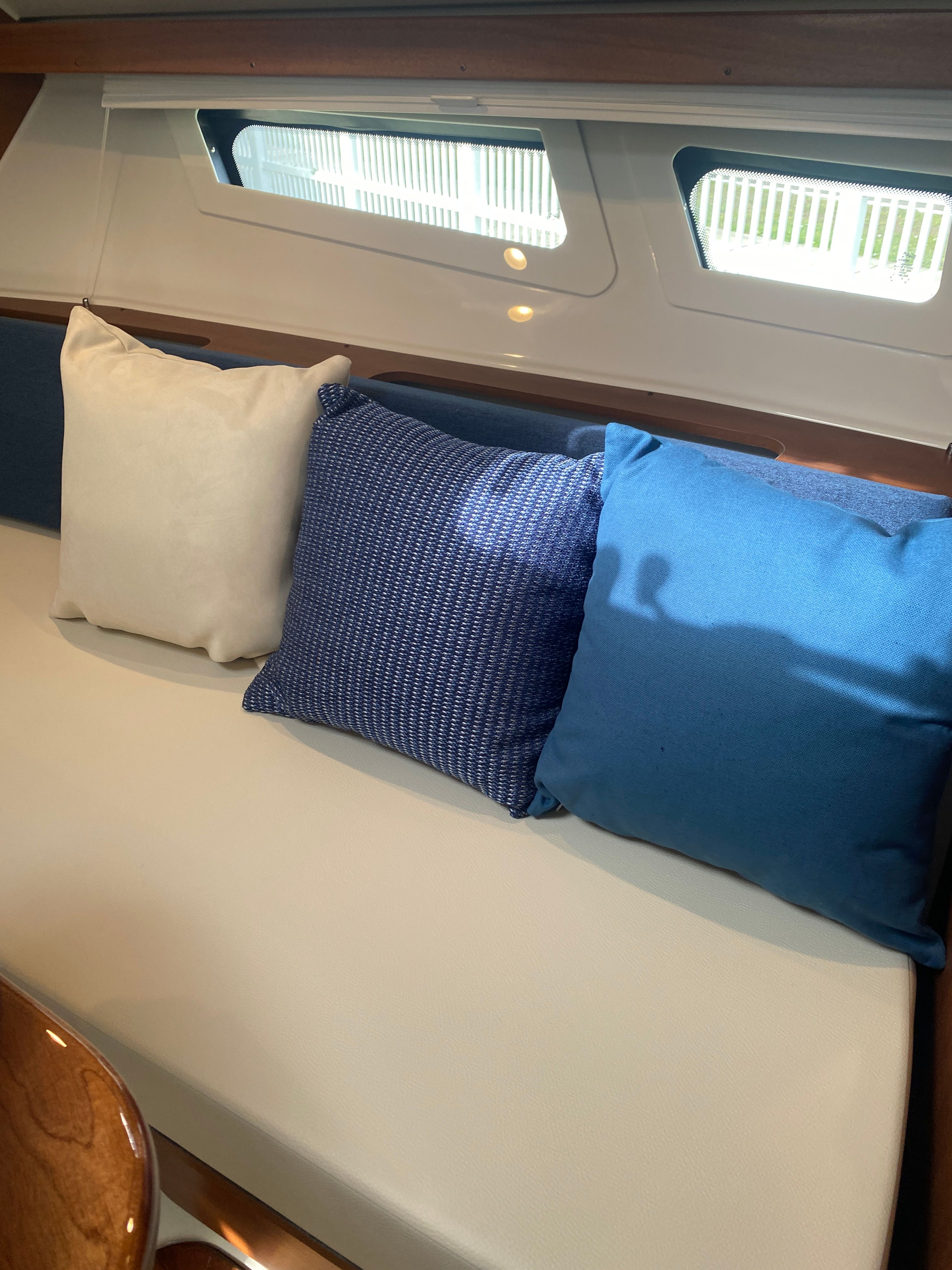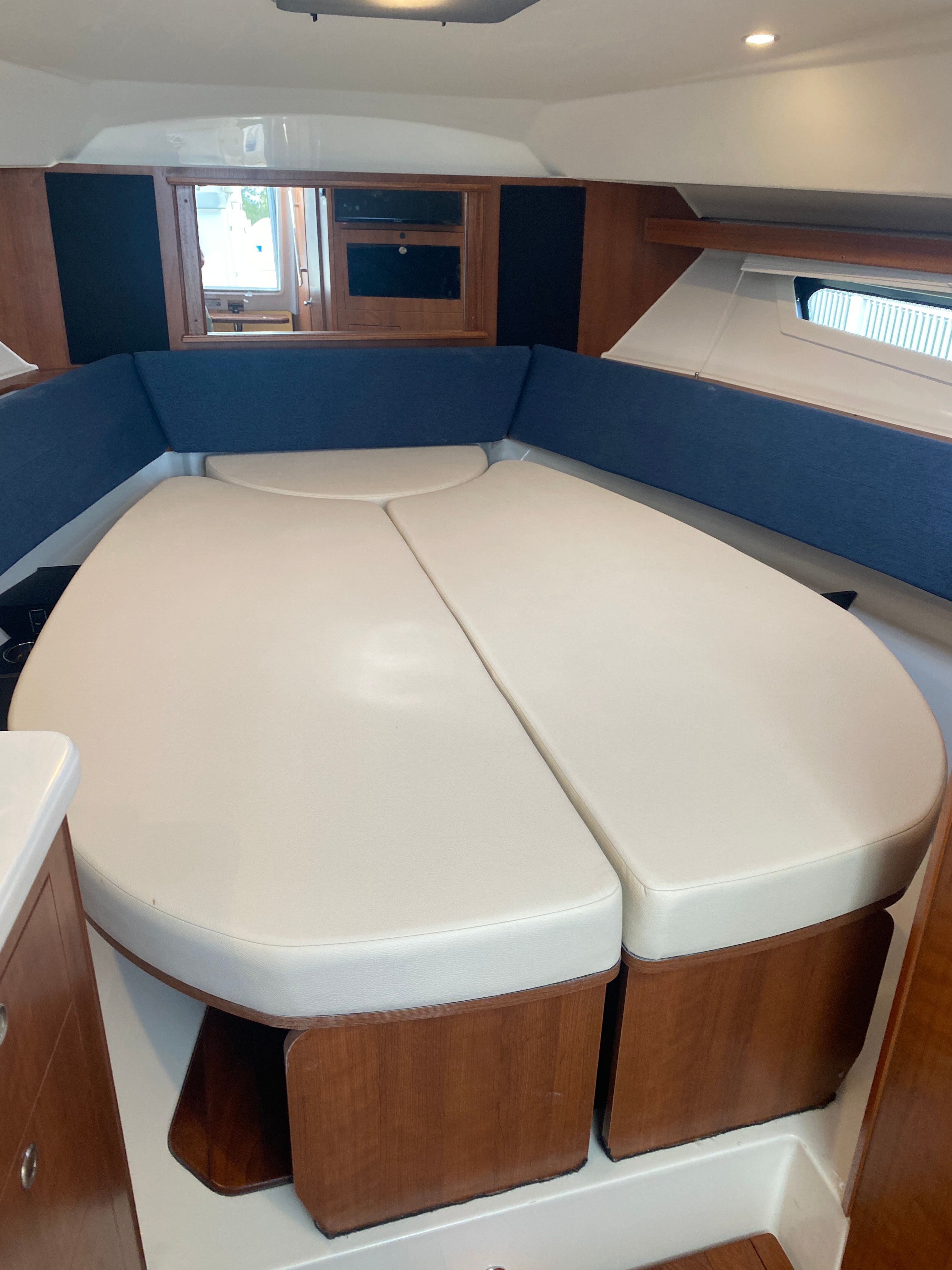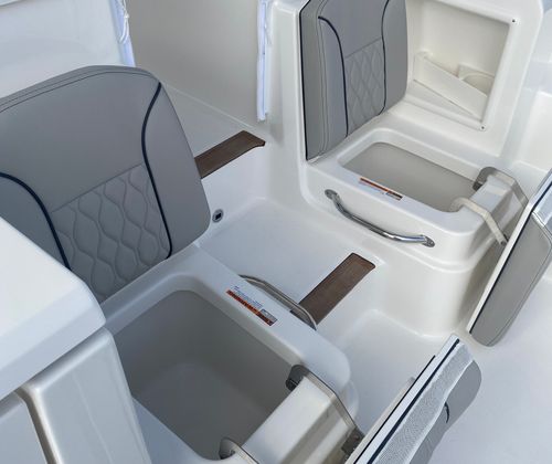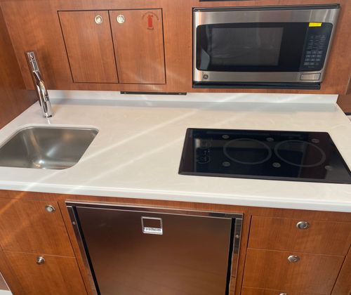 The Pursuit OS 355 Cruiser is designed with practicality in mind, making ownership effortless and enjoyable. The nearly 38-foot length offers generous storage options for gear, supplies, and personal items, keeping your living spaces tidy and functional. The dedicated storage for both the Bridgedeck Teak Table and the fiberglass cockpit table ensures these amenities are always within reach yet out of the way when not in use.Docking and maneuvering are simplified by the boat’s advanced design and powerful engines, allowing for smooth handling in tight spaces and busy marinas. The efficient triple Yamaha engines contribute to better fuel management, so you can spend more time on the water and less time refueling. The integrated climate control system means you can enjoy your cruiser in any season, while the retractable sunshade offers protection from the elements with the touch of a button.