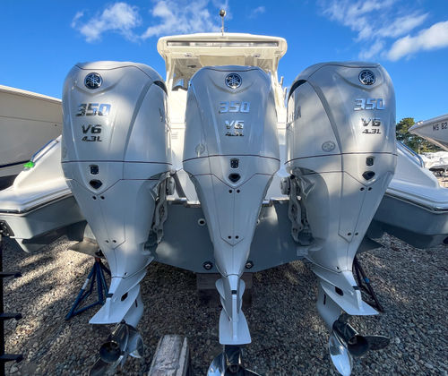 - Triple Yamaha® F350 V6 Offshore (Pearlescent White) w/Integrated Digital Electric Steering (DES) and Helm Master® EX Digital Electronic Control (DEC) and Yamaha® Joystick Contol with Full Maneuverability (Set Point™ and Autopilot) and Multifunction Display Interface